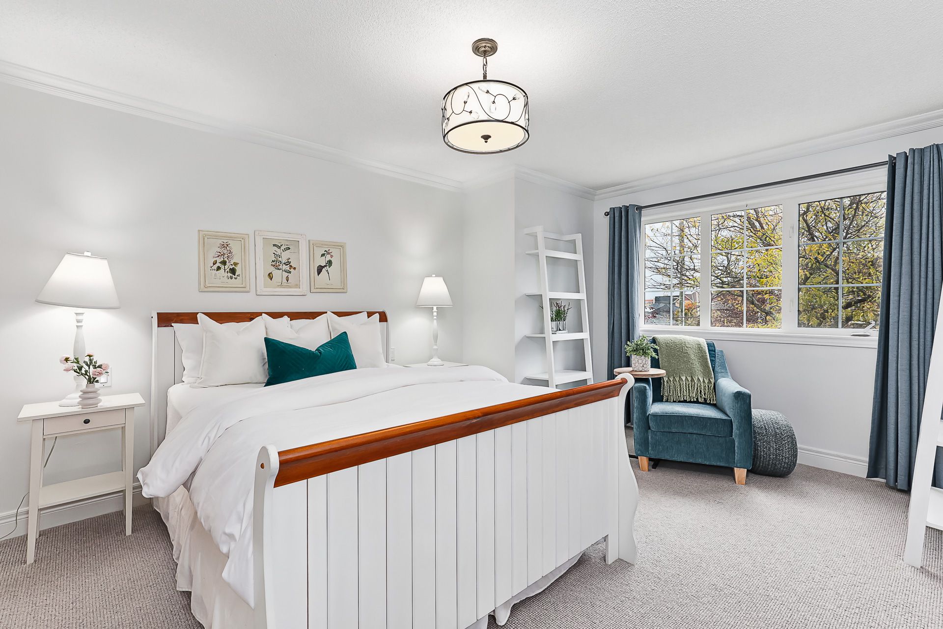 Chic & coveted in olde towne collingwood! Timeless charm meets modern luxury in prime downtown location~ tastefully renovated detached brick home (2465 sf of finished living space ) in the heart of one of collingwood's most sought-after neighbourhoods. Enjoy small-town charm with top-tier urban amenities and year-round walkability to downtown dining, boutique shopping, waterfront trails, and cultural attractions. This versatile bungaloft floor plan offers ideal main-floor living, perfect for a range of lifestyles. The chef's kitchen (appliances 2023) features a peninsula island, breakfast bar, and spacious dining area-ideal for both daily life and entertaining. The open-concept great room is flooded with natural light, featuring vaulted ceilings and a cozy gas fireplace. Outside, enjoy a private, south-facing low maintenance courtyard for al fresco dining or quiet relaxation. The covered front porch (west-facing) offers the perfect place to enjoy a glass of wine and the georgian bay breeze! Main-floor primary suite is a true retreat and includes a walk in closet and a spa-inspired ensuite with double vanity, walk-in shower, and elegant soaker tub. Upstairs, find two generous bedrooms, spacious loft area (office/library or flex space) and a renovated 4-pc bath with heated floors and glass walk-in shower-ideal for guests or family. Step inside from the attached garage (19. 62 x 10. 93 ft ) into a stylish mudroom/laundry area and convenient powder room. The finished lower level offers a bright rec room (gym/craft room) with fireplace, plus a storage/workshop area. Meticulously updated throughout-just move in and enjoy! Additional highlights~ a/c (2023), 3 bathrooms beautifully renovated, kitchen backsplash, new patio door (2023) to garden, walk in closet enhancement (2026)~ loft bedroom, designer lighting, washer/ dryer (2020), eave trough/ gutter system (2022), driveway interlocking stone, custom cabinets in storage room, utility sink in storage room.