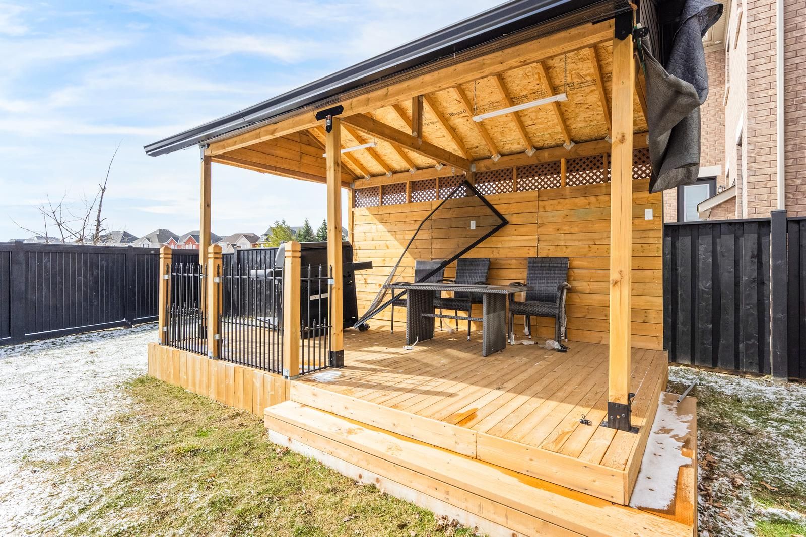 • Fully fenced yard with a covered deck, great for summer entertaining.