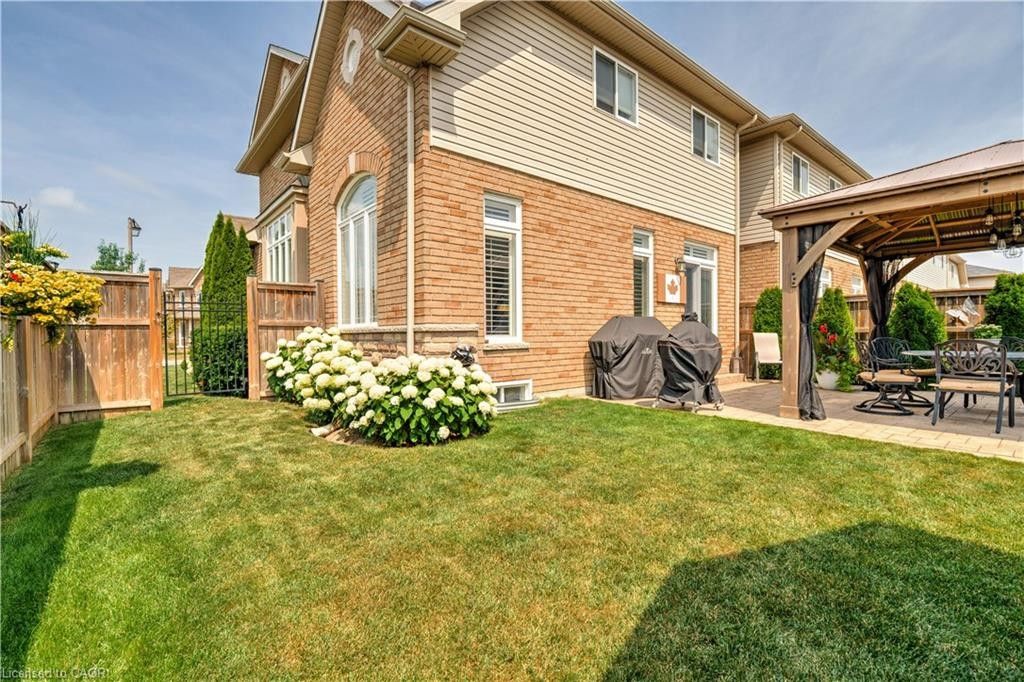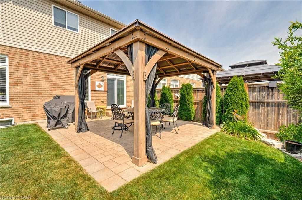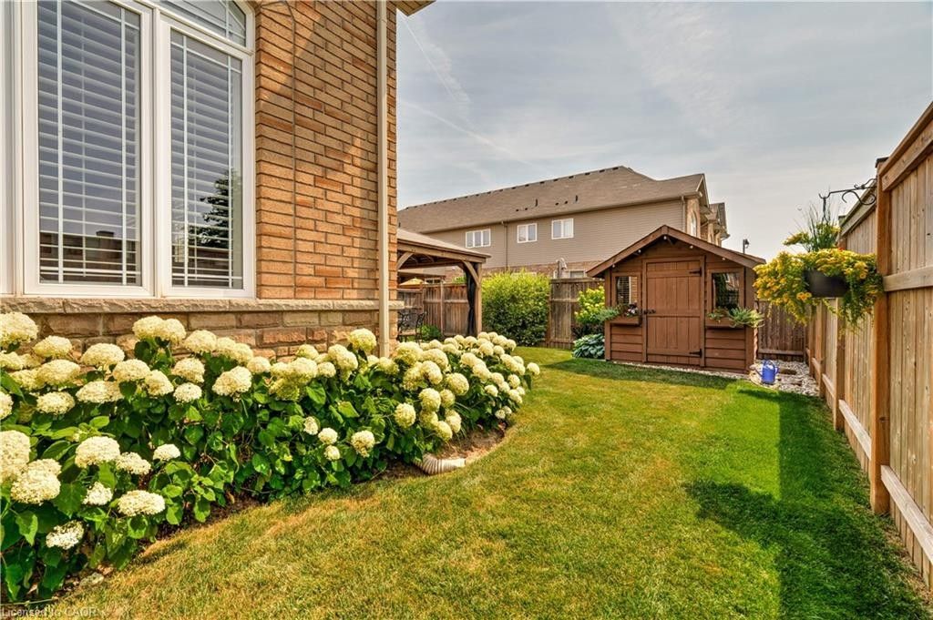 Stunning freehold 1655 sq ft end unit townhome with a double car garage located in the award-winning summit park neighbourhood, close to schools and shopping, premium private large lot beautifully landscaped with irrigation system and enclosed backyard, features a stone patio, gazebo, storage shed, perennial gardens and a private side entrance which offers a tranquil space for relaxation and entertainment. Truly a serene backyard retreat. The main level is complemented by a welcoming foyer, powder room, and inside entry from the 2 car garage. Sun filled open-concept layout features large windows, california shutters, pot lighting and is perfect for gatherings and everyday living. The kitchen is complete with gas stove, sleek granite countertops, stainless steel appliances and breakfast bar. Upstairs, you'll find three generously sized bedrooms. The primary suite features a walk-in-closet and ensuite. An additional 4-piece bathroom, laundry room complete the upper level. Unspoiled basement awaits your creativity and finishing touches. Ideal location, close to schools, shopping, hsr, parks, conservation area, major highways, and more.