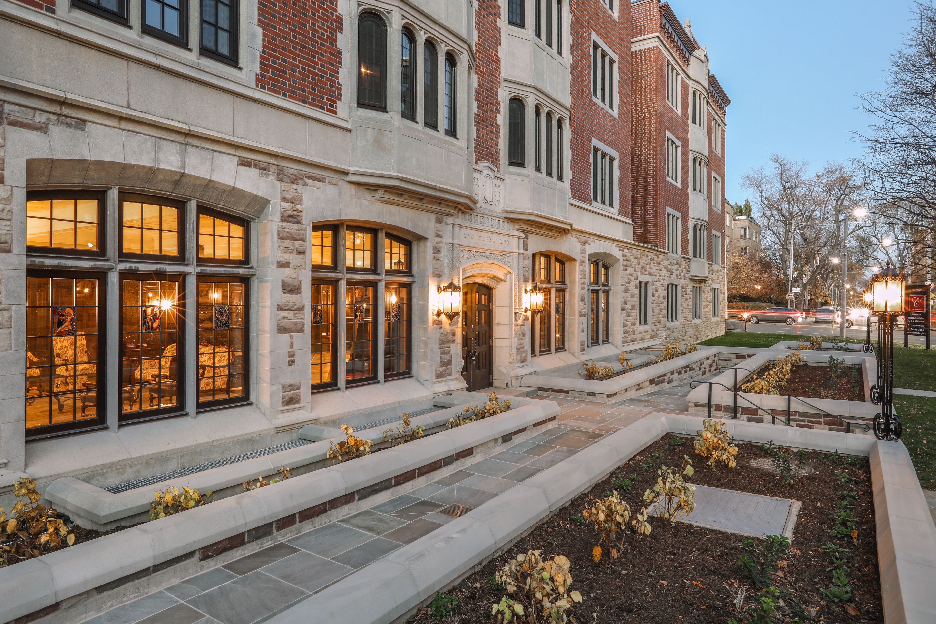 • Elegant historic lobby and landscaped grounds create a welcoming atmosphere.
