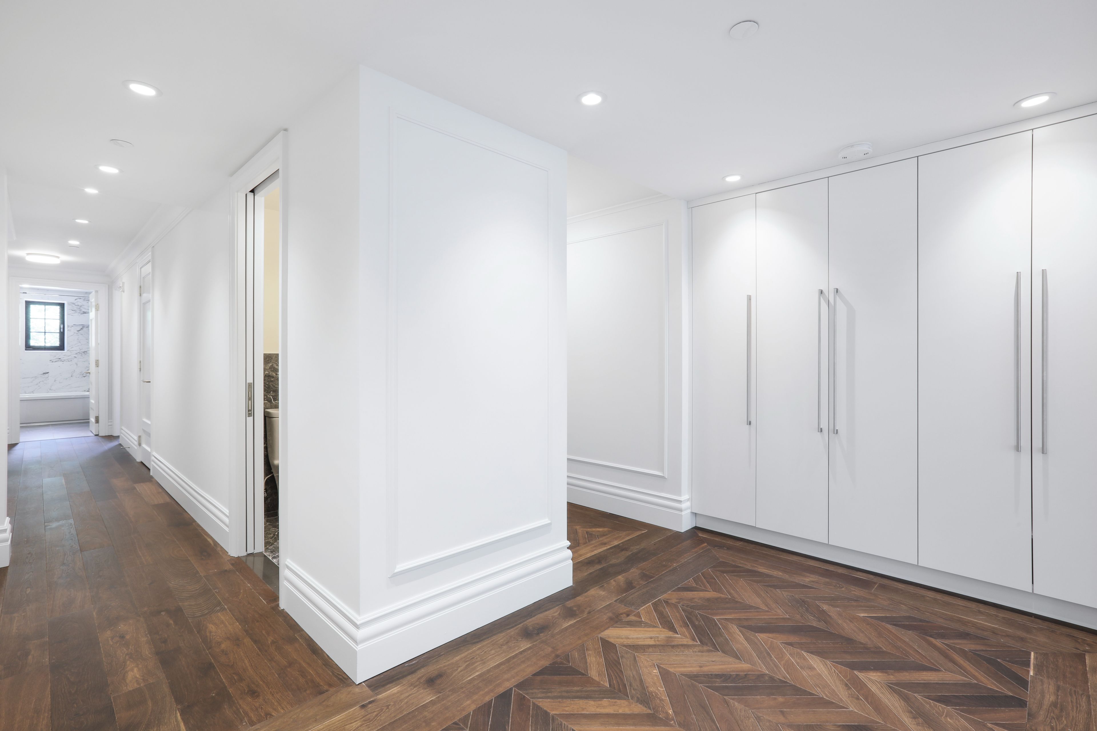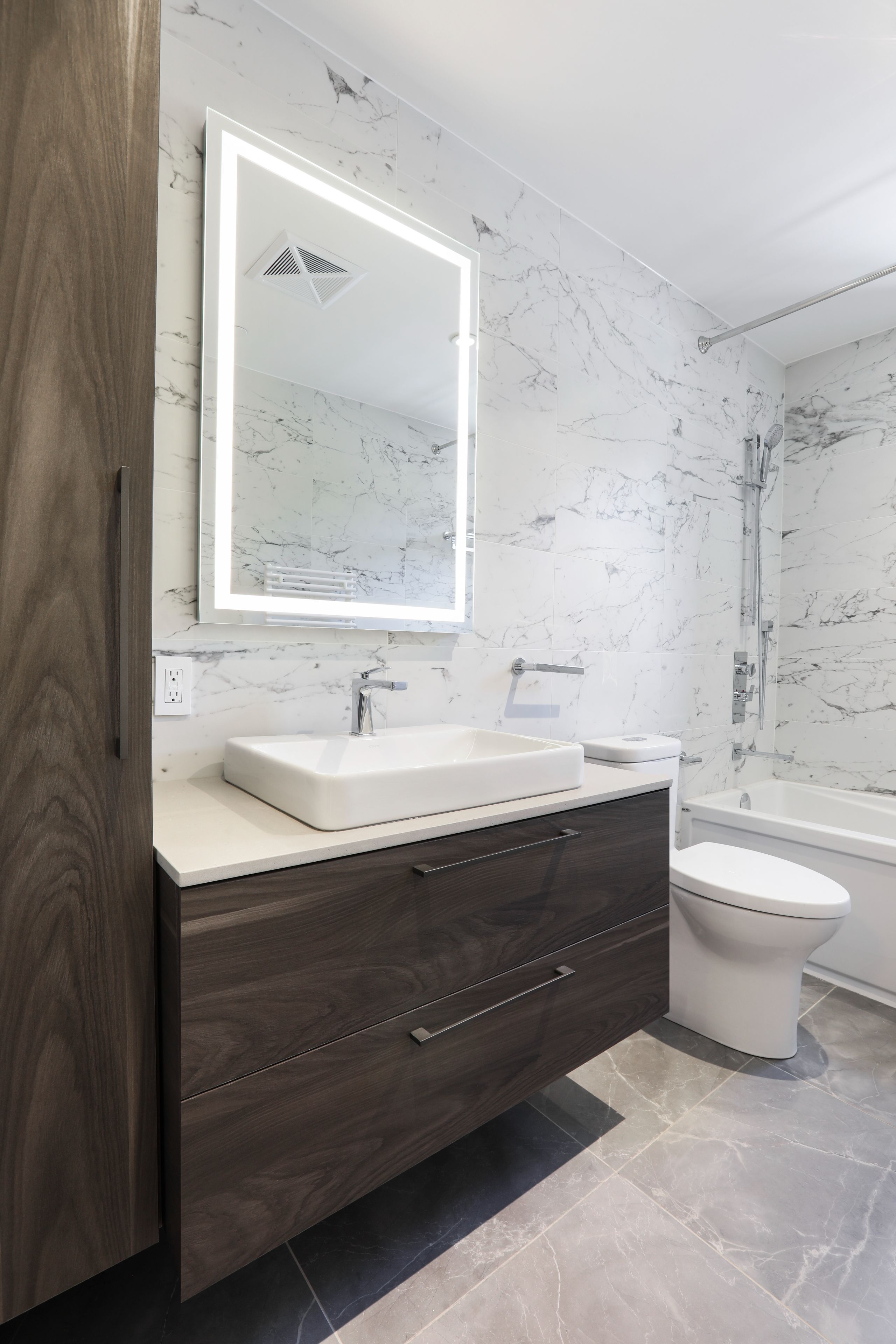• Heated bathroom floors and towel racks for added comfort.