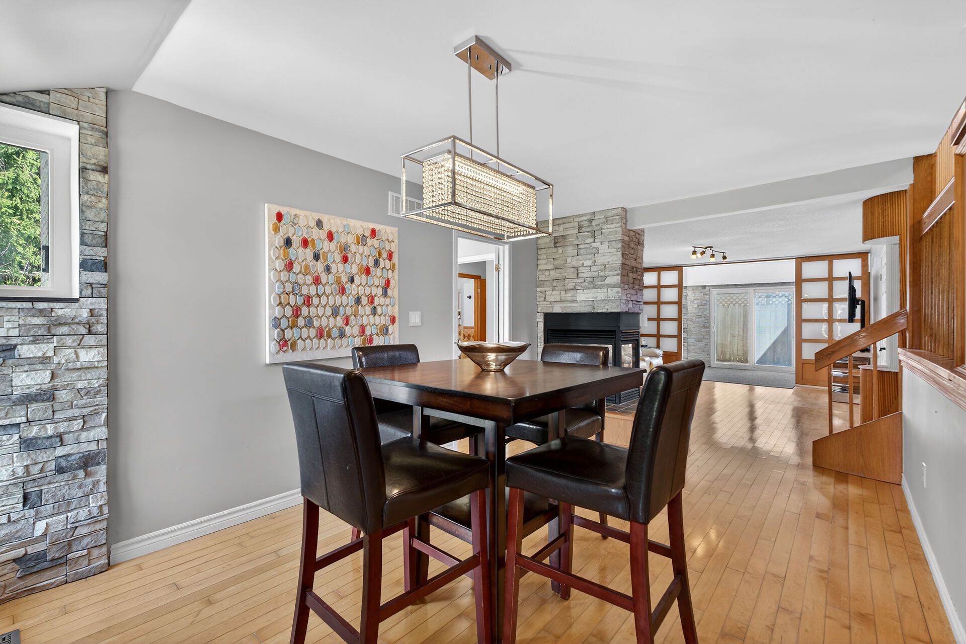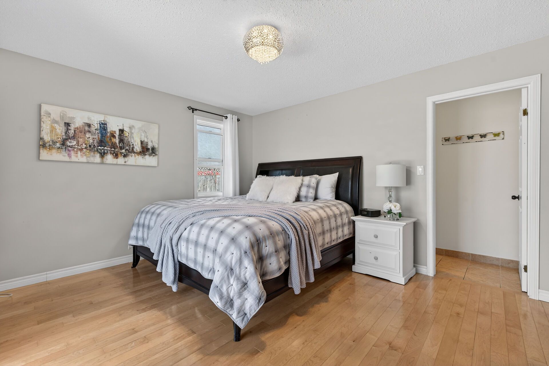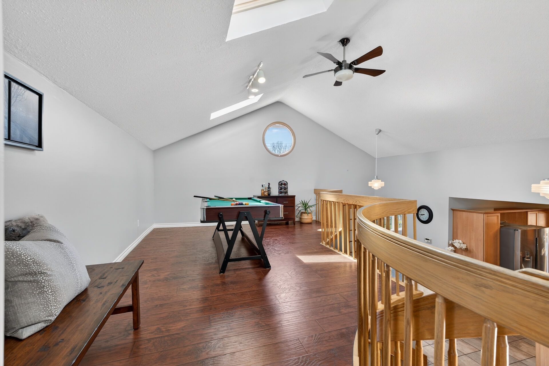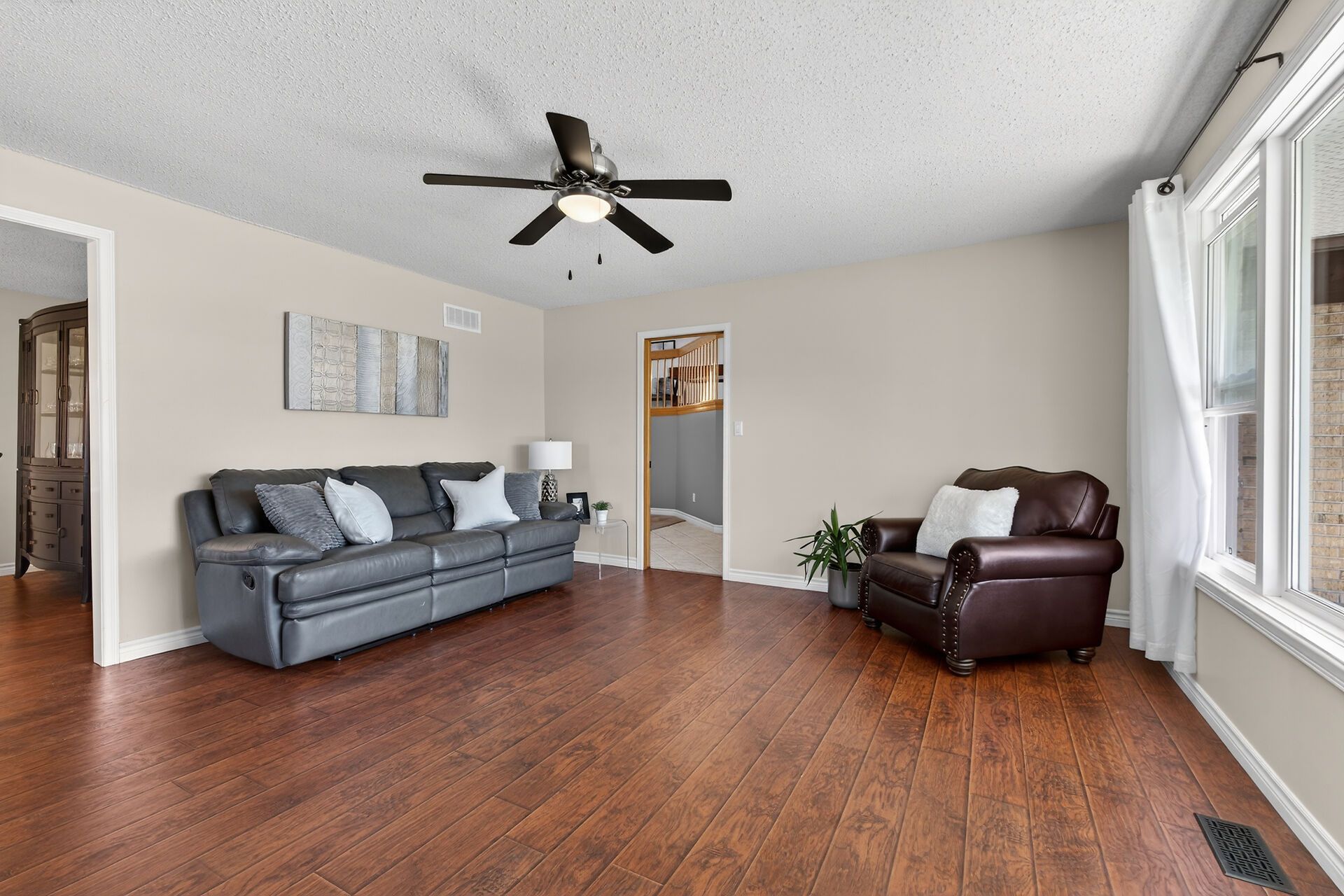 Welcome to this truly one-of-a-kind custom designed home in the heart of odessa, offering exceptional space, character, and versatility with convenient access to highway 401. From the moment you arrive, the inviting wrap-around front porch sets the tone for what awaits inside. Step into a bright and thoughtfully designed interior featuring vaulted ceilings, skylights that flood the home with natural light, and rich hardwood flooring throughout. Unique architectural details and decorative wall features add warmth and personality, while a stunning three-sided fireplace creates a cozy focal point connecting the principal living spaces. The main floor is highlighted by a spacious primary bedroom retreat, complete with a luxurious 6-piece ensuite bath and your very own sauna-delivering a true spa-like experience right at home. Upstairs, you'll find three generously sized bedrooms along with a versatile rec room/games room, a full bathroom, and access to a private exterior balcony-perfect for relaxing. The fully finished lower level expands the home's possibilities, offering a fifth bedroom, a large gym or recreation space, and a second kitchen, making it an excellent option for an in-law suite or multi-generational living. Completing the package is a double car attached garage and a layout designed for both comfort and functionality. This distinctive home is ideal for those seeking something beyond the ordinary, blending style, space, and flexibility in a prime odessa location.