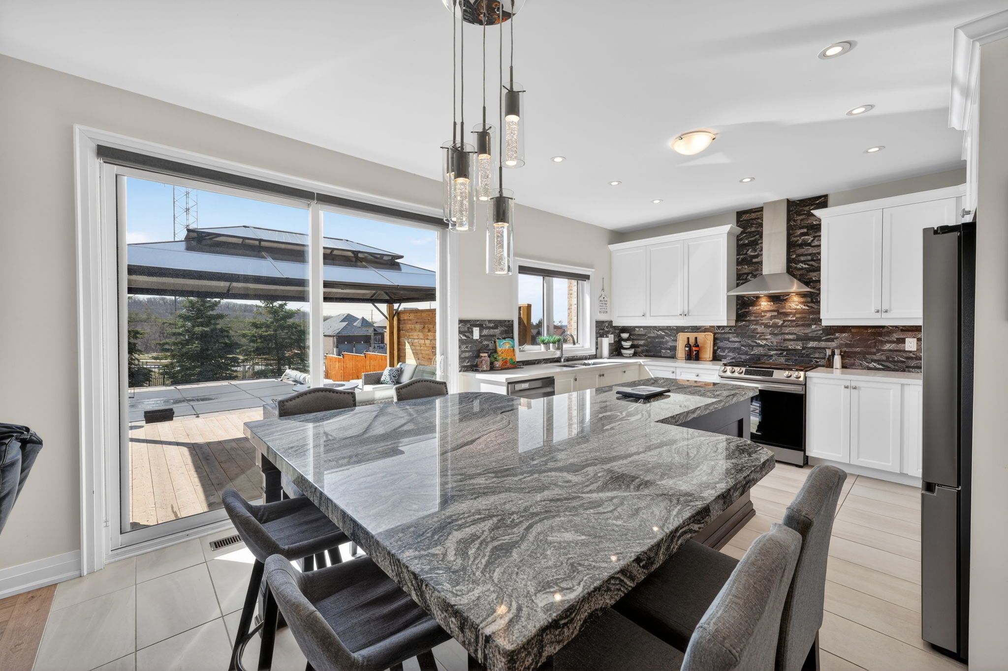 Stunning family home in sought-after ardagh bluffs! Set on a premium west-facing lot with no neighbours behind, steps to the scenic trails of the ardagh bluffs, this exceptional home offers a rare blend of privacy, nature, and refined living. Enjoy breathtaking sunsets and all-day sun over a professionally designed backyard oasis featuring a fibreglass saltwater pool, hot tub, and extensive stonework and decking with integrated lighting. Thoughtfully crafted for elevated outdoor entertaining. Inside, nearly 2,900 sq ft of beautifully flowing living space. Gleaming hardwood runs throughout the home. Custom cabinetry kitchen anchored by a striking 10-foot granite island, under cabinet lighting & upgraded walk in pantry. Seamlessly connected to the open-concept main living area, upgraded 9-foot main floor ceilings, 8-foot doorways & expansive windows flood the home with natural light, creating a bright, airy, and sophisticated atmosphere throughout. A rare main floor secondary primary suite with full ensuite offers ideal flexibility for multi-generational living or guests. Upstairs, the primary retreat features a spacious ensuite and walk-in closet, with serene views over the backyard escape. Three additional bedrooms each offer their own ensuite and generous closet space, delivering a truly functional and family-oriented layout. The fully finished basement includes a kitchen, full bath, and separate garage entrance, providing excellent in-law or extended family potential. Ideally located in one of barrie's most desirable neighbourhoods, close to top-rated schools, parks, trails, and with easy access to hwy 400 & hwy 27. This is a turn-key opportunity that defines lifestyle and location.