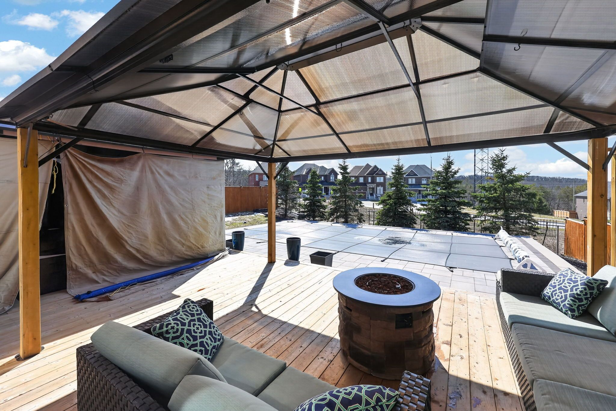 • Professionally designed backyard oasis with a saltwater pool and hot tub.