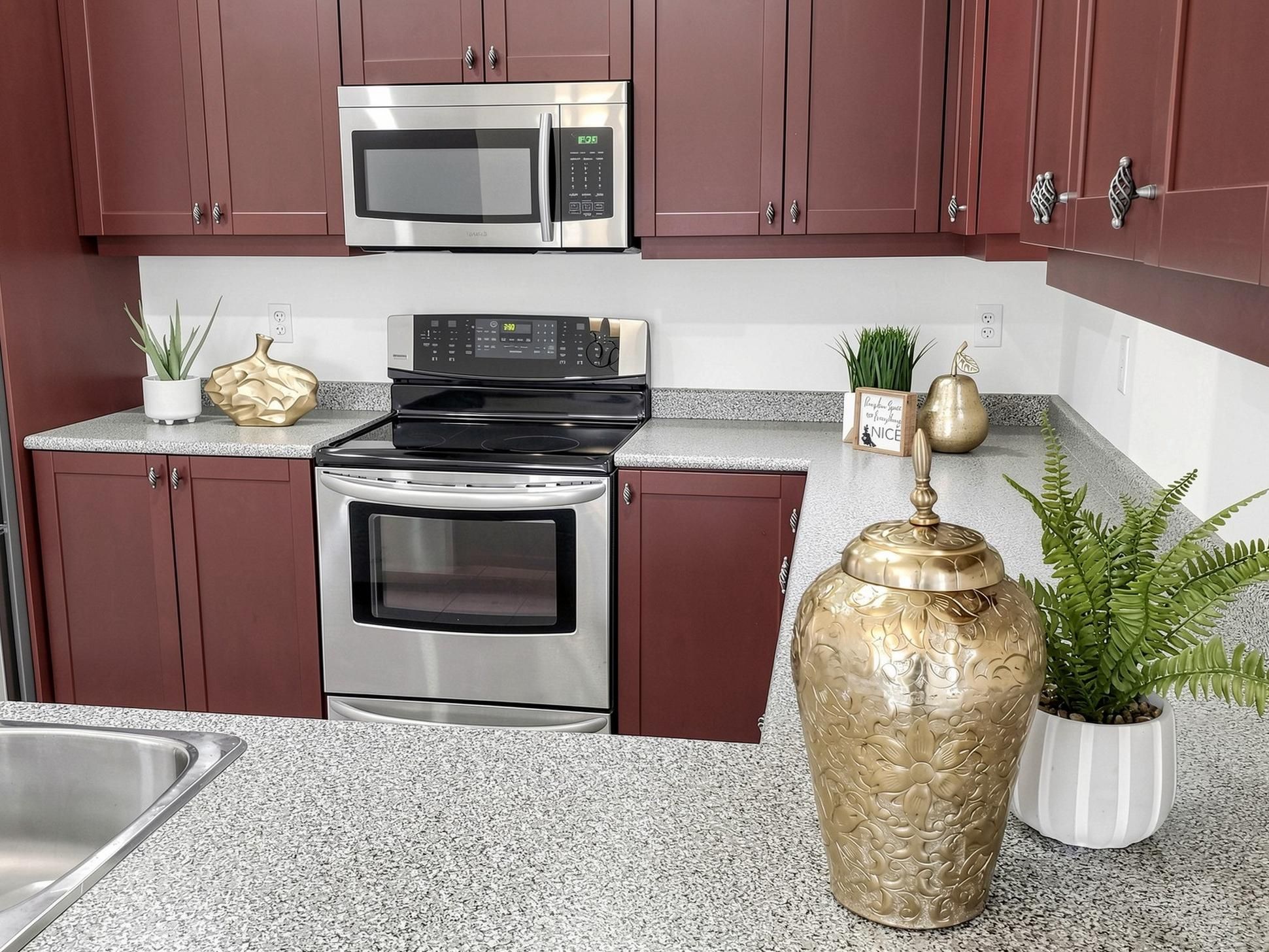 • Family-sized kitchen equipped with stainless steel appliances for convenience.