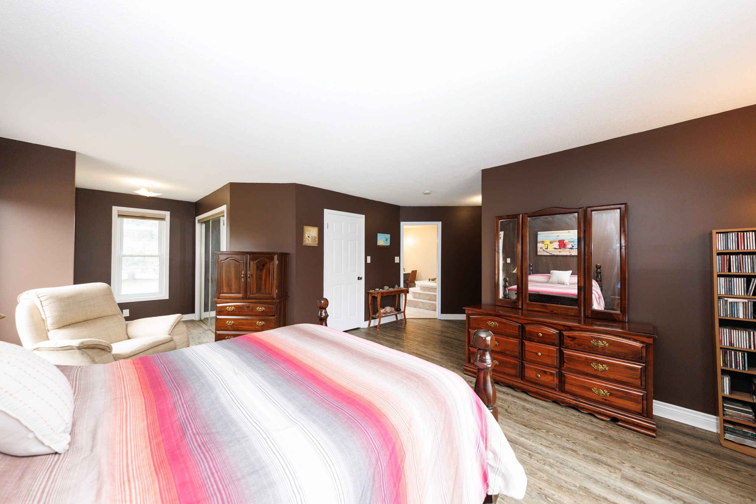 Need space, inside and outside? This is the one for you! Over 2,500 square feet with a massive lot. 5 bedrooms and 4 bathrooms, all ready for you to move into. Many updates have been completed including most windows replaced (living room, dining room, recreation room, front bedroom, patio door), chimney re-bricked, rear decking (2025), two gas bbq hook-ups, two furnaces (one for the addition), and concrete pathways, front porch, and driveway. The main floor features a spacious primary bedroom with walk-in closet, ensuite bath, and patio door leading to the rear yard. A main floor laundry room with a two-piece powder room offers convenient access when enjoying the 24-foot round above-ground pool with drop-in stairs. The basement provides a walk-up to both the rear yard and the garage. The huge eat-in kitchen includes a double pantry and direct access to the backyard, making it perfect for entertaining. This home offers space for entertaining inside and out, with exceptional privacy in the fully fenced yard. Located on a quiet end-of-court setting.