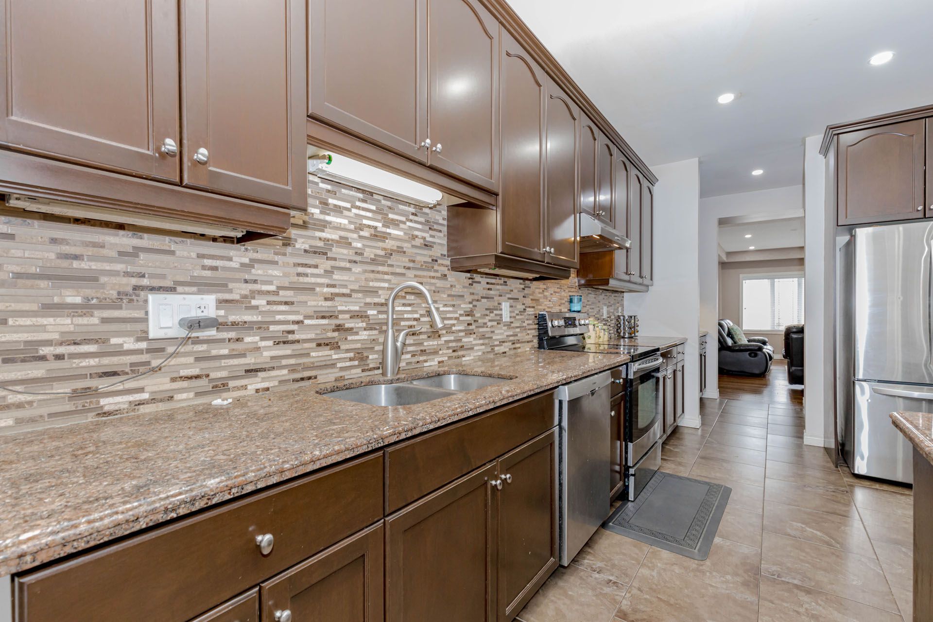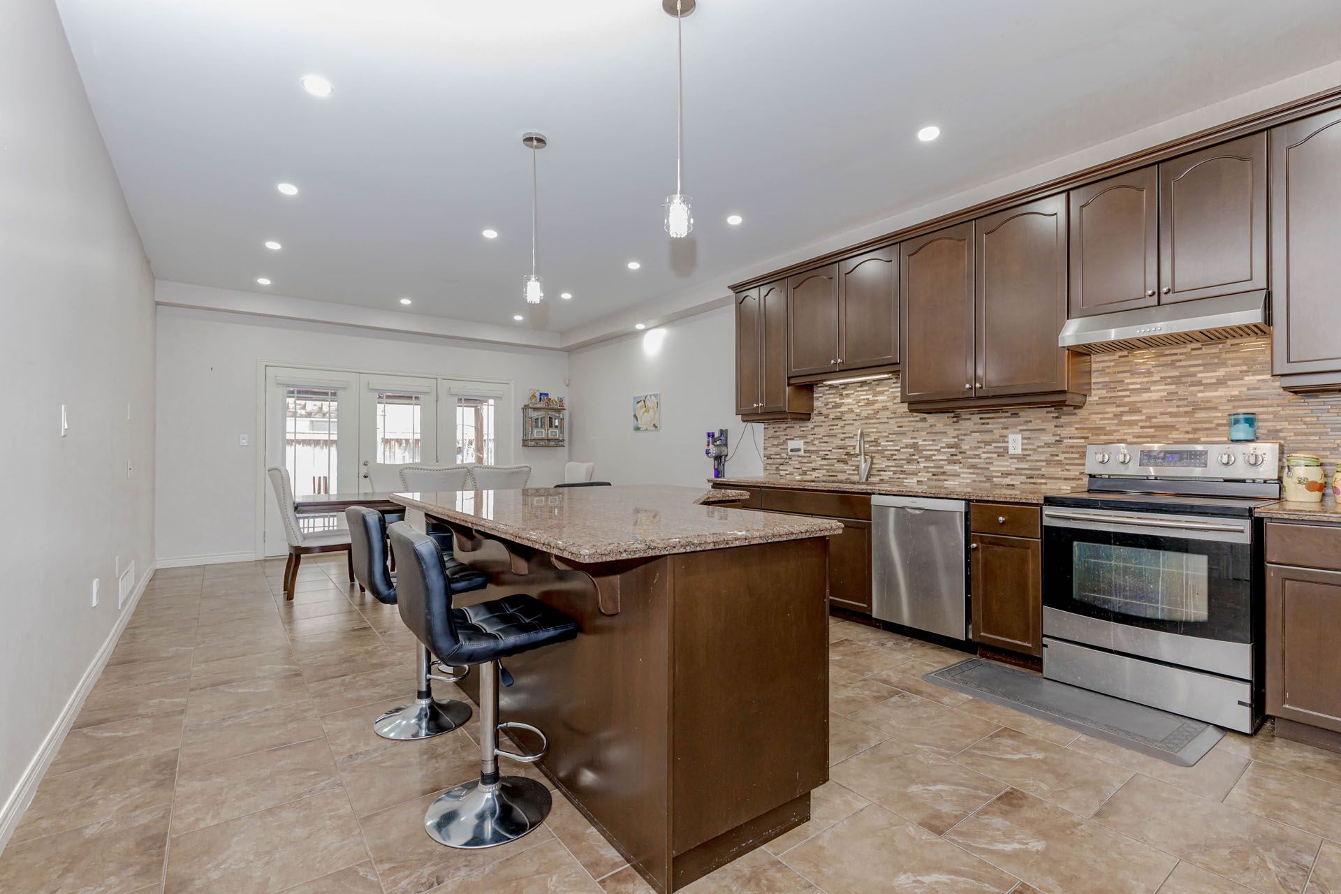 • Functional kitchen overlooking a well-arranged dining area and great room.