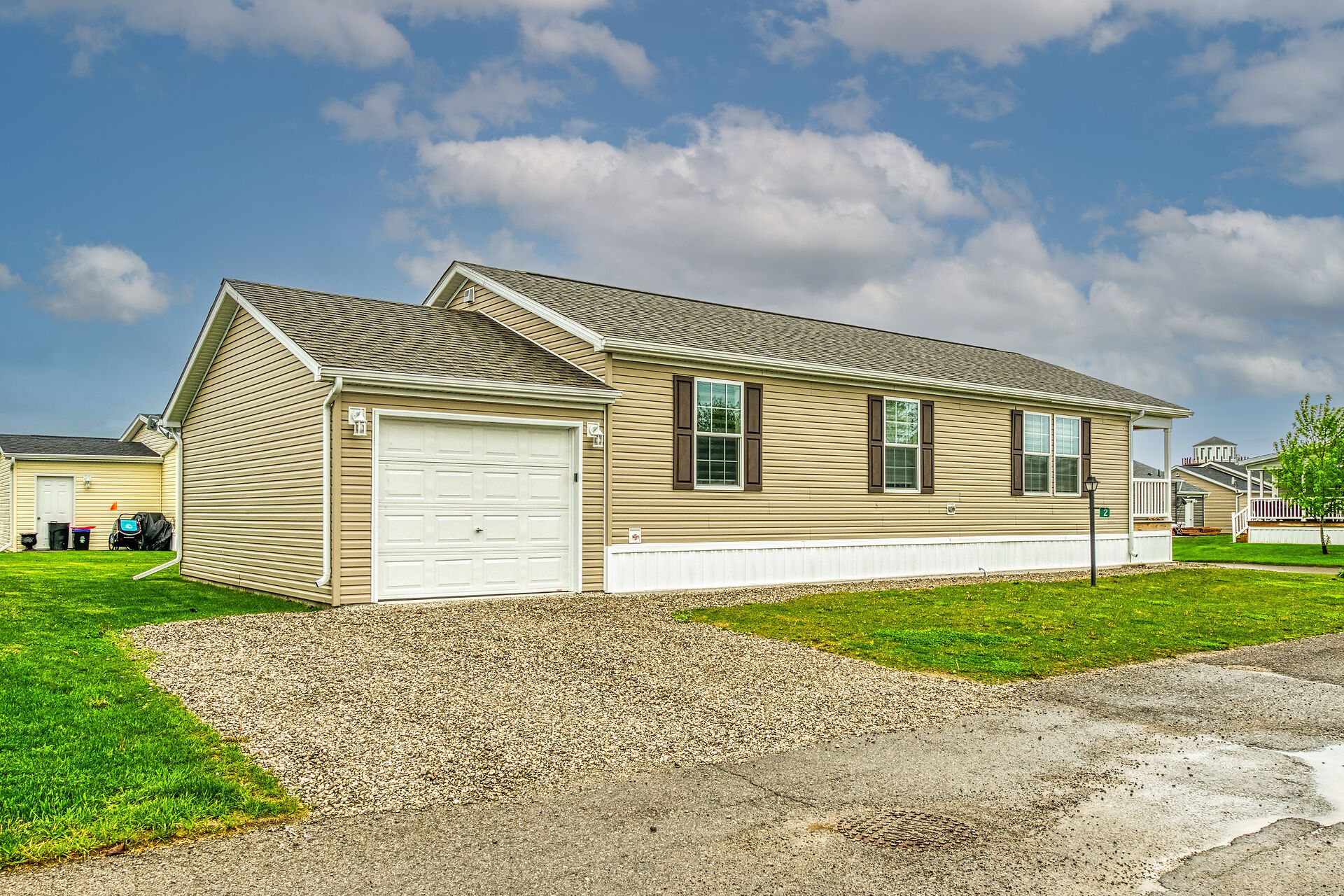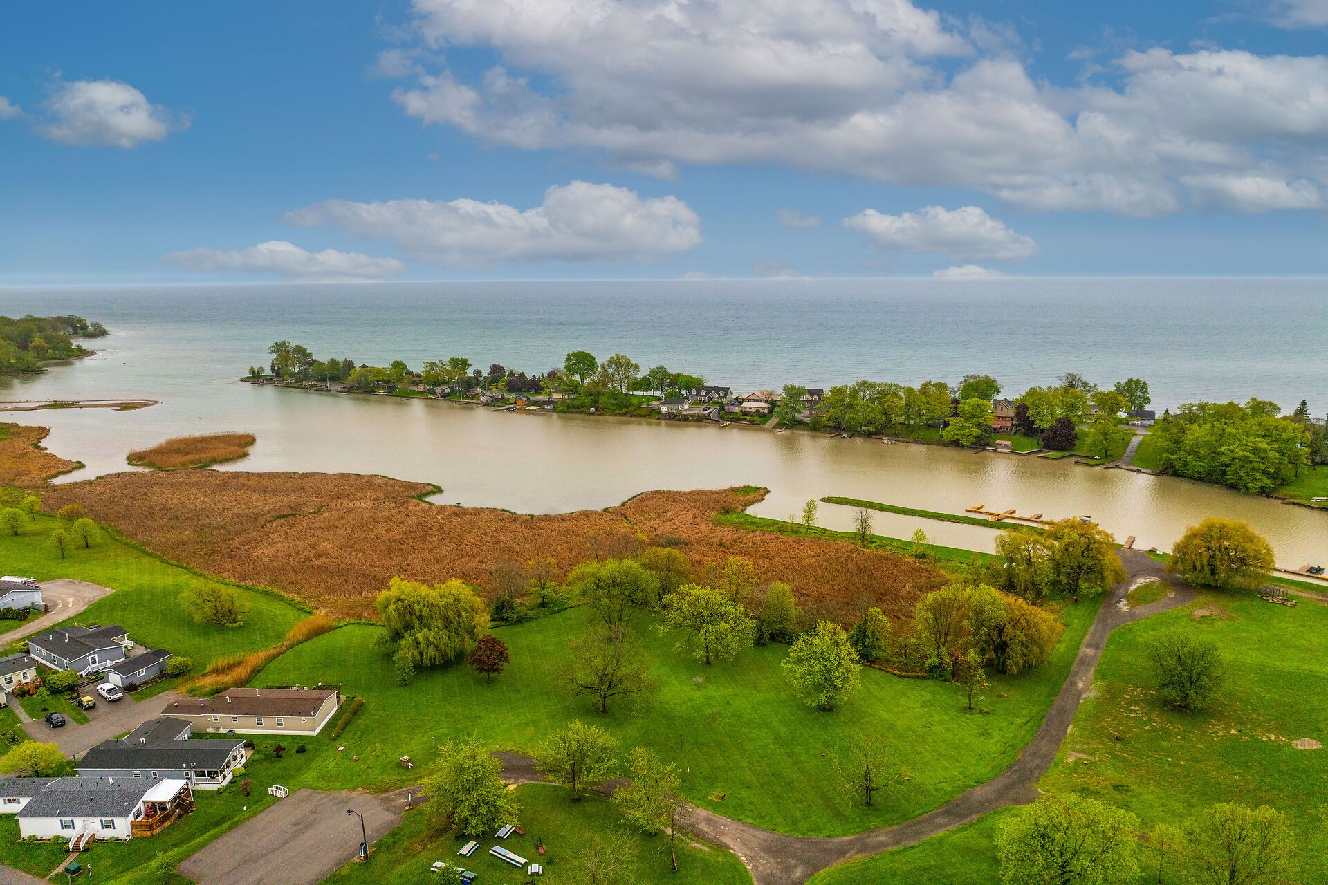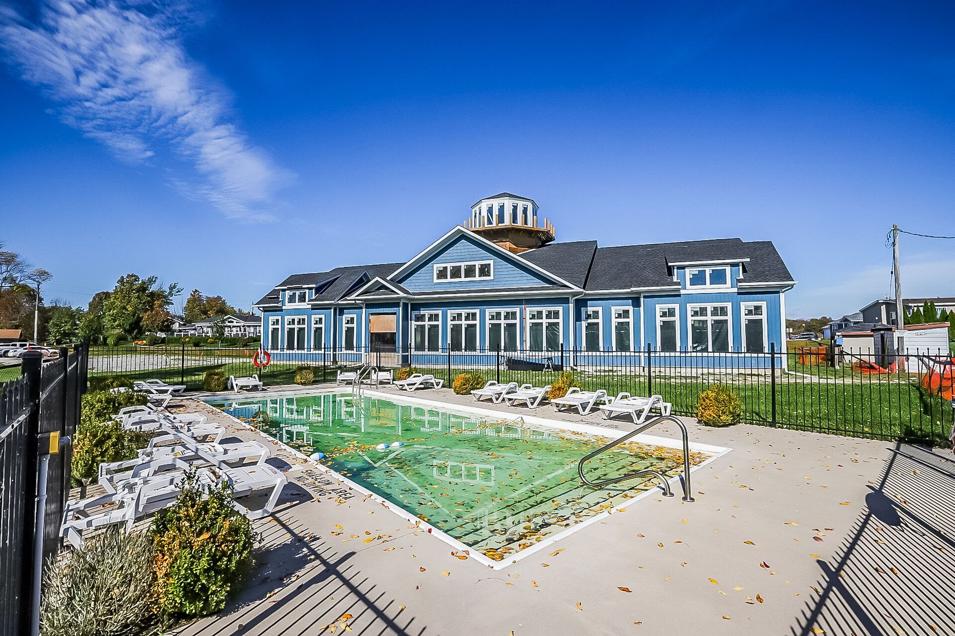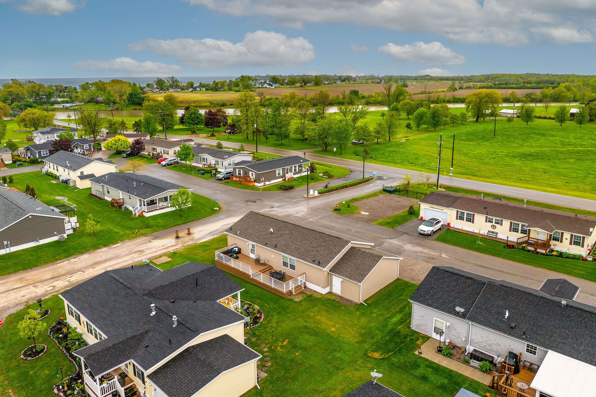 Discover worry-free life-style at selkirks shelter cove community (new ownership in 2025) bordering banks of lake erie - 45/55 min/hamilton - 20 mins e of port dover -near selkirk. Definitely not your average home - this 2022 edgewater model boasts 1333sf of living area + insulated garage highlighted w/luxury vinyl flooring, cathedral ceilings & electric fp set in shiplap feature mantel. Ftrs open conc. Living/dining room & kitchen sporting white cabinetry, contrast island, quartzite counters, back-splash, ss appliances & dinette enjoying sliding door wo to new 34x10 tiered composite deck, laundry/utility(w/ac) room, 4pc bath, primary bedroom w/3pc en-suite & wi closet & 2 bedrooms. Land lease fees inc property tax, ext. Maintenance, lawn cutting, snow removal, club house, pool & boat dockage (requires slip application for extra fee).