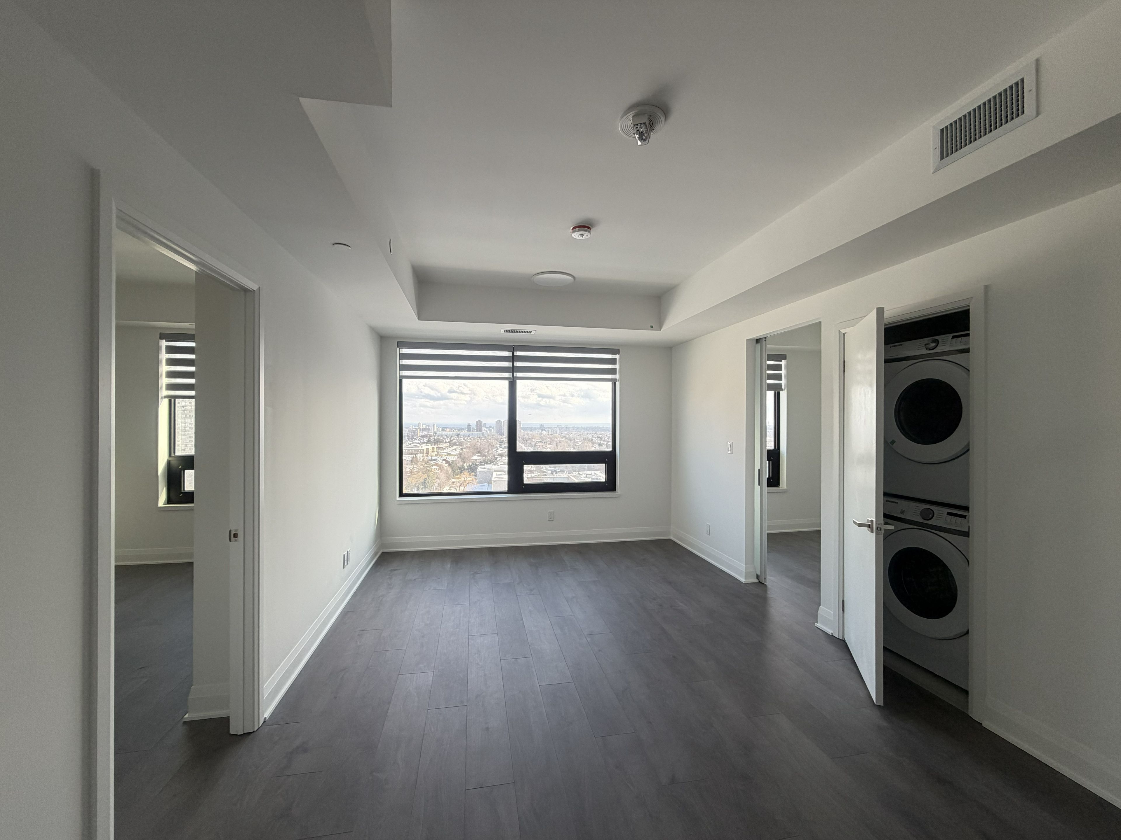 Live in the heart of mississauga directly across from square one shopping centre, steps to walmart, the major transit hub, library, parks, dining, and everyday essentials. This unit offers an exceptional urban lifestyle with unmatched walkability and convenience. This beautiful 2-bedroom, 2-bathroom milan layout offers approximately 675 sq. Ft. Of efficient, modern living space with unobstructed lake views, bringing in natural light and open skyline exposure. The unit features a trevisana italian-designed kitchen, european-branded appliances, and vrf independent climate control for personalized year-round comfort. New zebra blinds and modern led ceiling lights are installed in the living room and both bedrooms, adding a clean, upgraded modern finish throughout the space. Parking (p5 - y14) and locker (p5 - 119) are included, along with high-speed internet service, providing strong overall value. Residents enjoy access to premium amenity space including fitness and lifestyle facilities designed for modern condo living. A rare opportunity to lease a well-finished lake-view unit in one of mississauga's most connected and desirable locations.