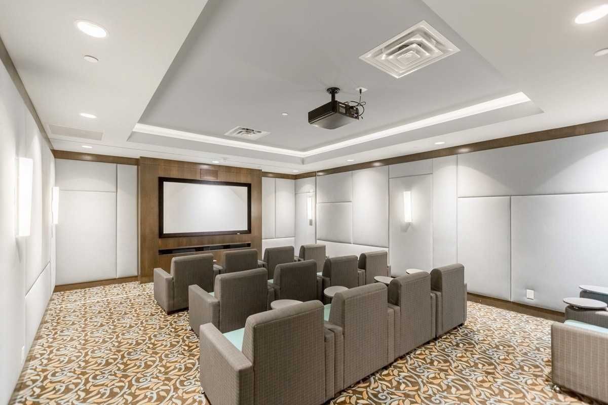 • Amenities include gym, party room, and theater access.