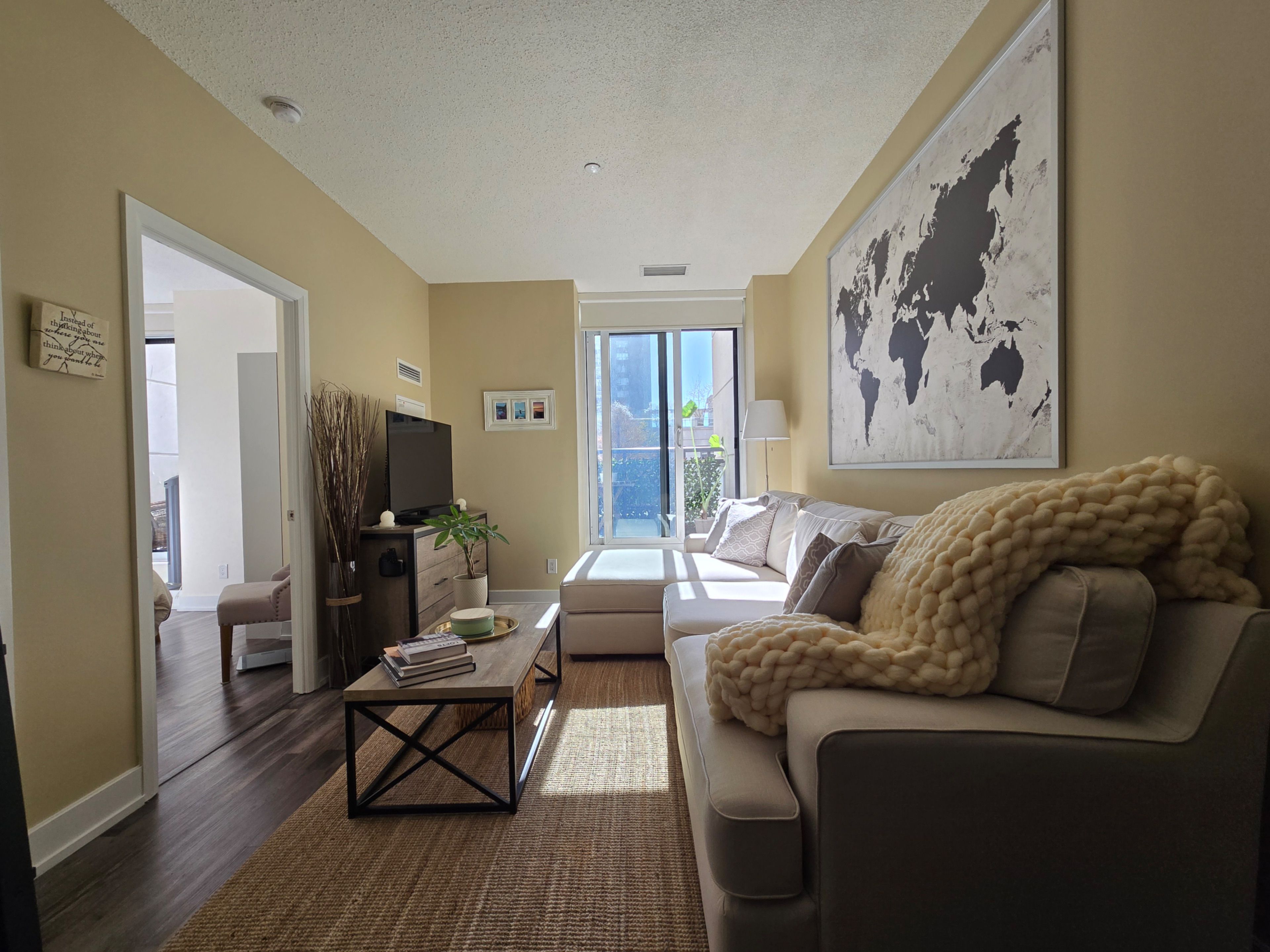 • Bright and spacious 1-bedroom corner suite with 750 sq ft of living space.