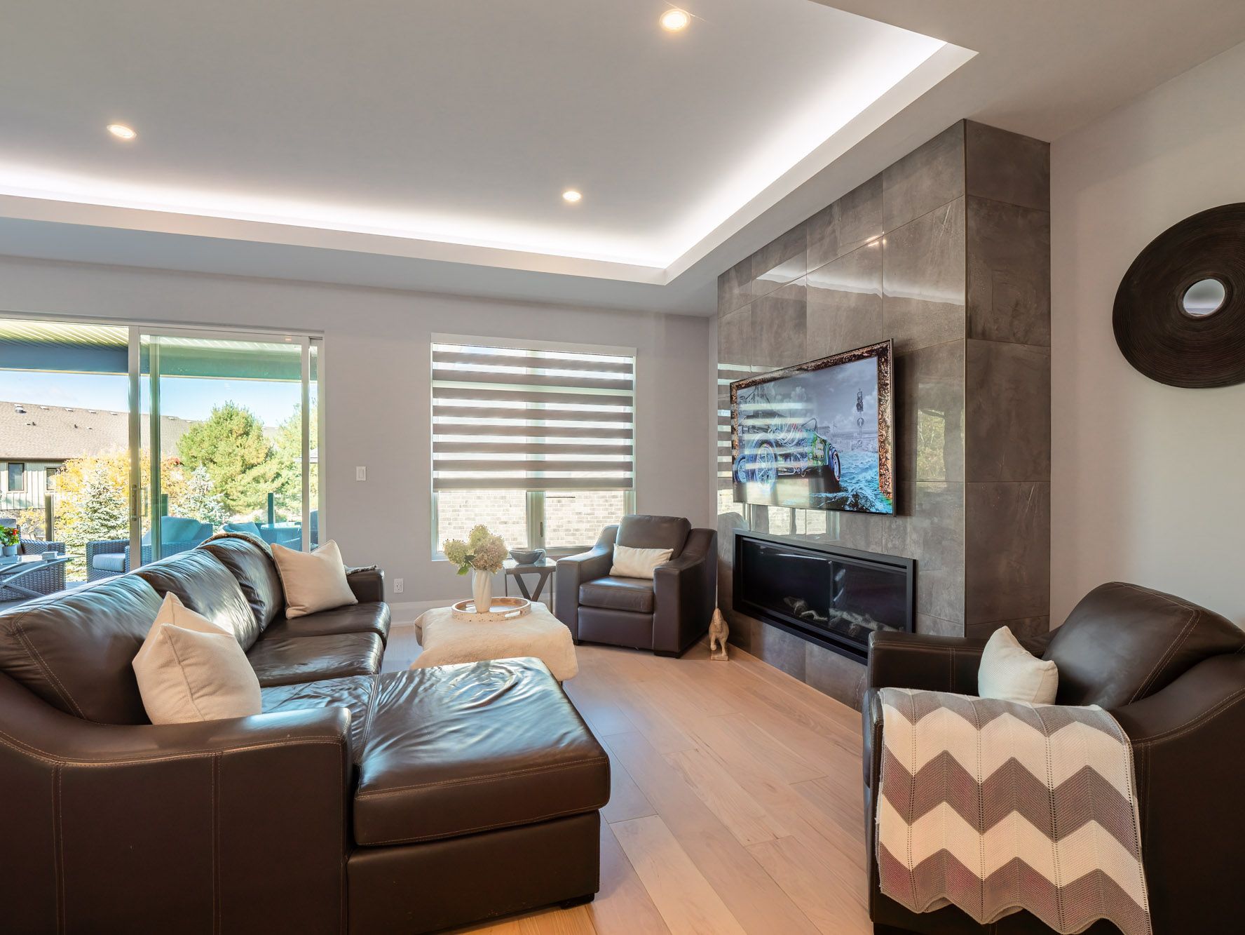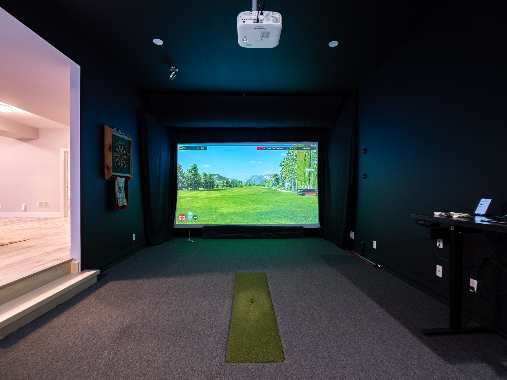 • Walkout lower level features a golf simulator and theatre room for fun.