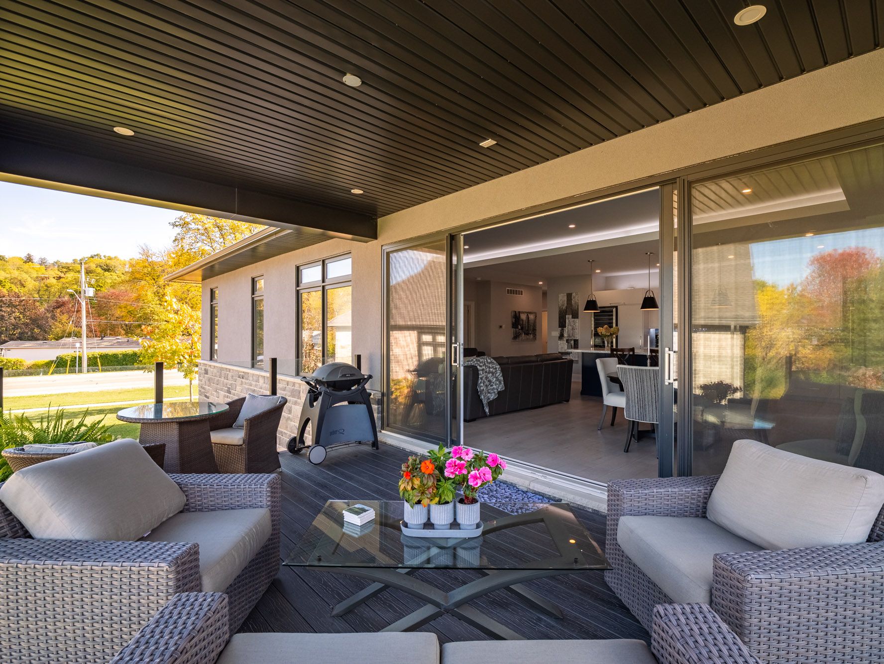 Welcome to this stunning custom-built bungalow nestled on an exclusive cul-de-sac of only 9 homes in the heart of st. David's, one of niagara-on-the-lake's most coveted communities. Blending sophisticated architecture with contemporary comfort, this home offers the perfect balance of elegance and lifestyle. Step inside to discover a bright open-concept design highlighted by soaring ceilings, designer lighting, and expansive windows that flood the space with natural light. The gourmet kitchen features premium appliances, quartz surfaces, and a stylish centre island-perfect for entertaining or everyday family gatherings. The adjoining dining and great room spaces flow seamlessly to a covered terrace, ideal for enjoying niagara's picturesque sunsets. The main floor offers two spacious bedrooms, including a serene primary suite with a spa inspired ensuite bath, freestanding tub, glass shower, and dual vanities. The walkout lower level expands the living space with two additional bedrooms, a full bath, and an impressive golf simulator and theatre room, perfect for year-round recreation and relaxation. Outside, thoughtful landscaping, a double garage with modern doors, and clean architectural lines create exceptional curb appeal. Located just steps from the grist restaurant and minutes from niagara's finest wineries, golf courses, trails, and old town's boutique charm, this property embodies the niagara-on-the-lake lifestyle-a perfect blend of luxury, leisure, and location. More than a home, this is a lifestyle statement.