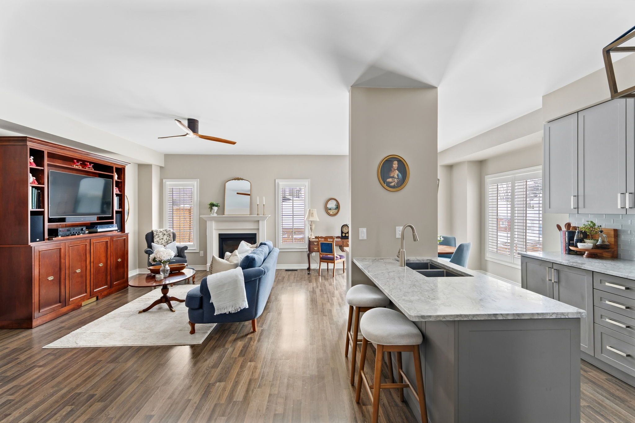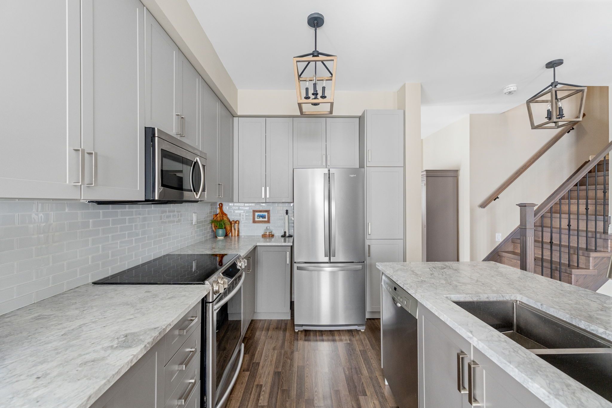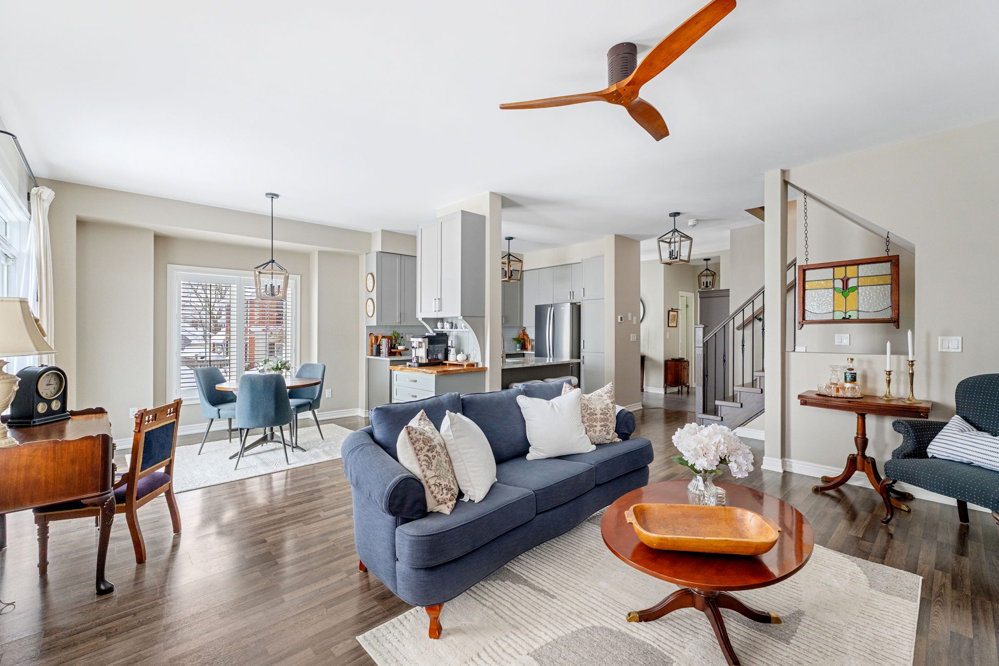 ** watch listing video ** welcome to one of the largest models in this centrally located north ward enclave, offering 1,800 + sq ft of bright, open-concept living space on a rare 35' x 96' corner lot with all new landscaping and a side entrance to your fully fenced backyard. This stunning 3-bedroom townhome is filled with natural light and tasteful décor, featuring upgraded kitchen cabinetry, granite countertops, a powder room, and a versatile main floor flex space ideal for a dining room, office, or potential 4th bedroom. The second level offers a spacious primary suite complete with a full 5 - piece ensuite and walk-in closet, plus two additional generous bedrooms and another full 4 - piece bathroom. Enjoy exceptional outdoor living with a covered wraparound front porch and a sunny south-facing backyard boasting a composite deck, large covered pergola, new fencing, and excellent sun exposure, perfect for gardening or relaxing. Newly upgraded r60 blown-in insulation in spring 2025 adds comfort and efficiency. Located in orillia's sought-after north ward, a quiet, friendly, and highly walkable neighborhood, just under 1km to the orillia port and a short stroll to downtown shops, restaurants, schools, the ymca, library, and couchiching beach park. A rare opportunity to own a corner lot townhome with premium outdoor space in one of orillia's most desirable neighborhoods.
