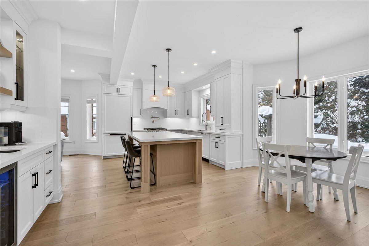 Fully renovated two-storey home in one of midhurst's most desirable, family-oriented neighbourhoods. Situated on a quiet corner lot with mature trees and minimal neighbouring properties, offering over 3,000 sq ft of finished living space, excellent privacy, and strong curb appeal. Just steps to forest hill public school and within a highly sought-after school zone. The interior features 9-foot ceilings, a coffered ceiling in the dining area, updated flooring throughout, and a bright, functional layout. The modernized, upgraded kitchen is ideal for everyday living and entertaining, featuring many elevated finishes, including high-end built-in appliances, full-height quartz backsplash, pot filler, and coffee bar area. A fully finished basement with a wet bar provides additional living and recreational space. The second level offers four generously sized bedrooms, ideal for families or home office needs. The primary bedroom features a walk-in closet with built-in storage and a private ensuite with double vanity sinks. The private backyard is framed by mature trees and enhanced by the corner-lot setting. Outdoor features include an soffit pot lights, irrigation system, gas barbecue hookup, and a rough-in for a future hot tub. Recent upgrades include a brand-new furnace and air conditioning system (2025) and a water softener (2026), providing comfort and energy efficiency. Conveniently located near georgian mall, highway 400, and a wide range of local amenities. Outdoor enthusiasts will enjoy nearby springwater sports complex and surrounding hiking trails. A true turnkey property in a premium midhurst location.