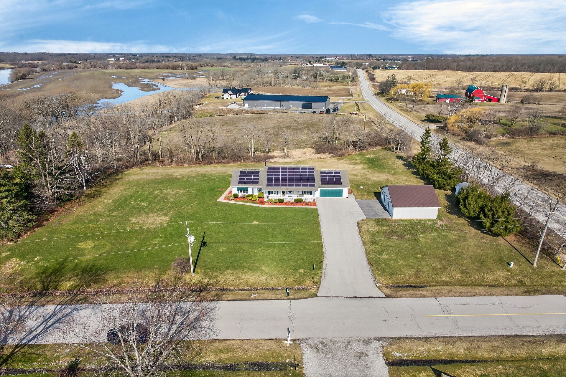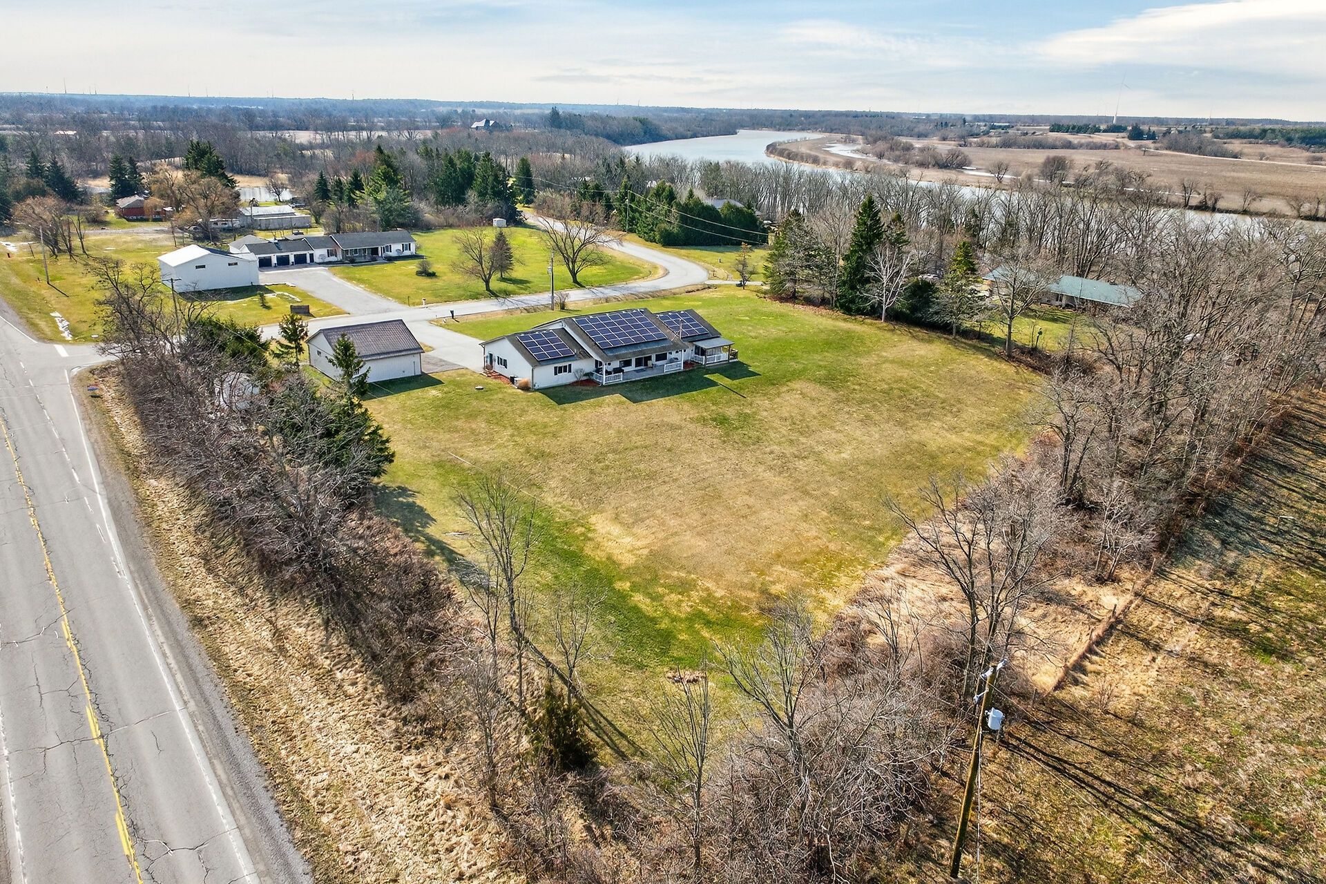 Welcome to 2 foxlow crescent! Pride of ownership is evident throughout this original owner, 3 bedroom, 2 bathroom bungalow situated on picturesque 293' x 280' lot on sought after foxlow cresent cul de sac with stunning views of grand river. Great curb appeal with attached double garage, detached heated garage, covered front porch, & 2 covered back porches enjoying the calming views. The masterfully designed interior features 1811 sq ft of open concept, beautifully updated living space highlighted by eat in kitchen with peninsula eat at island, bright dining area, large living room with woodstove & patio door walk out to back porch, 3 bedrooms including primary bedroom that is currently set up as an in law suite with kitchenette, ensuite bathroom, & private covered patio (easy to convert back to primary suite), updated 4 pc bathroom, welcoming foyer, laundry room, & office area. Transferrable solar panel contract provides great additional income. Enjoy cayuga country living at its finest!