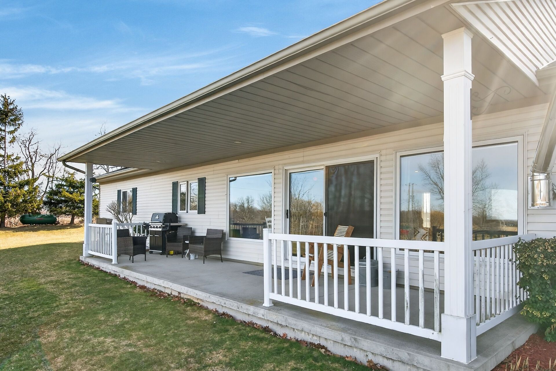 • Two covered porches perfect for enjoying the calming views.