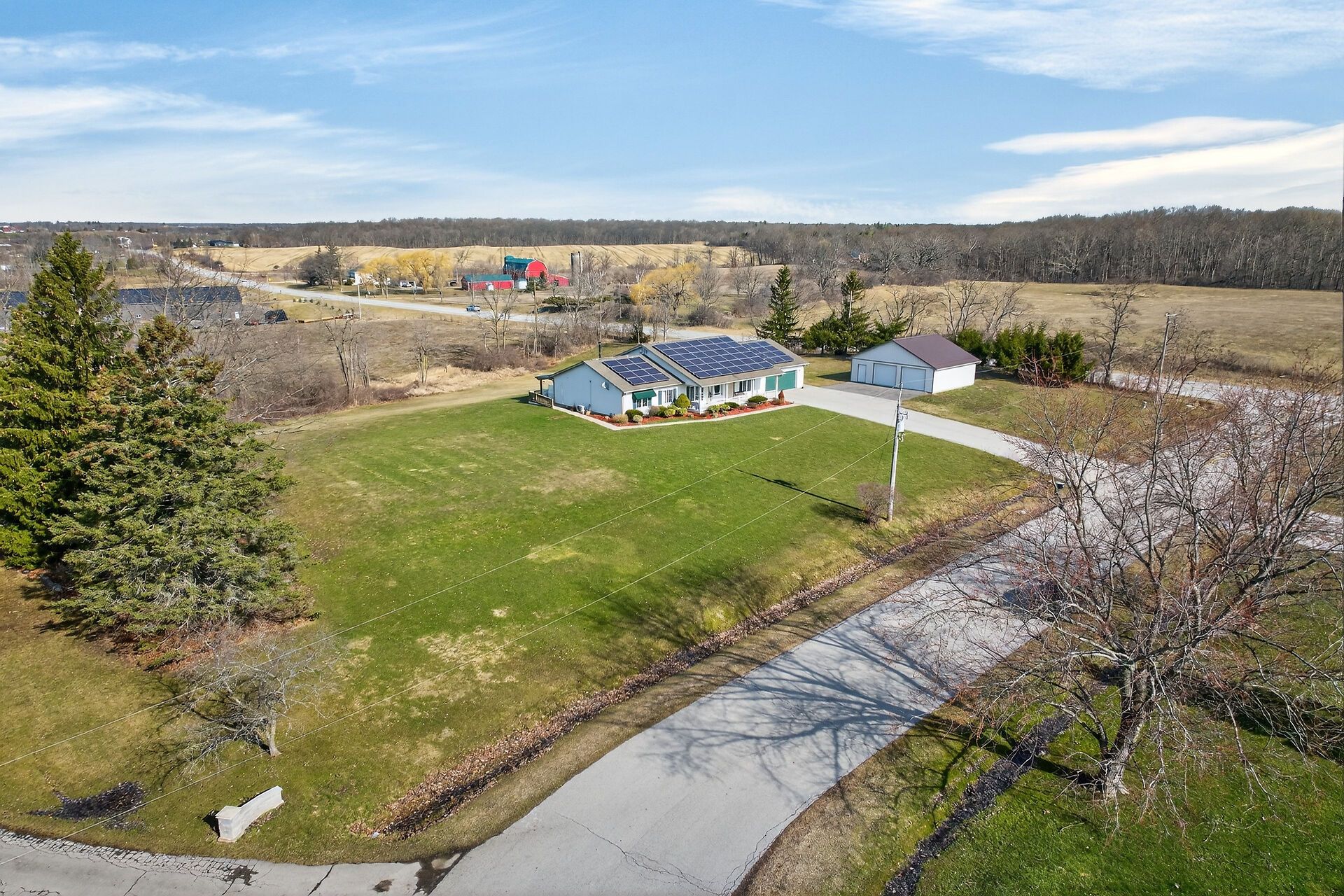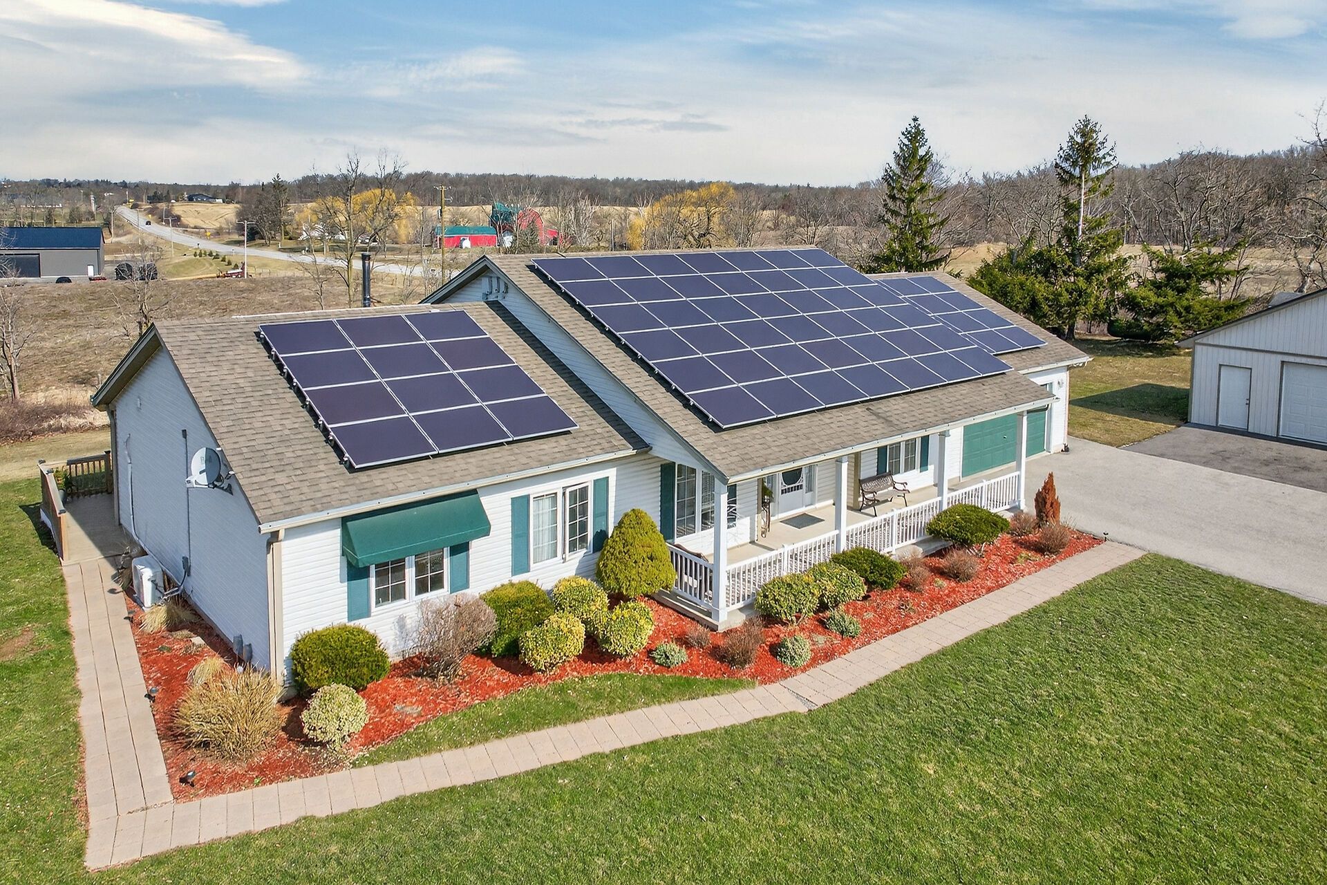• Attached and detached garages provide ample storage and workspace.