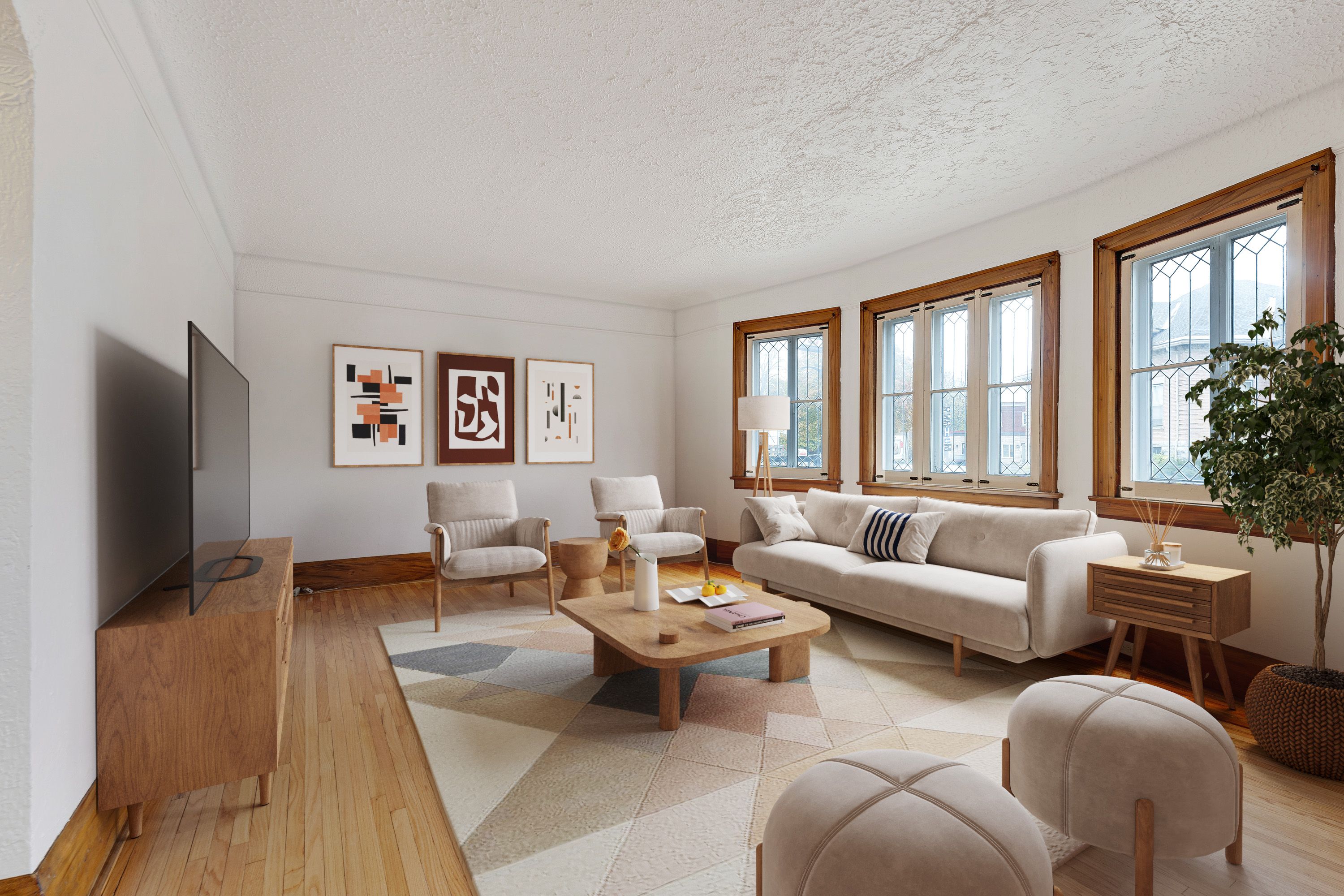 • Welcoming interior with refinished hardwood and rich millwork adds character.