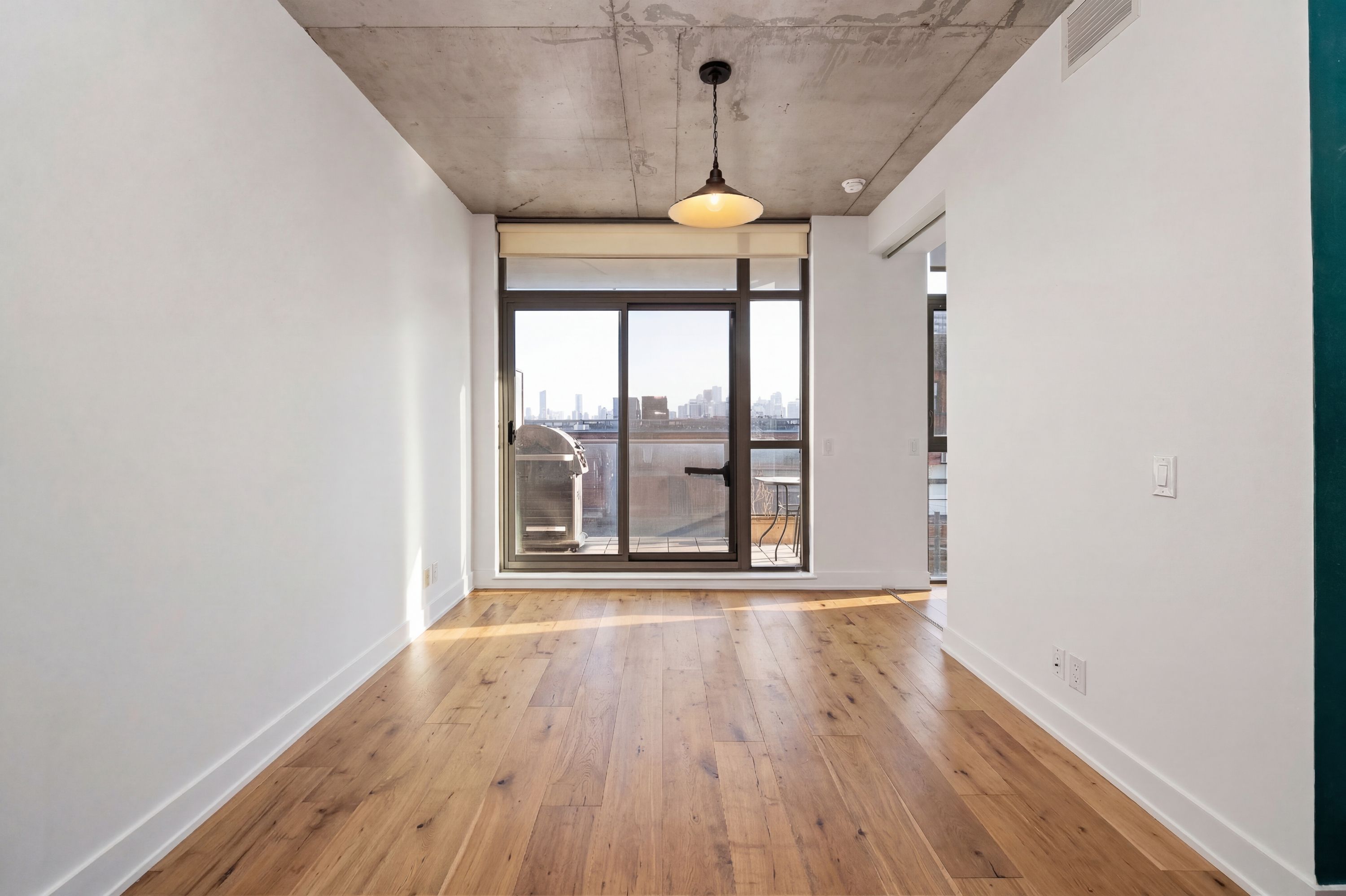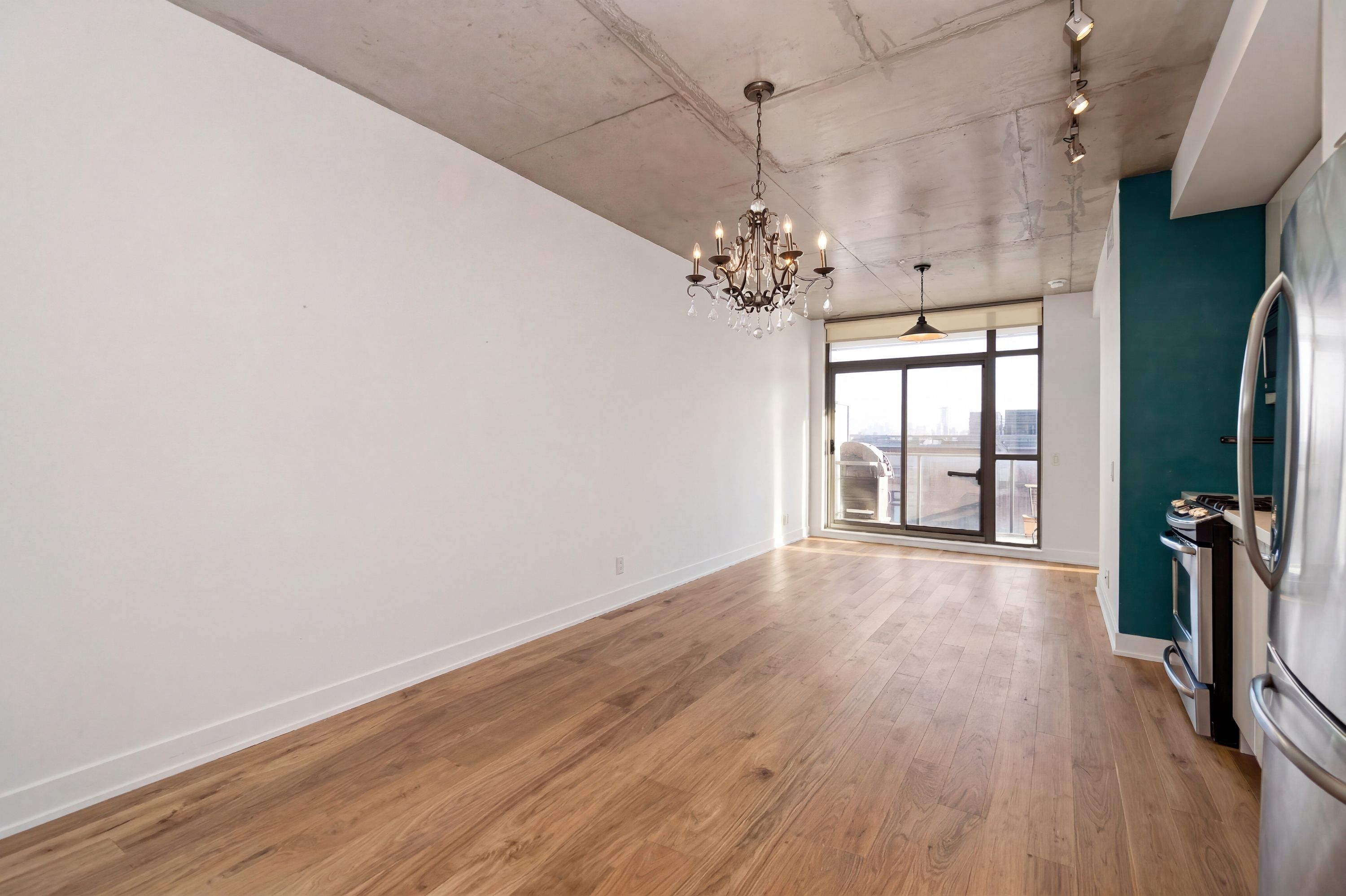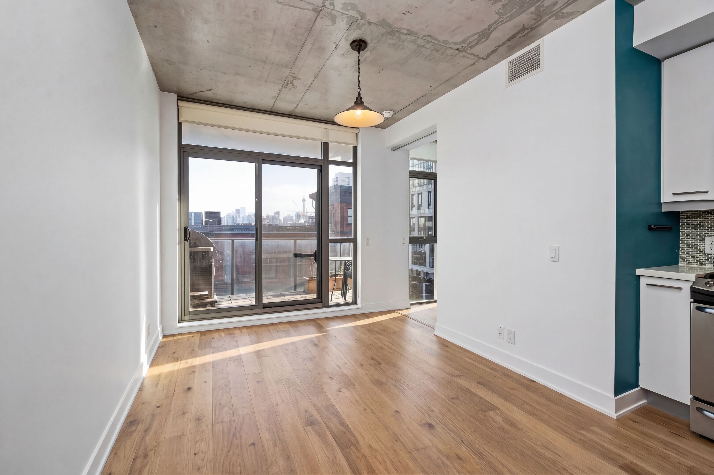 Chic boutique condo rental at 2g. Modern 2-bedroom, 1-bath condo in the heart of little portugal with a stylish loft-like feel. Features soaring exposed concrete ceilings, open-concept living, and plenty of natural light. Contemporary kitchen with gas stove and spacious living area with walk-out to a private balcony with gas hook up.. Steps to queen west, the drake and gladstone hotels, plus cafes, groceries, and shops-including forno cultura-all at your doorstep. Perfect for enjoying toronto's vibrant lifestyle in comfort and style.