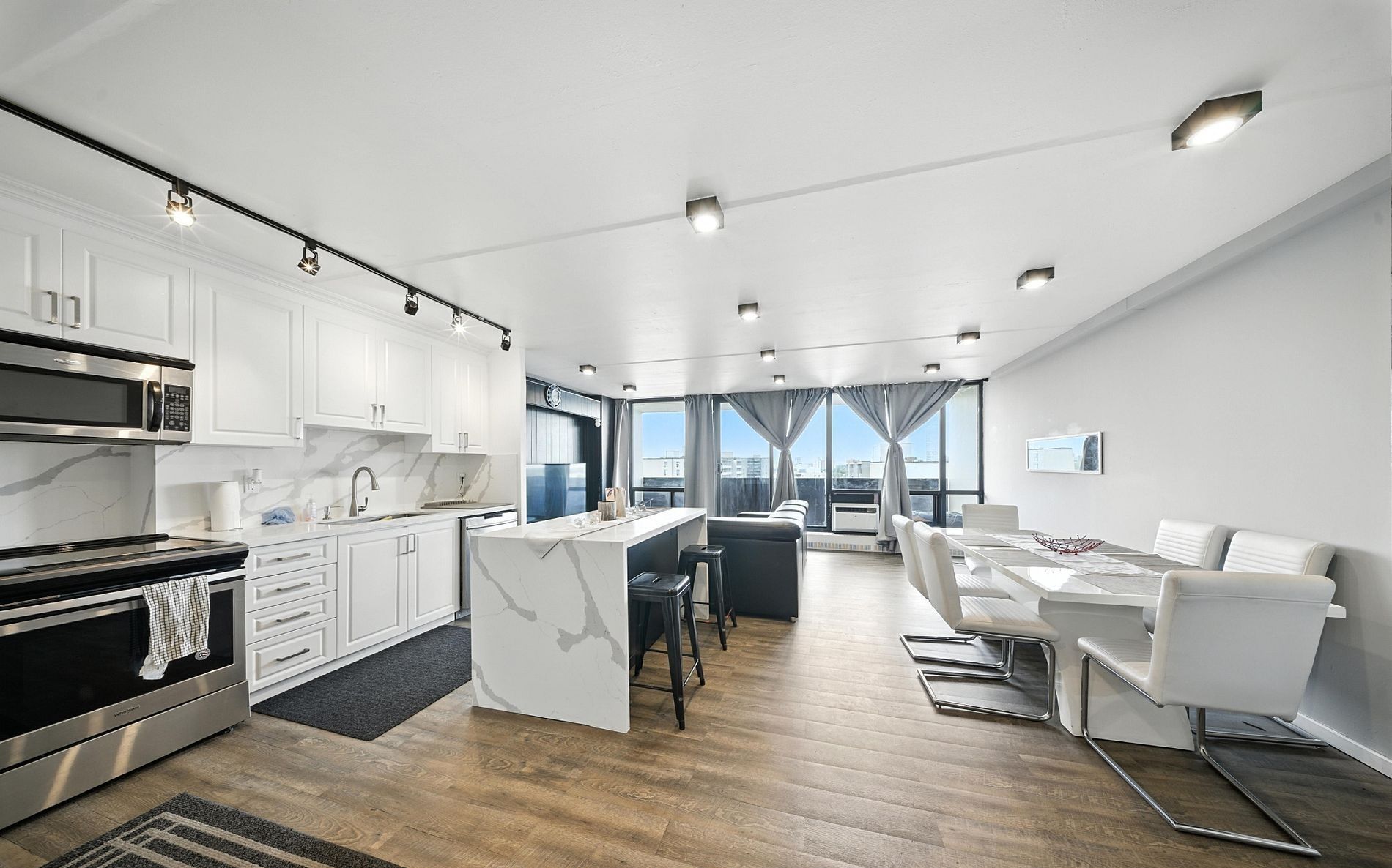 • Renovated 12th-floor suite with an open concept and large windows.