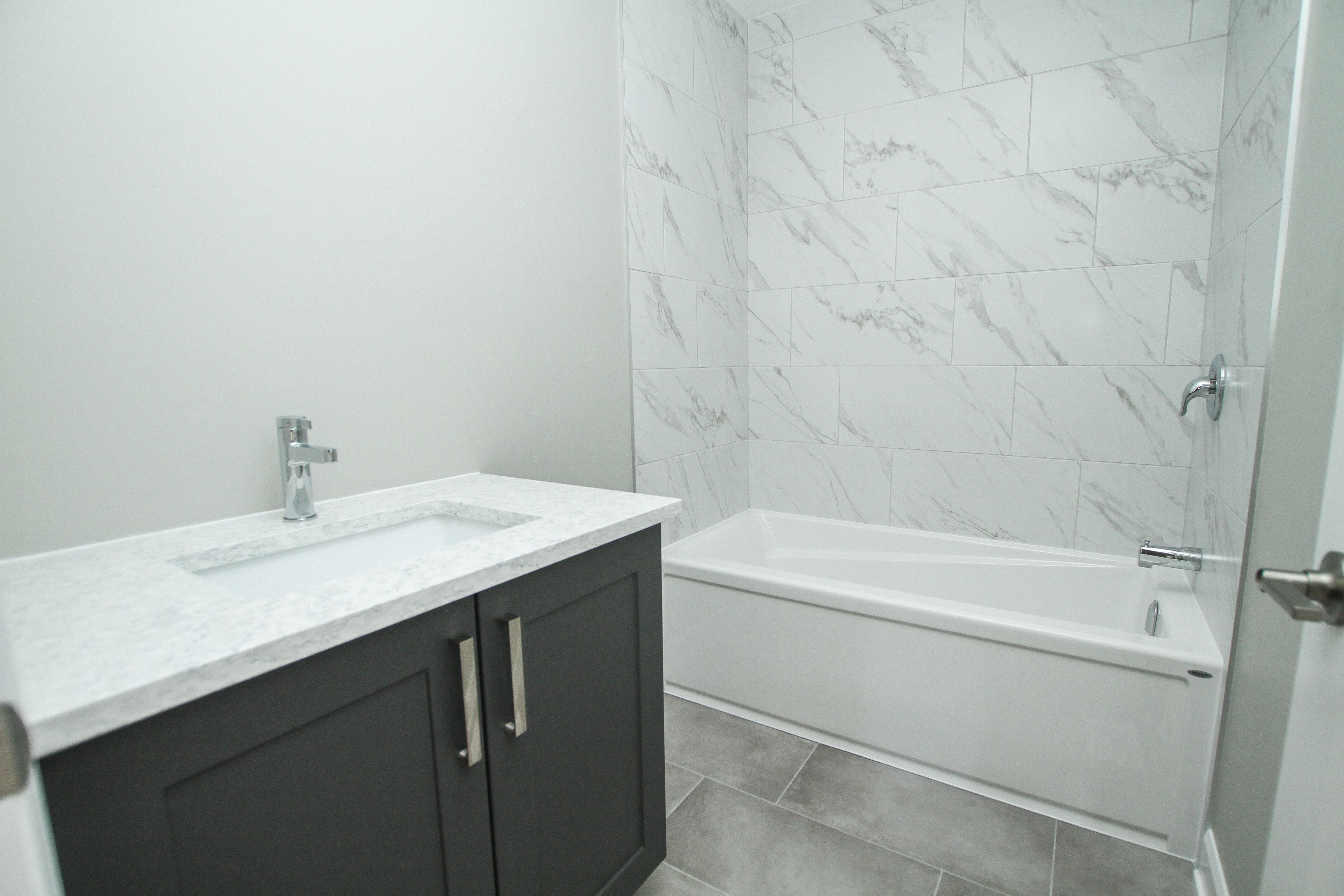 • Stylish bathrooms with quartz countertops and durable tiled shower walls.