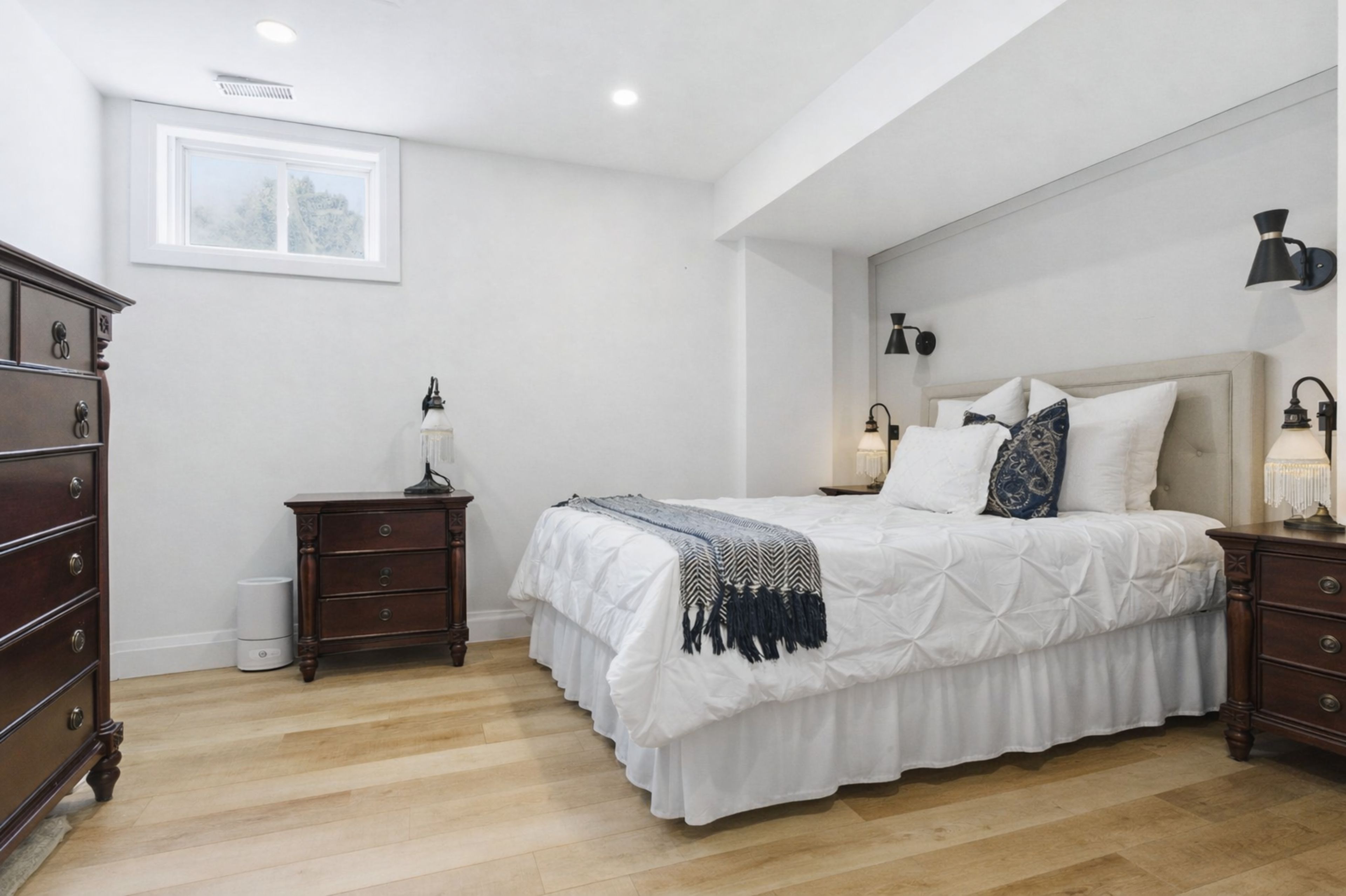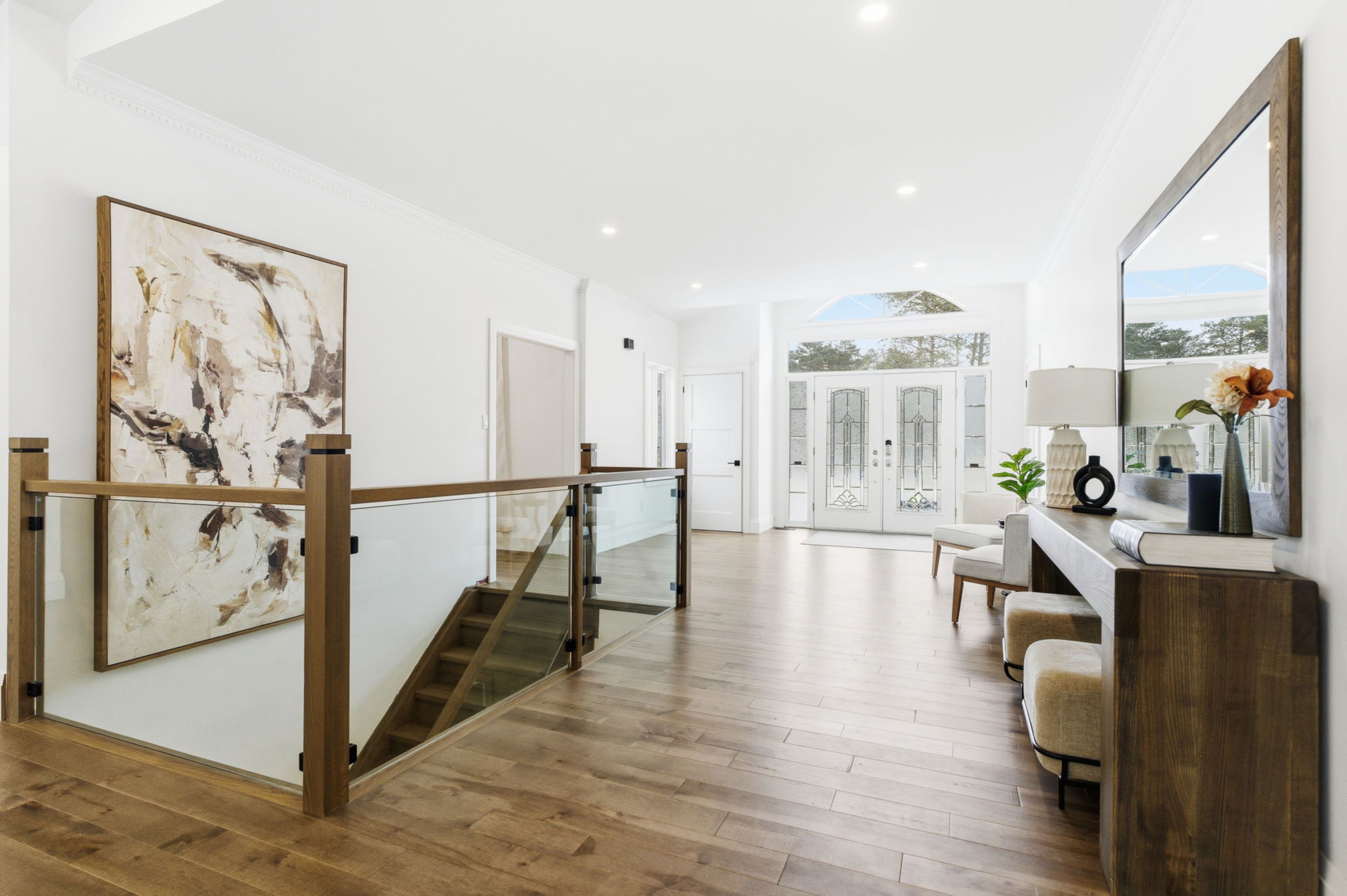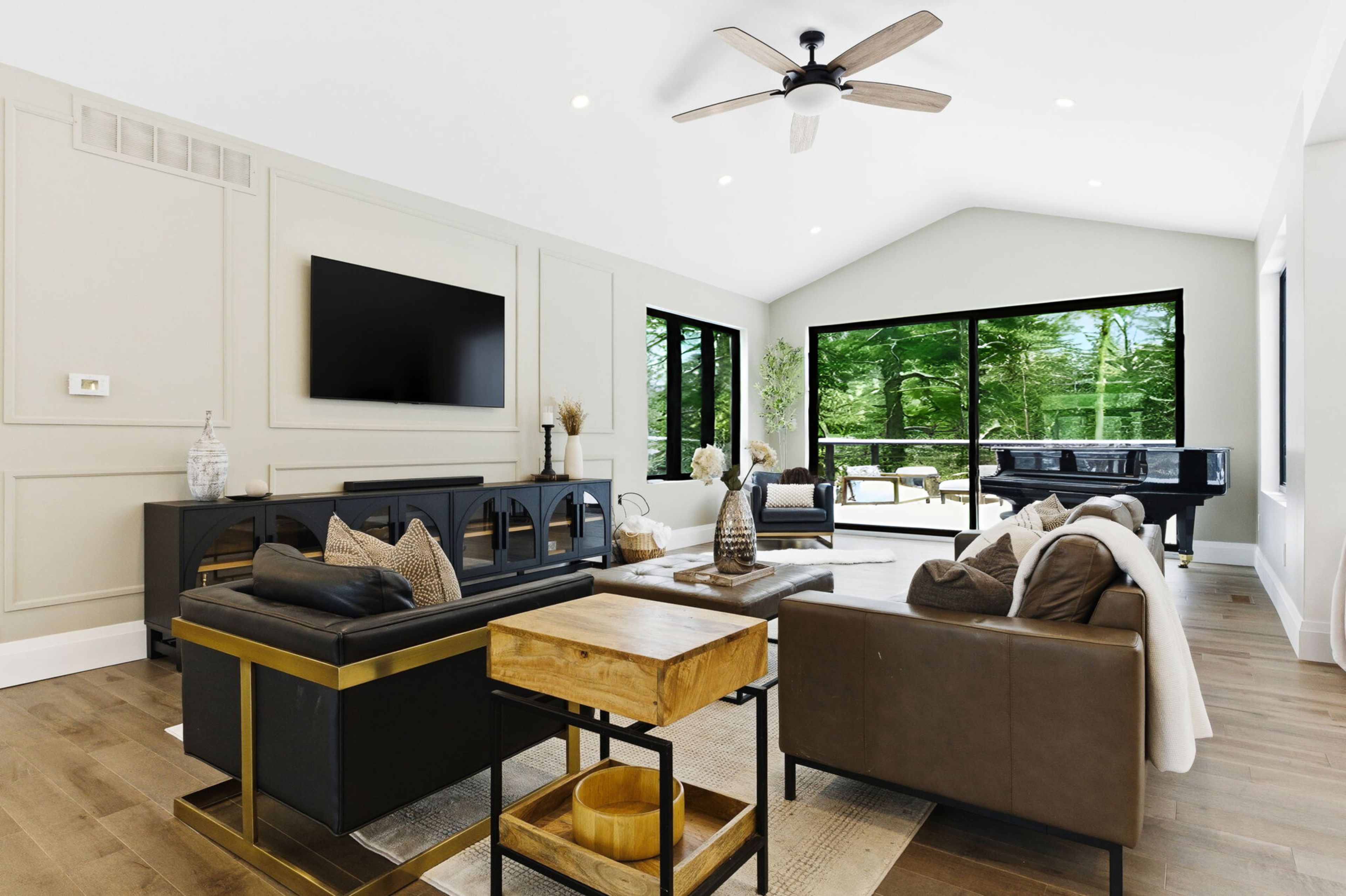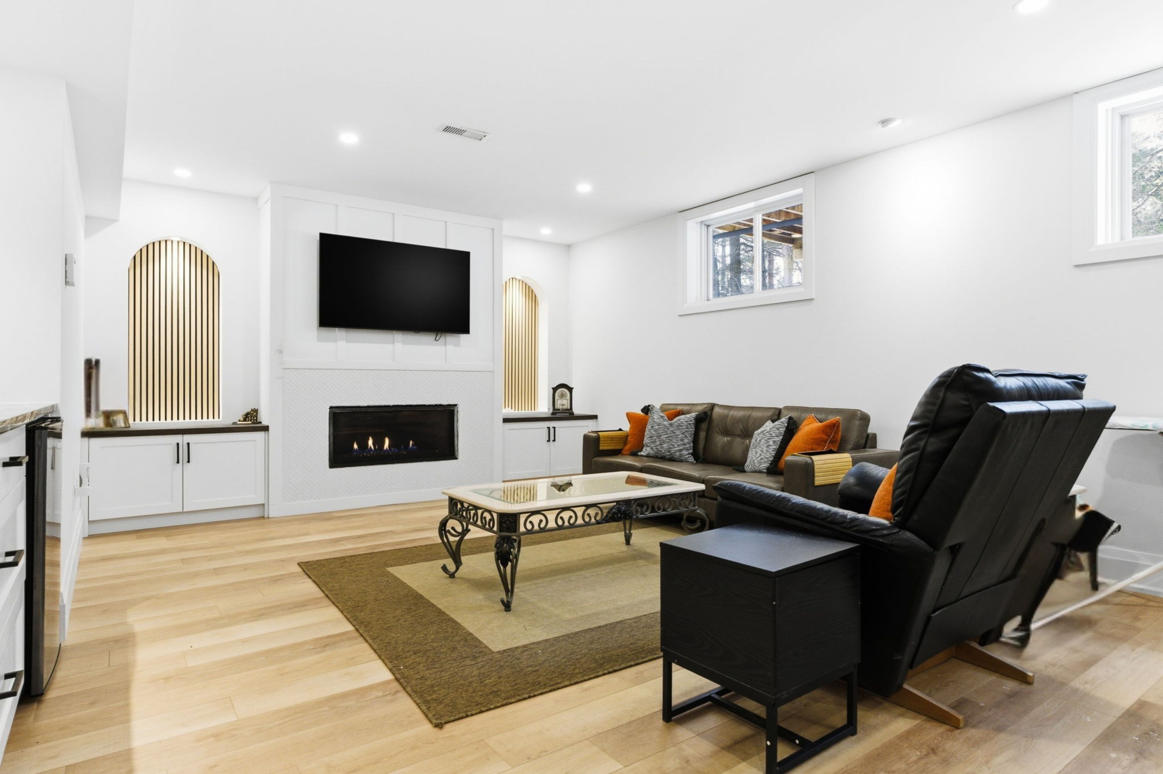 Welcome to 2 gooseberry lane, an exceptional turnkey estate offering modern luxury and remarkable flexibility, all on a coveted 1. 5-acre lot in town. Completely reimagined inside and out, every surface of the home has been meticulously renovated. A large foyer introduces the vaulted living room with a custom "sliding glass wall" opening to the new deck. At the heart of the home is a custom kitchen, beautifully appointed with walnut cabinetry, quartzite countertops, an appliance garage, a professional-grade gas range, and handcrafted pendant lighting - 1 of 3 full kitchens thoughtfully integrated into the home. Hardwood flooring spans the main level, while the lower level features durable luxury laminate, complemented by two fireplaces that add warmth and ambiance. Every bathroom has been fully redesigned with elevated, modern finishes. The main floor master has a luxury ensuite and private deck. The home's versatile layout includes a beautifully finished in-law/guest suite, easily adaptable as a recreation or entertaining space. There is another separate entrance apartment featuring designer finishes - ideal for extended family or income potential. Two brand new laundry rooms enhance everyday convenience, alongside a top-of-the-line water treatment system. Outdoors, the meticulously transformed grounds are complete with a massive interlock patio and grand front staircase (2025), newly cleared trees, a sweeping lawn of fresh grass, and two new rear decks (2025). A new roof (2025) and new driveway (2025) complete this exceptional offering. Blending timeless craftsmanship with state-of-the-art upgrades in an unbeatable in-town location, 2 gooseberry lane delivers elevated living defined by comfort, elegance, and exceptional functionality.
