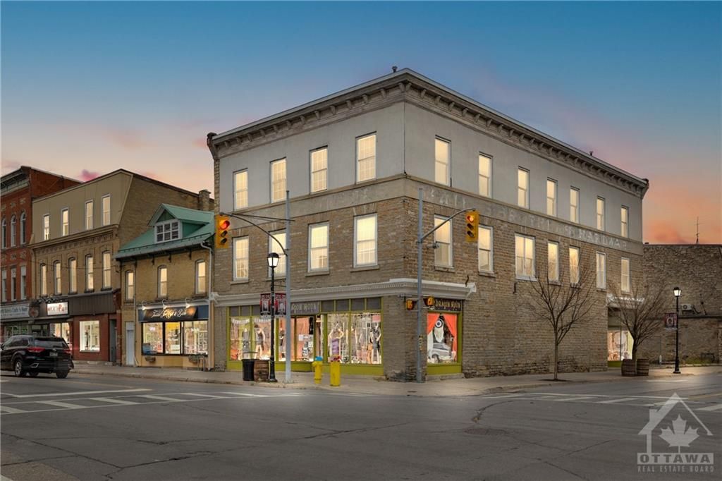 Circa 1880 stone retail building in the heart of all the activities in historic central downtown perth,high visibility & high traffic location in a high traffic heritage tourist town,2 blocks to the tay canal which flows into the world heritage site rideau canal,3 blocks to stewart park the wedding capital park of ontario with a multitude of yearly festivals,tremendous upside potential in the rental income with the 2nd & 3rd flrs being vacant,close to the oldest golf course in canada-the links o tay golf course,1 block to the best western hotel,very high walkscore being close to all the amenities like other retail stores & restaurants & banks,perth also has one of the best hospitals in ontario located a few blocks from the downtown,perth has been voted the prettiest town in ontario,40% of perth residents are retired & these retirees make excellent tenants in the event the 2nd & 3rd flrs were turned into apts,or turn the 2nd & 3rd flrs into condos to create revenue producing real estate