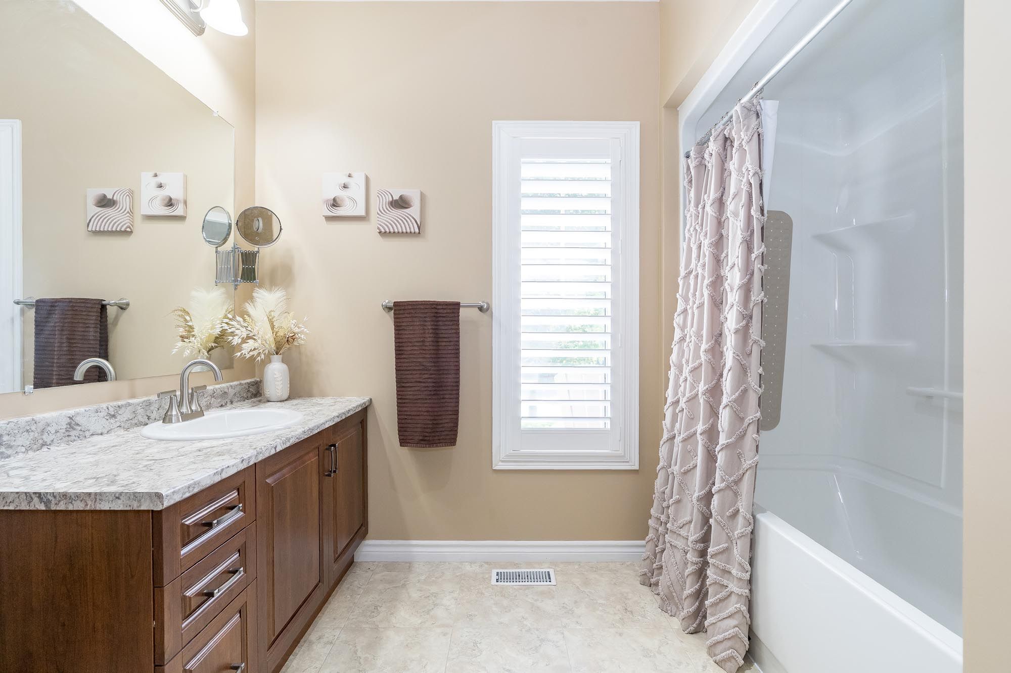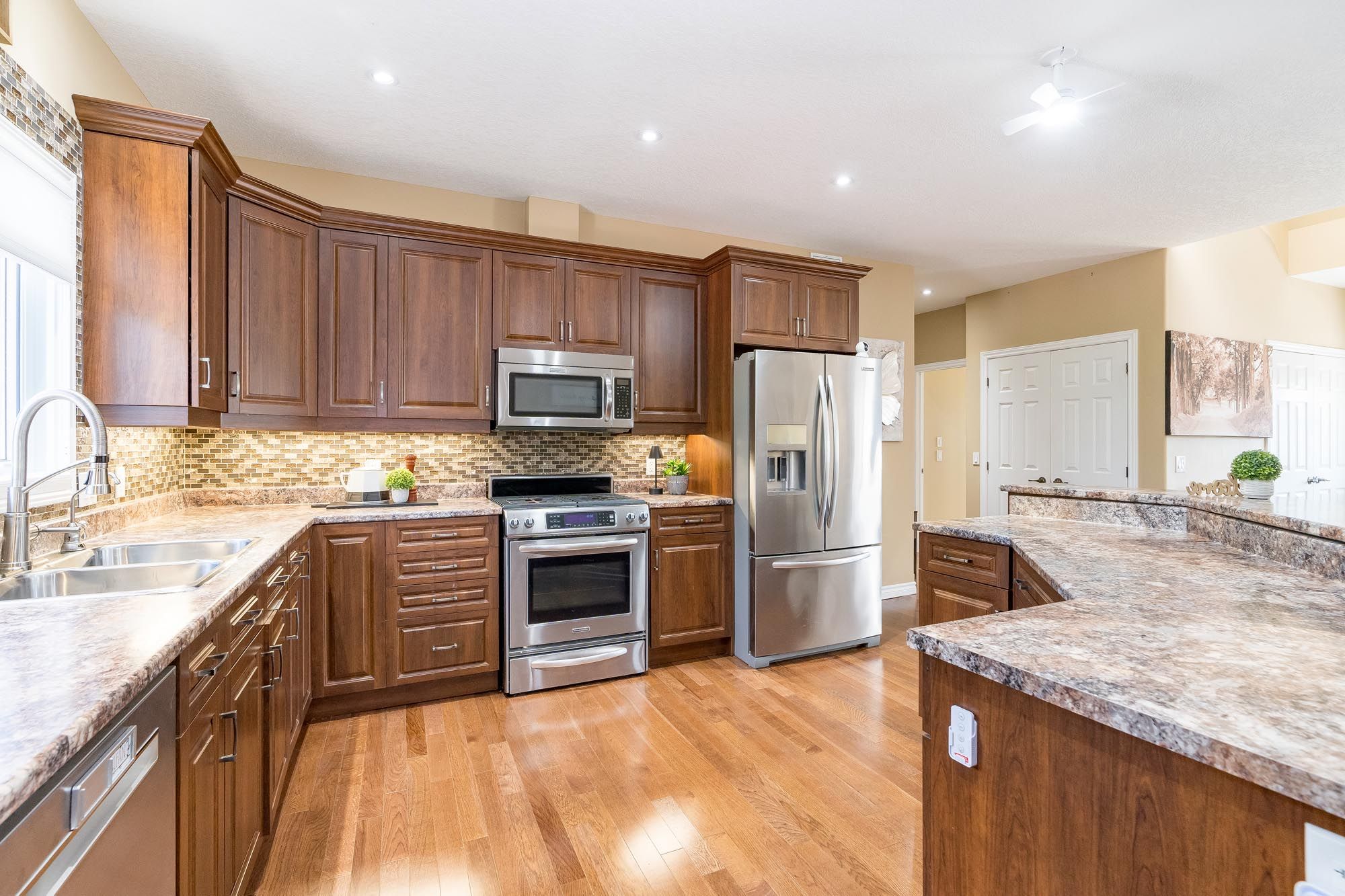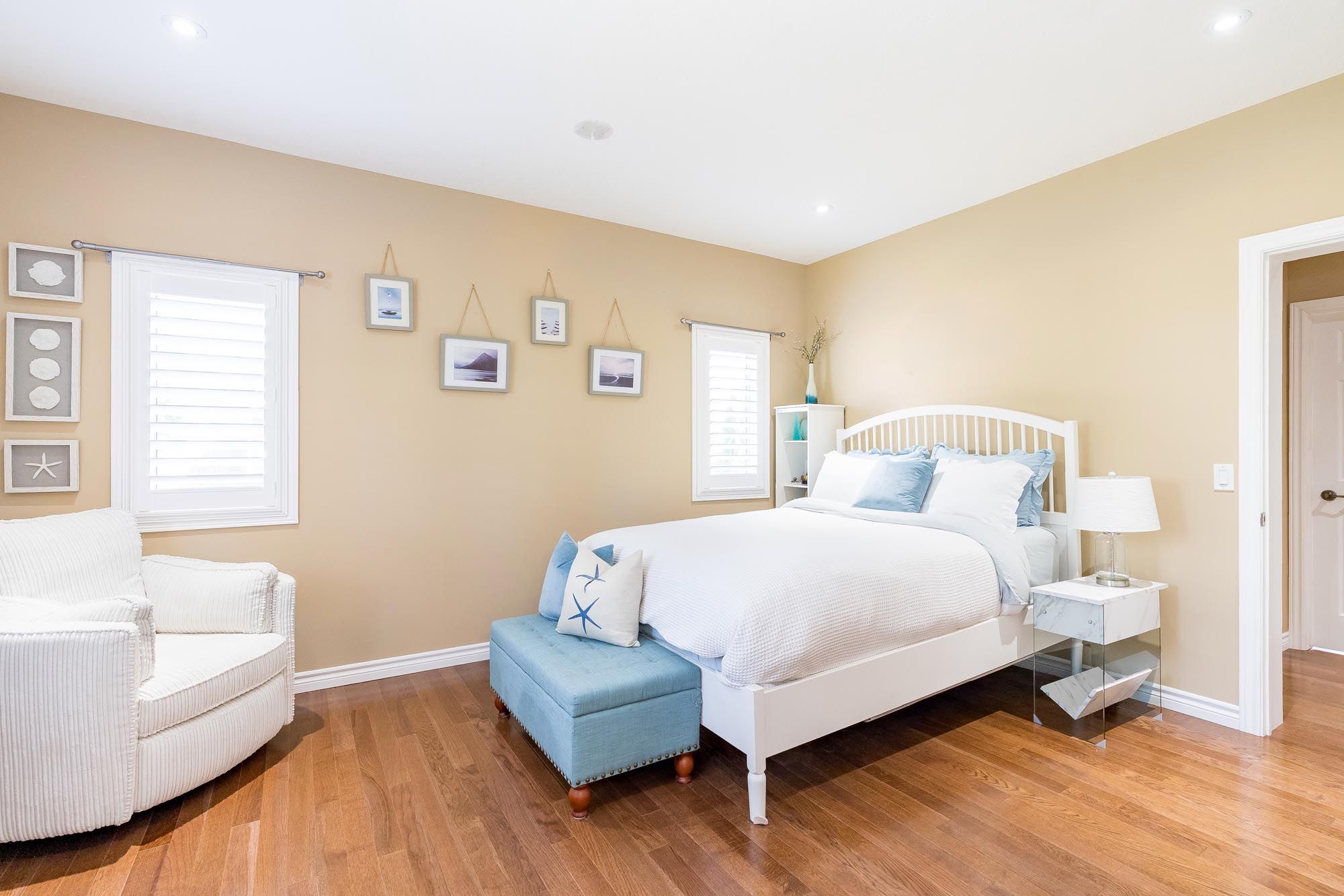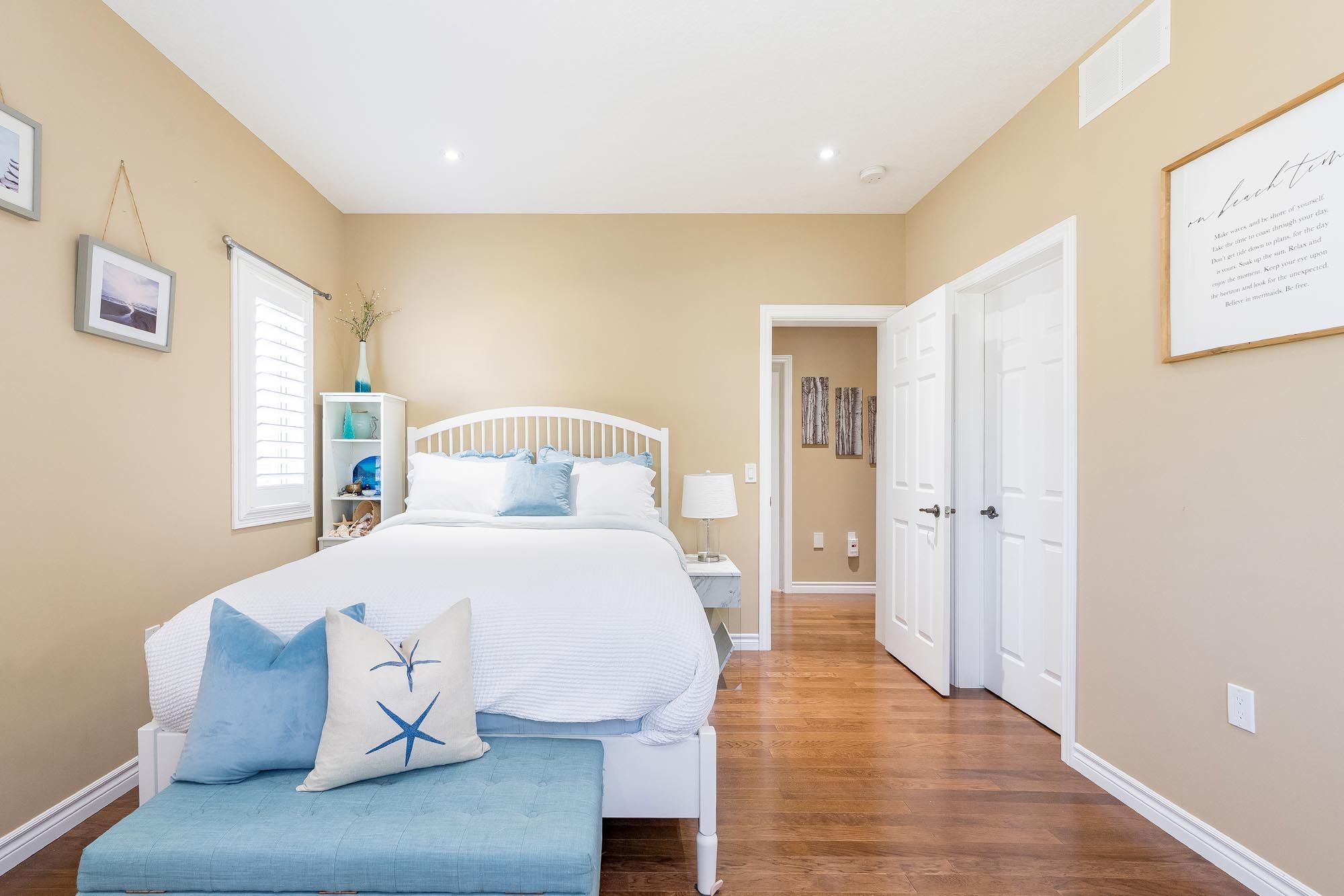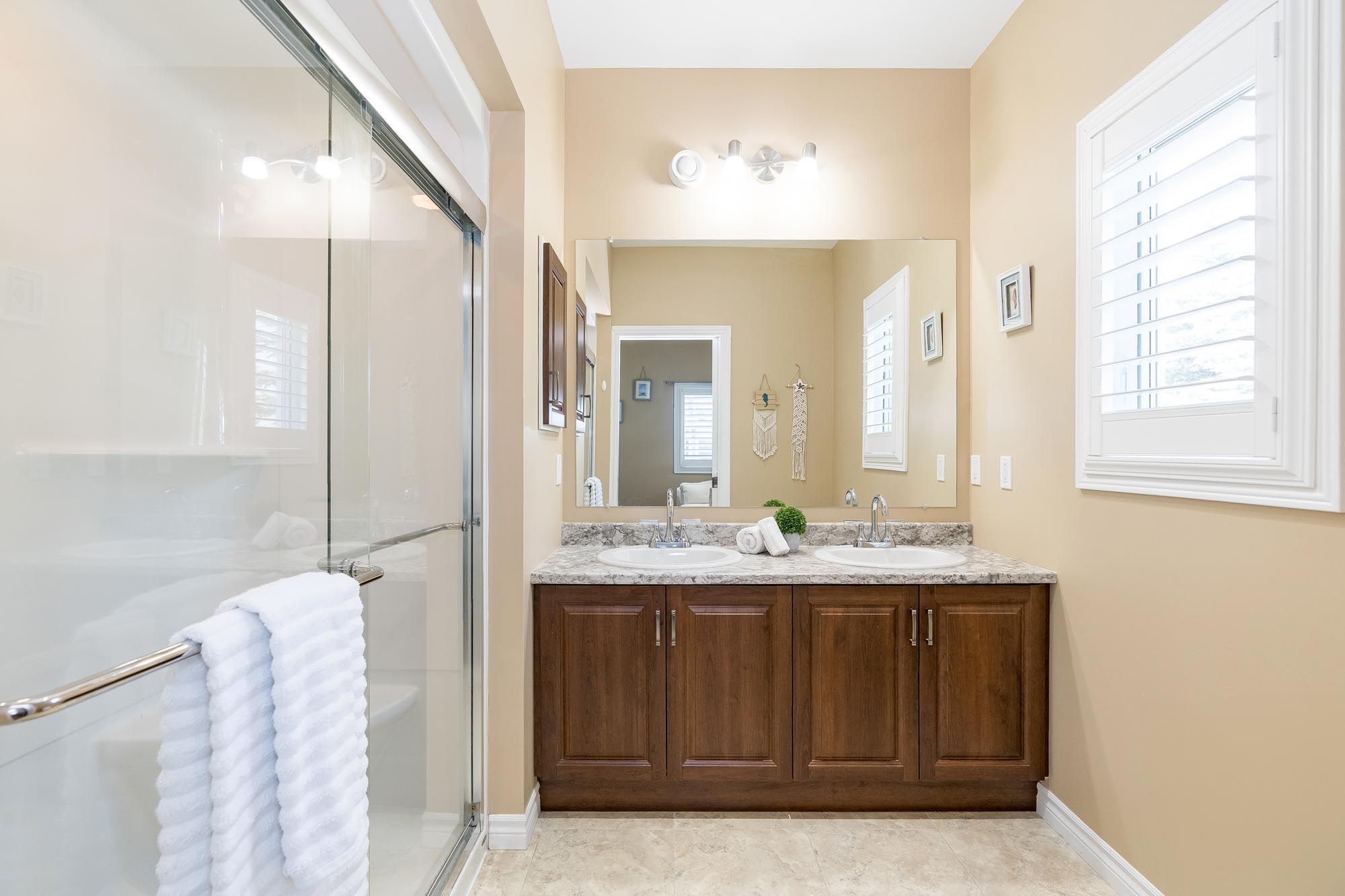 • Generous primary suite with walk-in closet and ensuite access.