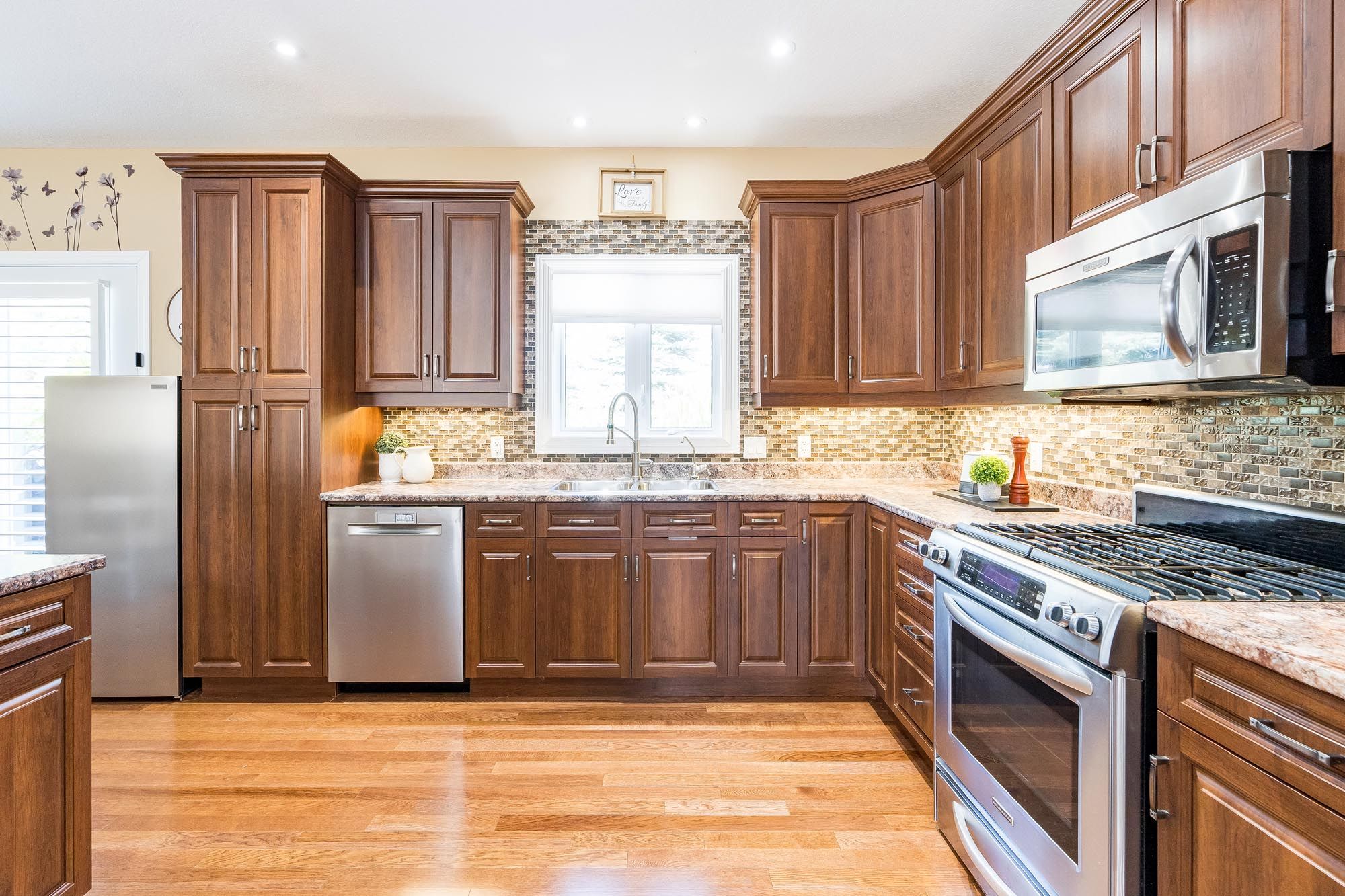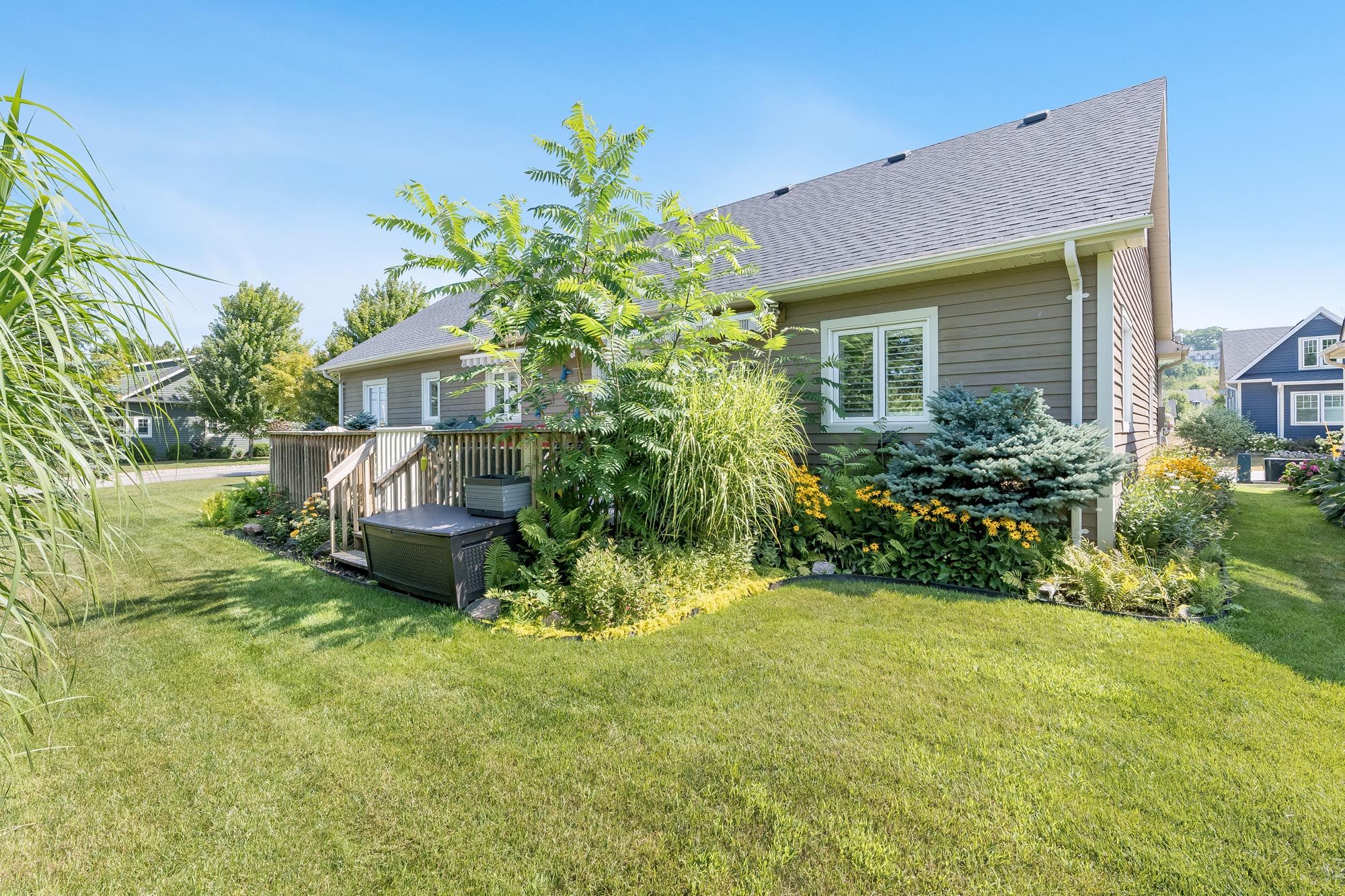 • Beautifully landscaped lot with mature gardens and sprinkler system.