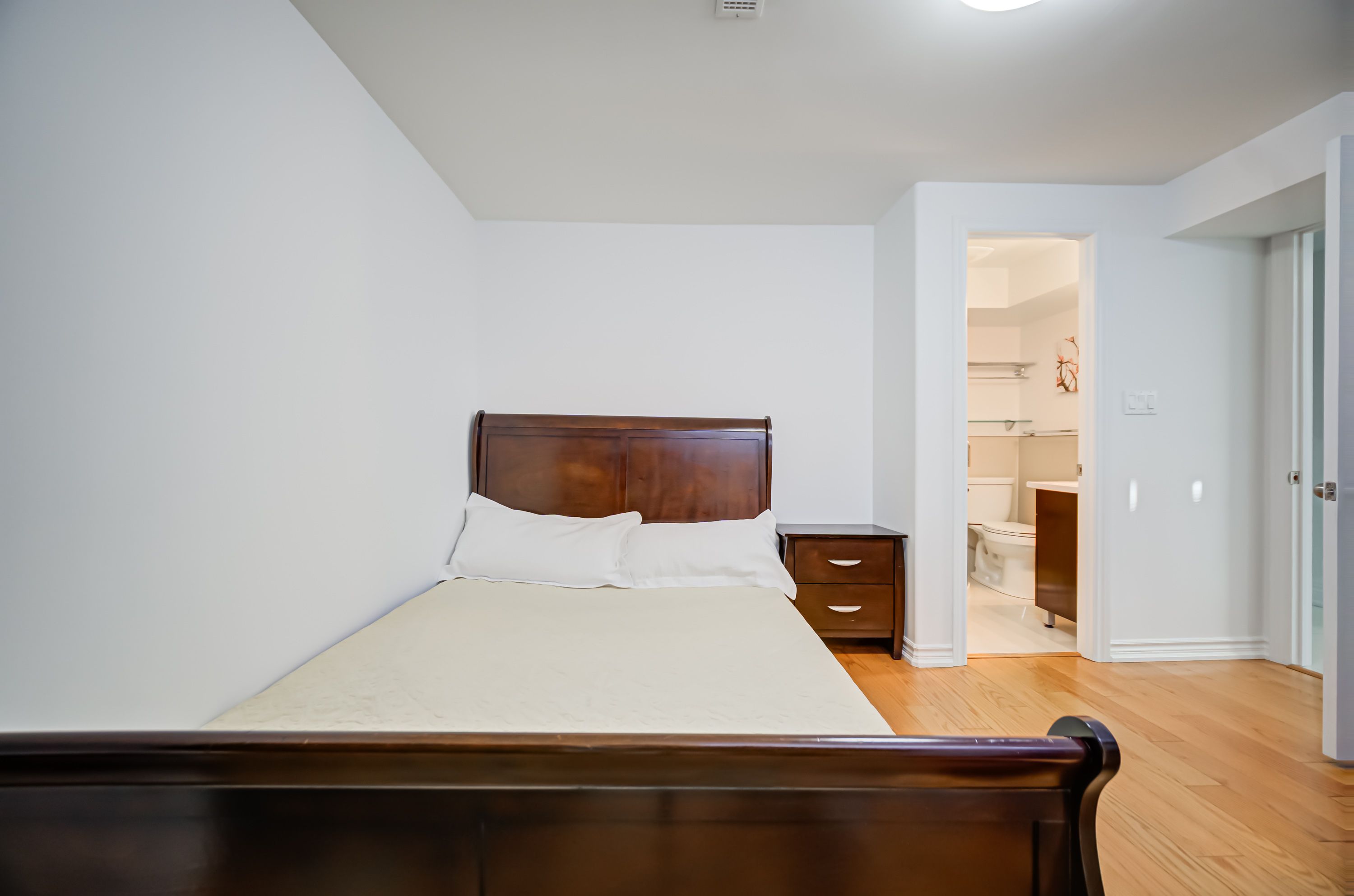 Elegant executive two bedrooms with two ensuite washroom basement apartment. Large window, porcelain floor in living room and kitchen. Hardwood floor in bedrooms. All solid and high quality furniture in unit for tenants use. Seconds drive to hwy 401, oriental centre, canadian tire & walk to stc, rt (future subway), top restaurants, supermarkets, schools etc.