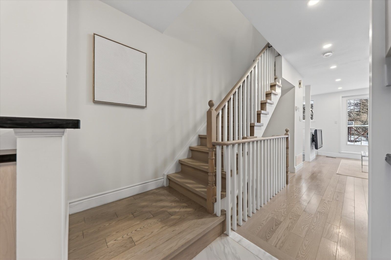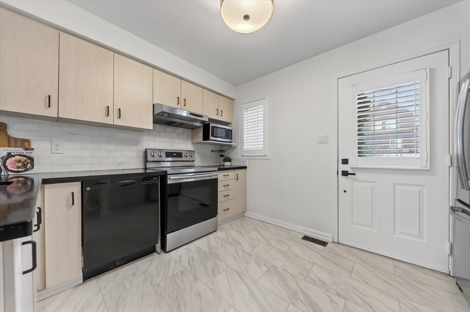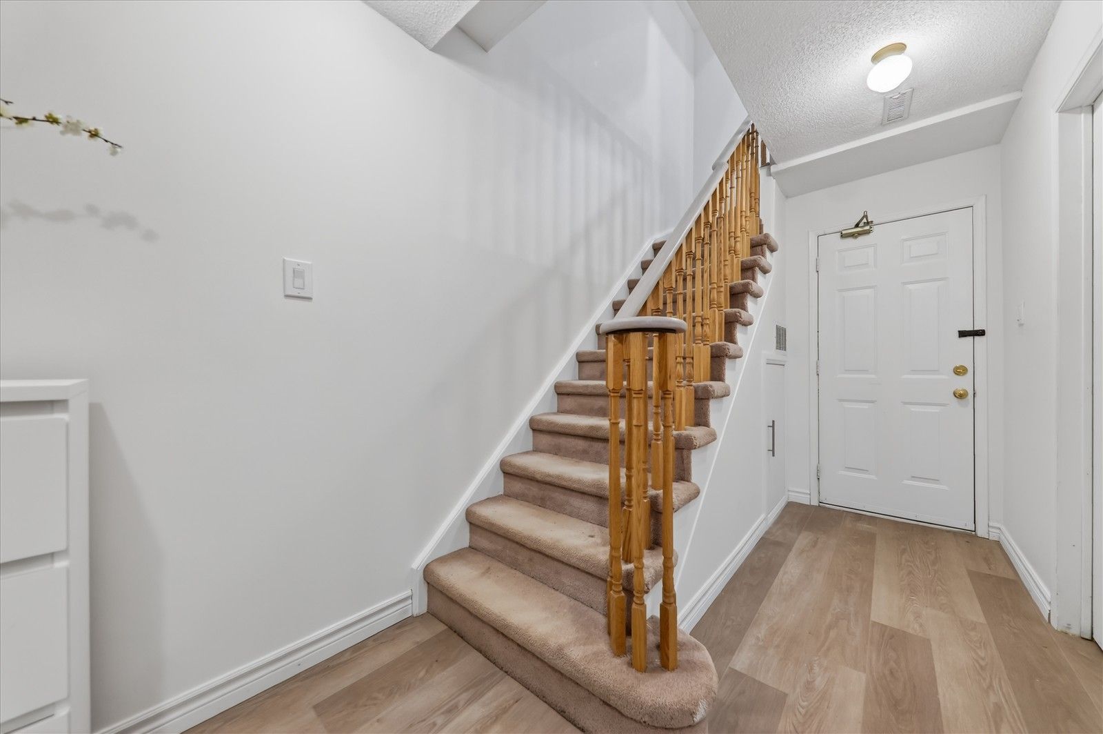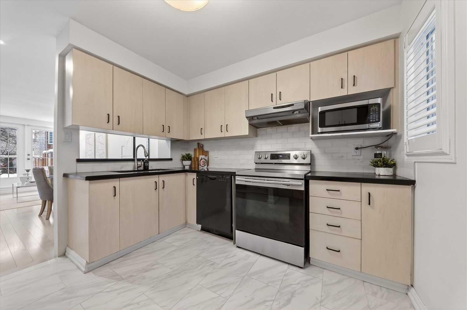 Excellent opportunity for first time home buyers. Welcome to this beautiful townhouse with lots of upgrade and natural sunlight, open concept newly painted large living and dining combined on main floor and walk out to newly updated large deck for barbeque and summer enjoyment. New hardwood flooring (2025), 2 decent sized bedrooms on 2nd floor and 1 large bedroom in lower level with w/o to the garage. Fully renovated bathrooms, windows & roof 2021, new furnace 2025, new a/c 2025, pot lights, double door fridge, front load washer & dryer, steps to ttc, minutes to hwy 401, u of t scarborough campus, centennial college, toronto zoo, and all major amenities.
