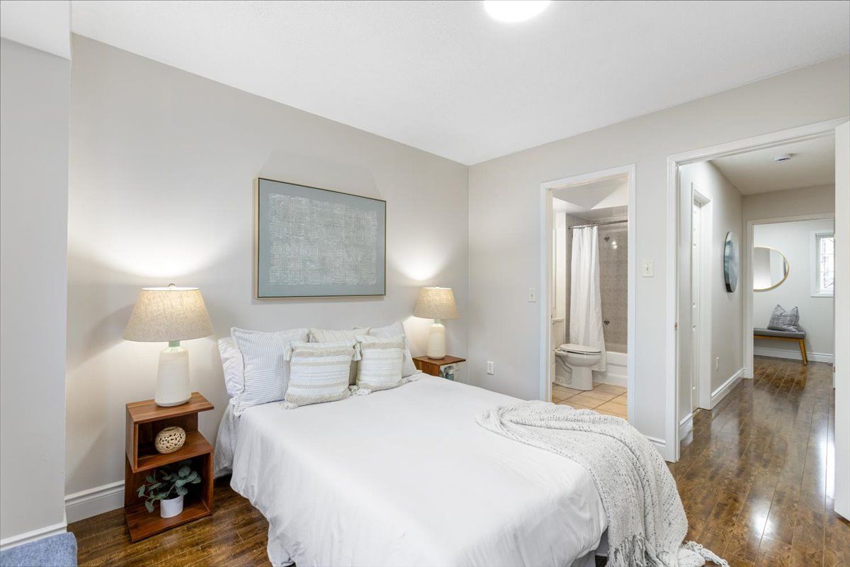 A thoughtfully designed multi-level townhome offering the space and separation today's buyers are looking for. This 3-bedroom, 3-bathroom residence spans approximately 1,161 sq ft above grade across three well-laid-out levels, creating a natural flow between living, entertaining, and private areas. The main level offers a seamless walkout, extending your living space outdoors and adding everyday convenience. The home has been refreshed with newly painted interiors and updated light fixtures, giving it a clean, modern feel that's ready to move into. Upstairs, you'll find two additional well-sized bedrooms dedicated home office, or even a guest space. Perfect for a growing family, aon the upper level, you'll find a private retreat complete with its own full bathroom and walk-in closet-an ideal getaway space for the homeowner to unwind and recharge. The finished lower level delivers real bonus living space, room for a sofa, coffee table, and seating area along with a full bathroom and stacked laundry conveniently tucked inside. A private basement garage completes the picture with secure, covered parking. Equipped with forced air heating and central air conditioning, the home delivers year-round comfort. Set within an established toronto community, this property is well-suited for buyers looking for more space, better layout, and long-term livability. Experience the layout and flow for yourself. Book your private showing today.