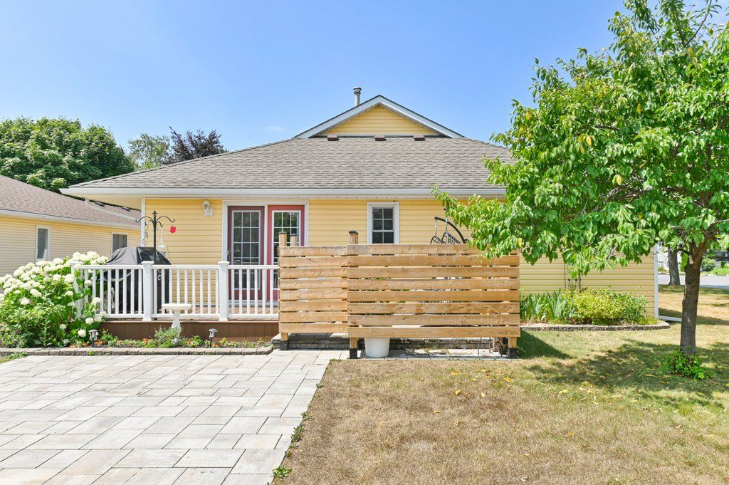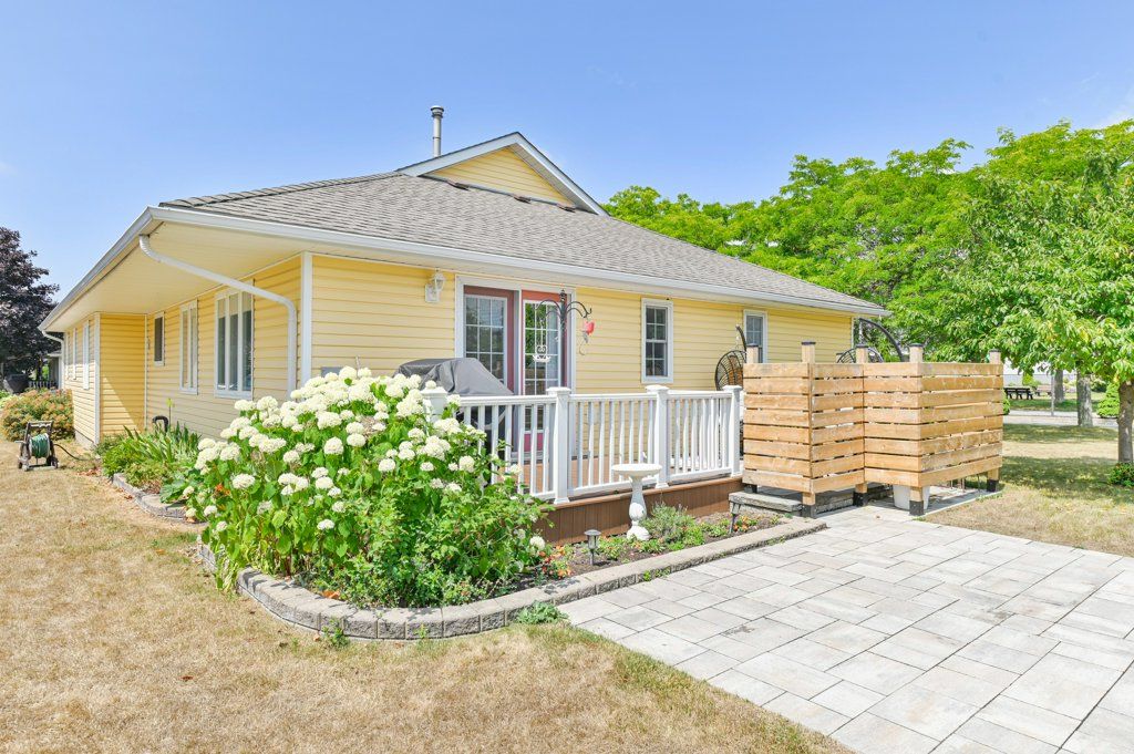 Welcome to wellington on the lake. 2 heritage is a bright and airy two-bedroom, two-bathroom corner bungalow, which isapproximately 90% updated. The home features a beautifully renovated kitchen with quartz countertops, additional cabinetry, a slimline over-the-range microwave, three pantries, a dedicated coffee bar, and a movable island with a solid wood counter and cupboards perfect for avid bakers and entertainers. It can be repositioned to facilitate the movement of furniture if needed. Hardwood floors in all rooms, excluding the kitchen, hallway, and bathrooms. Enclosed front porch. Crown moulding adds a touch of elegance to the principal rooms. The cozy den includes a natural gas fireplace, providing both ambiance and emergency heat during power outages. Room-darkening blinds are installed in the bedrooms and main living areas for added comfort and privacy. The primary ensuite features a roll-in shower, and a sun tunnel brightens the main bathroom and hall with natural light. Additional features include an updated furnace and water heater. Stacked washer and dryer with extra storage shelves added to the laundry closet and access to high-speed fibre or cable internet. The outside living space is just as inviting, featuring a private patio that leads to a larger entertaining space, along with a natural gas hookup for a bbq or fire pit. With no rear neighbours as the home backs onto prince edward drive. You'll enjoy a greater sense of space and privacy. Wellington on the lake is renowned for its warm and welcoming community. A wide variety of social and recreational activities are available for those seeking social engagement, ranging from dances and exercise classes to ping pong and more. The recreation centre boasts a heated outdoor pool, tennis court, billiards room, fitness area, library, and main event hall. Come experience all that wellington on the lake and beautiful prince edward county have to offer.