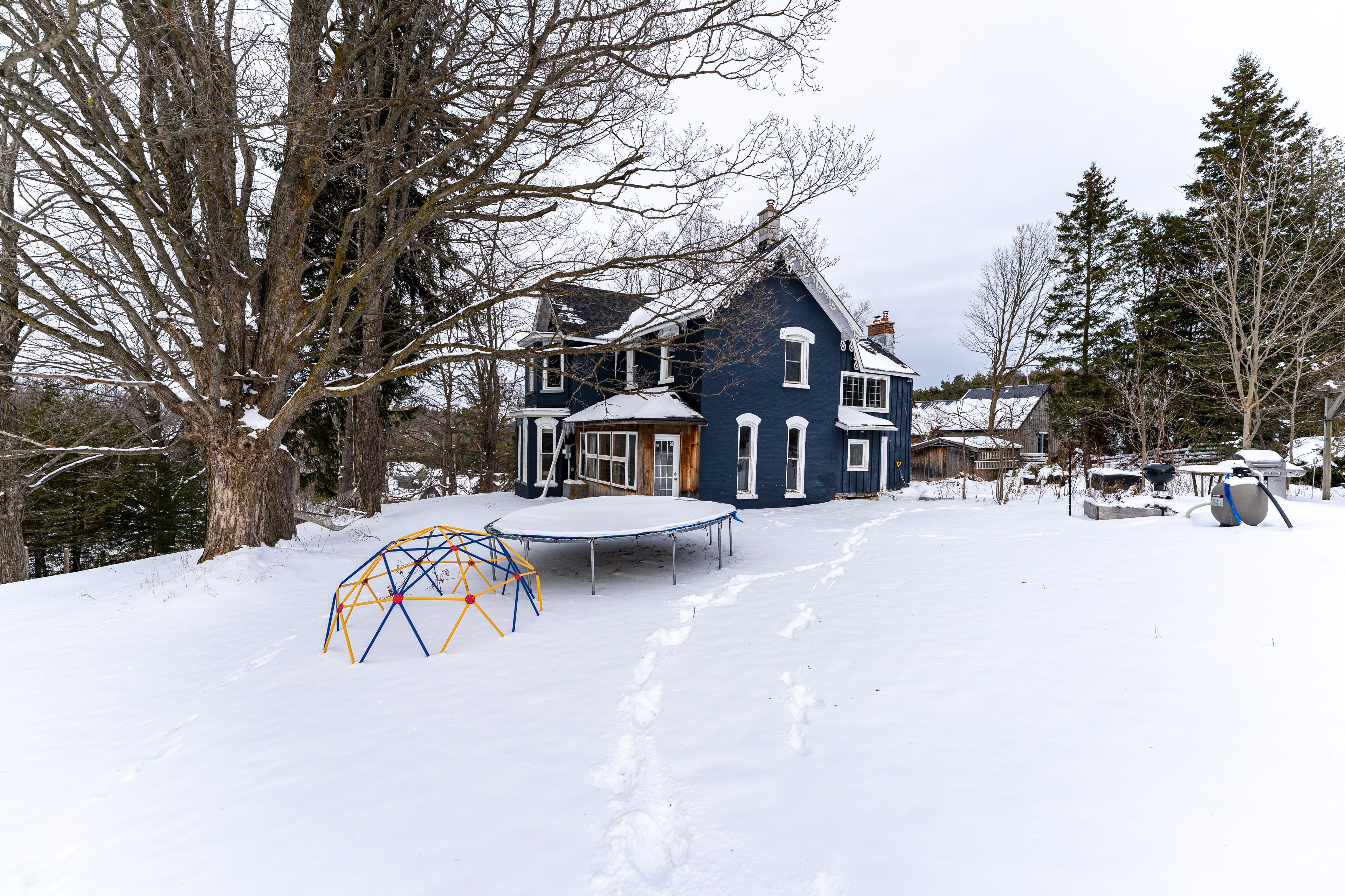 High st. & high charm. Overlooking the storybook village of hornings mills, this victorian century manse brings all the old-world character you wish modern builds still had. Original baseboards, pencil windows, a bow window that practically poses for portraits, and doors with more history than your favourite podcast. Sitting on 1. 35 rolling acres, the property comes complete with a pool for summer lounging and space that's just begging for your personal touch. Inside, it's ready for someone with vision to breathe new life into its timeless bones. There's a separate stone coach house offering endless flexibility, an artist's workshop, studio, or that charming guest suite you'll totally keep just for friends. And if you're craving winter vibes, you're in luck, this spot makes the perfect chalet, located just minutes from some of the area's best ski clubs. Lower lot can also be severed