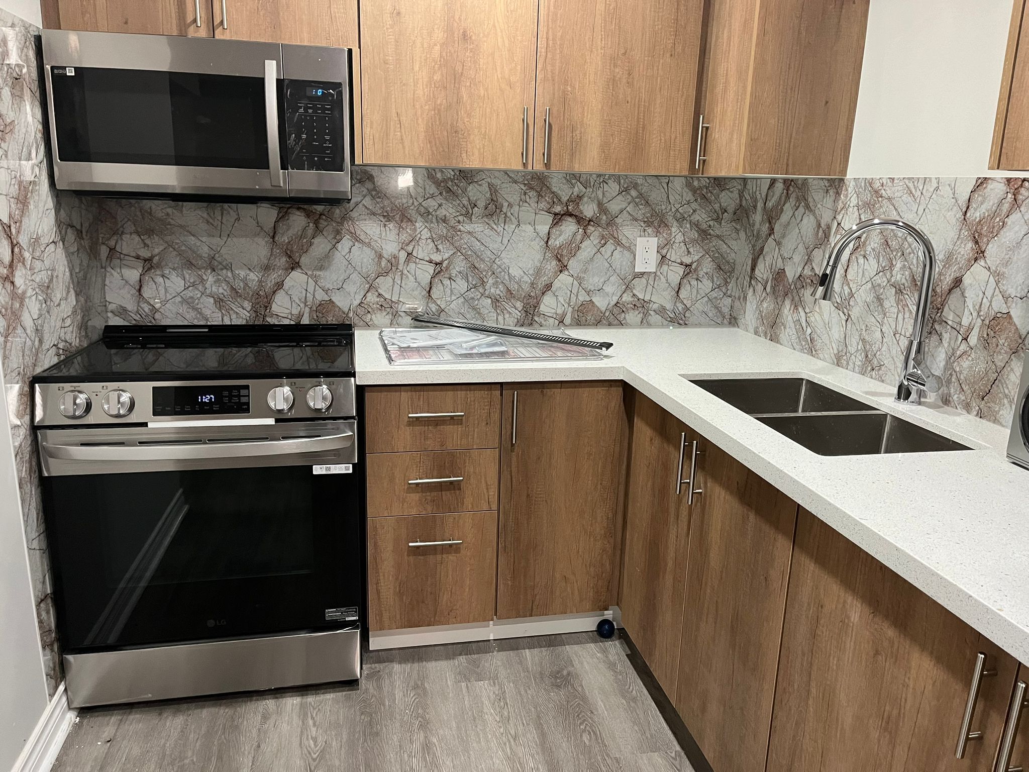 This bright and spacious 2bed 2 bath basement apartment offers open concept living space with modern finishes and a aaa tenants lifestyle in mind. Separate private entrance, 1 parking space. Separate laundry. A must see space! Suitable for couple or a small family. Steps to bus stop , close to schools, shopping, park etc. Great location. Separate laundry, separate entrance. Tenant is responsible for 40% of utilities.