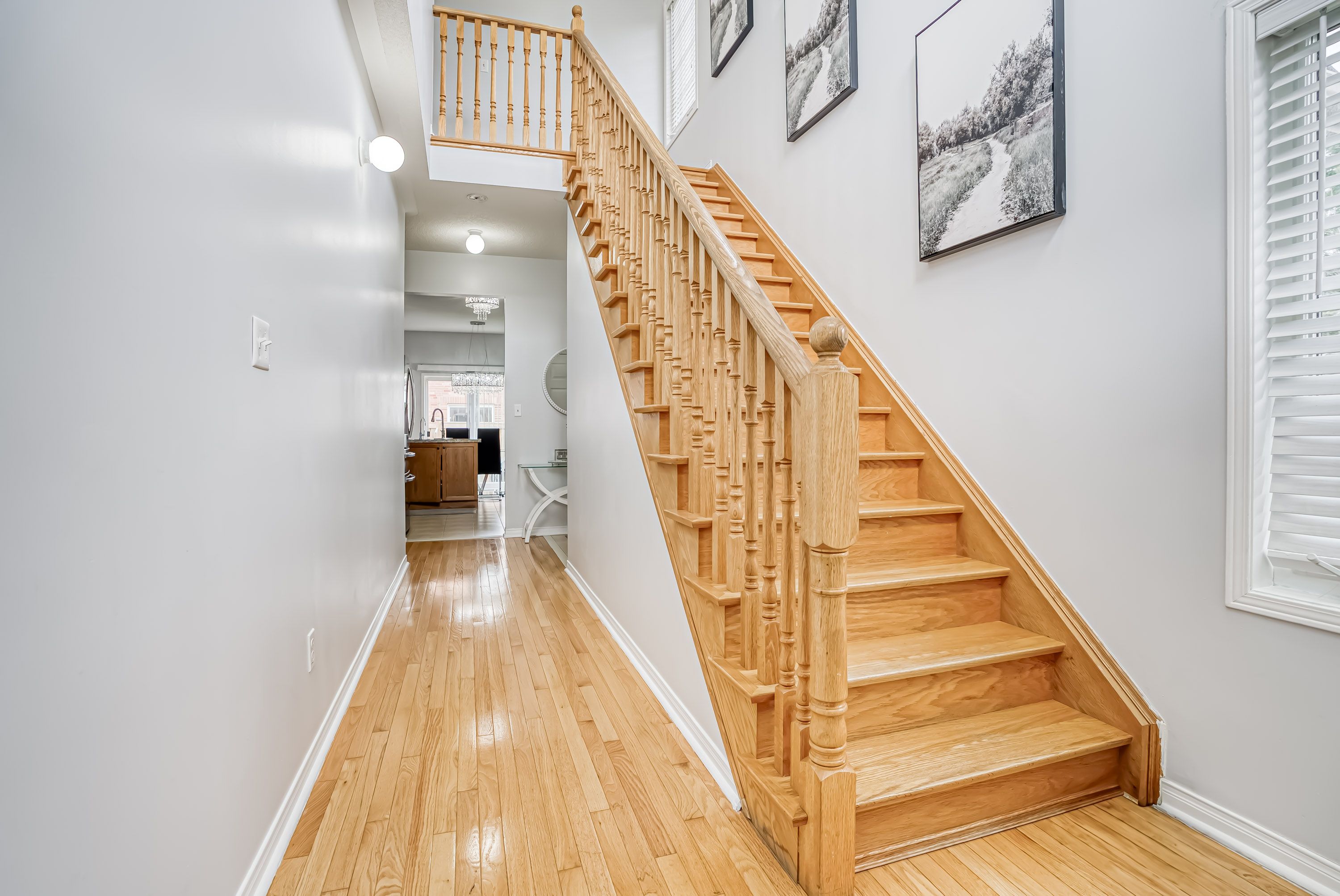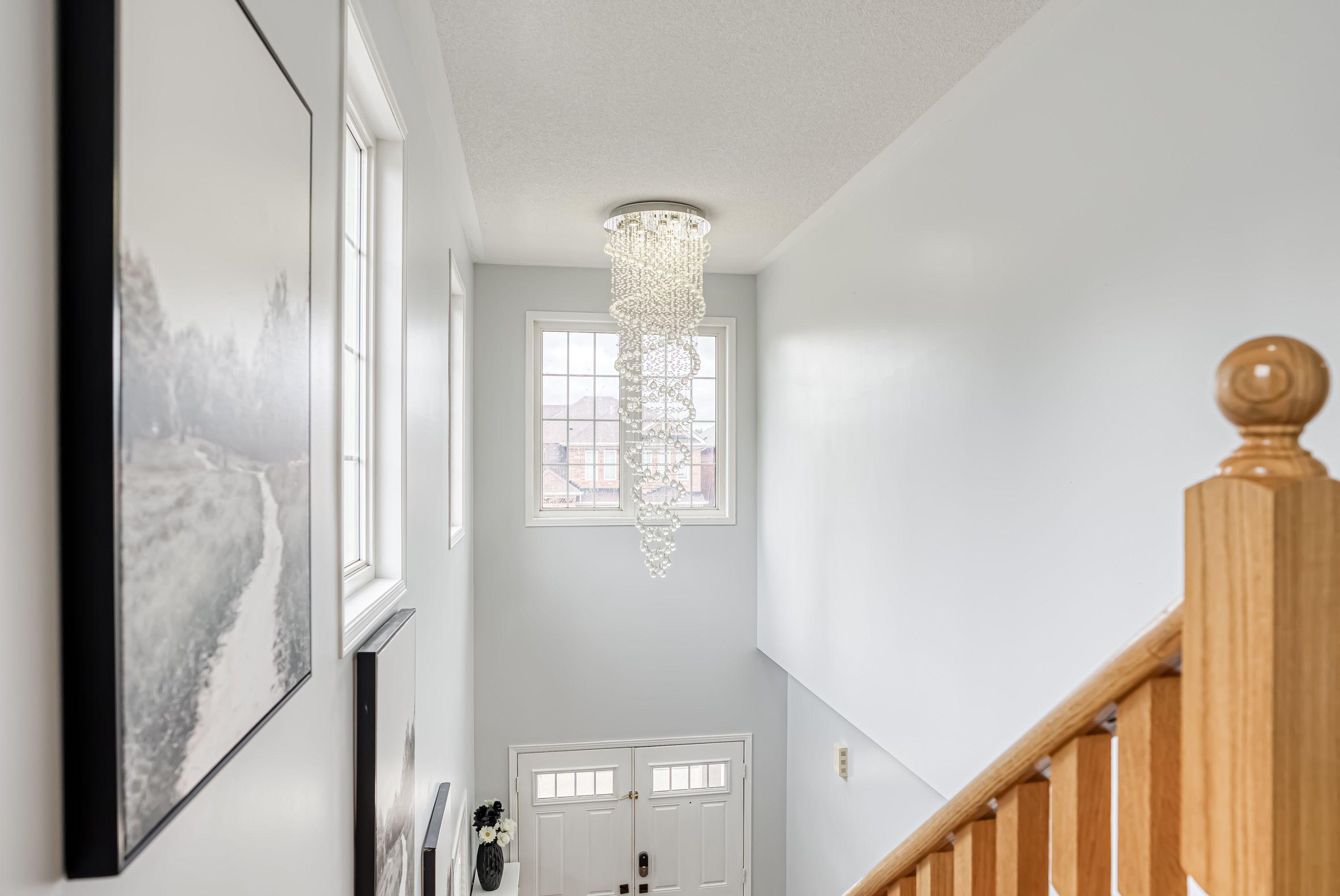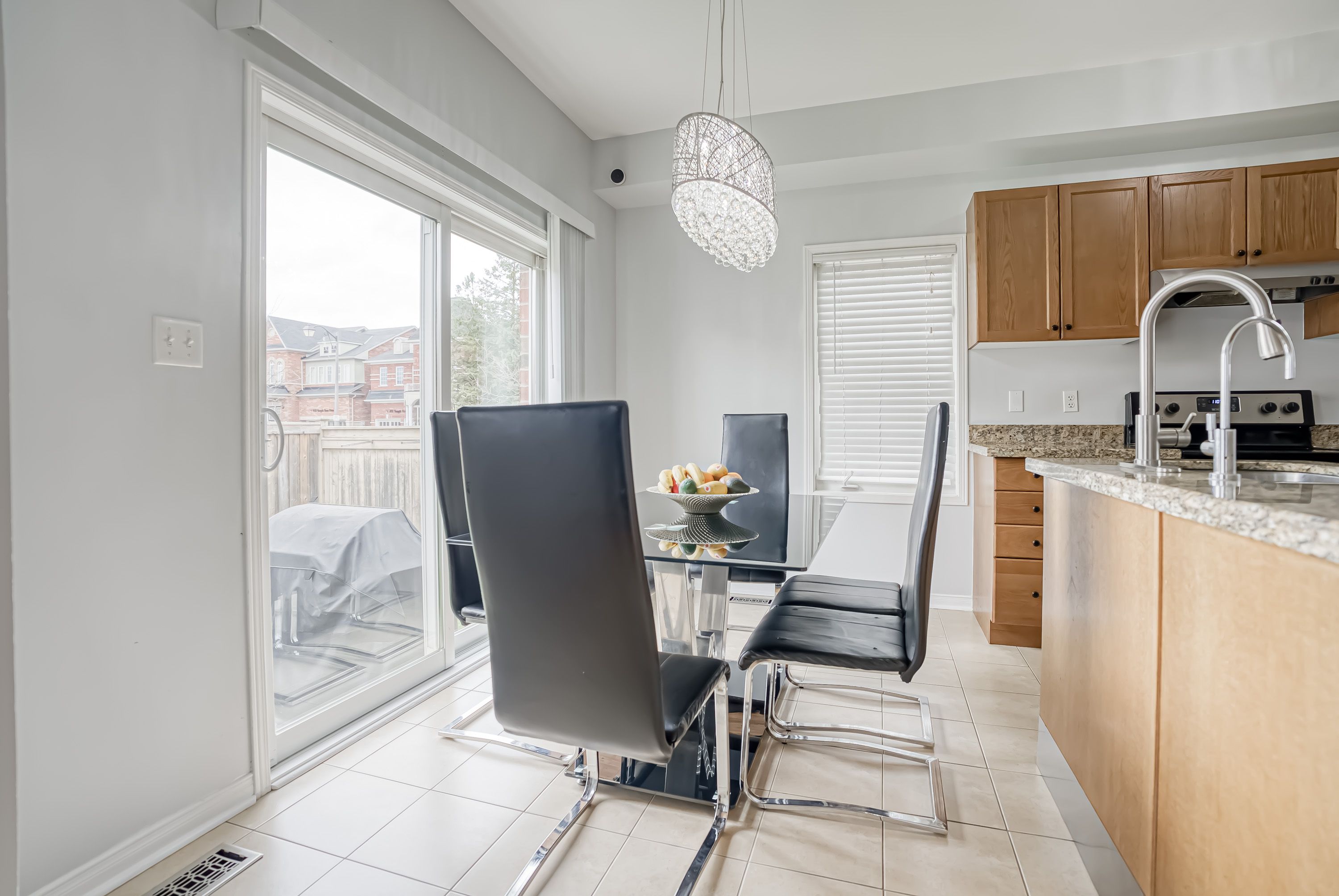 • Hardwood floors throughout main areas and stylish chandeliers brighten the home.