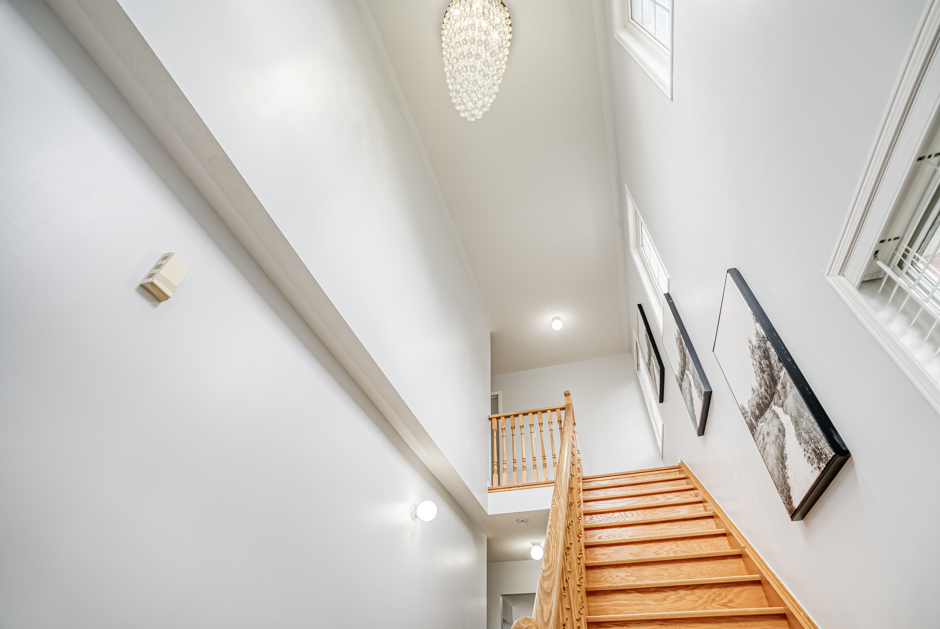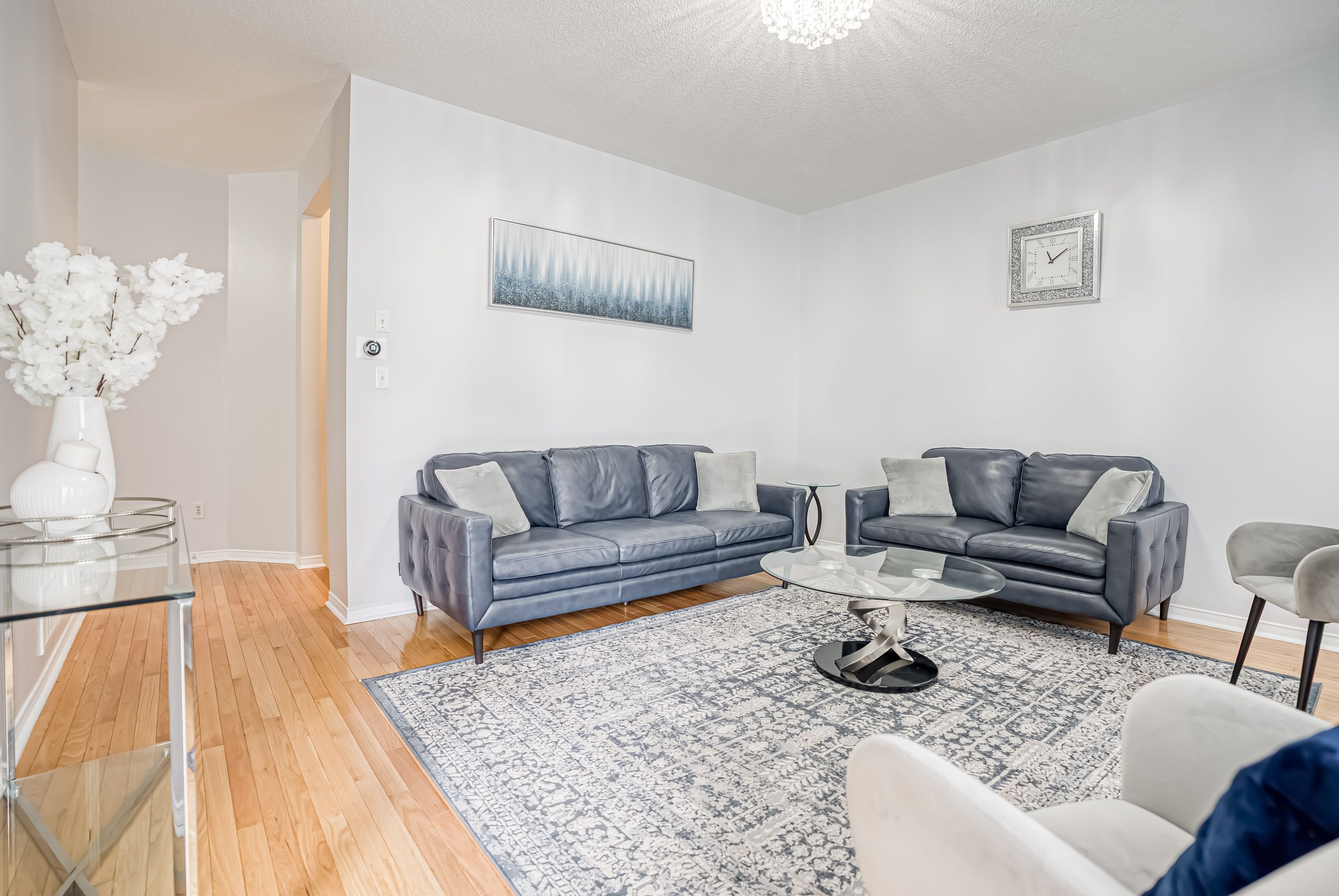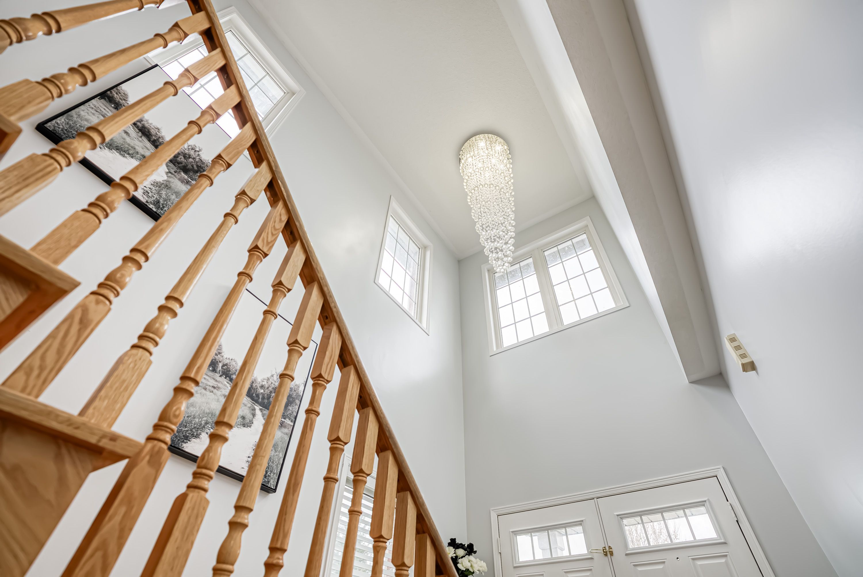 • Hardwood floors throughout main areas and stylish chandeliers brighten the home.
