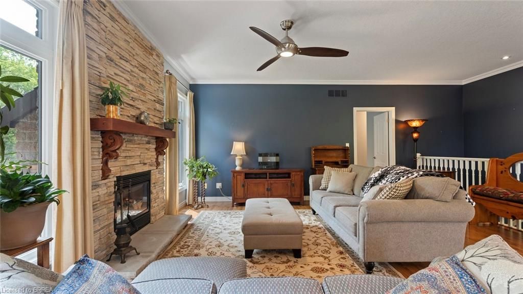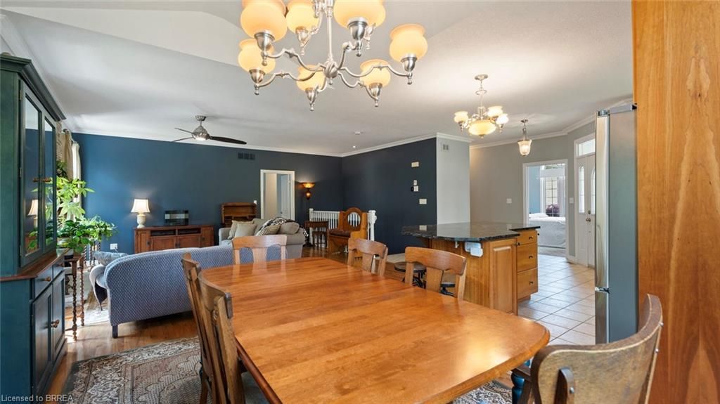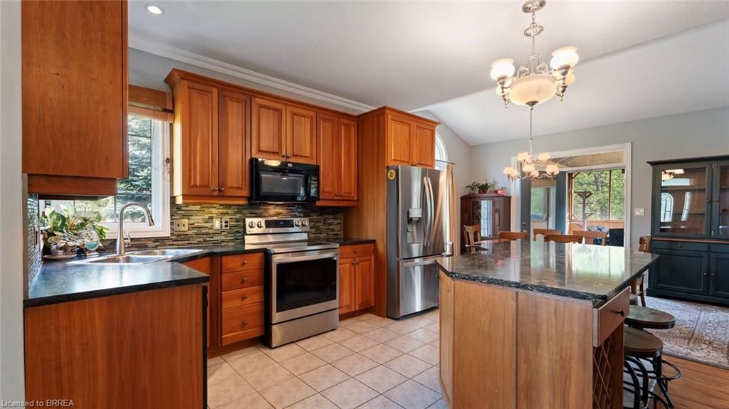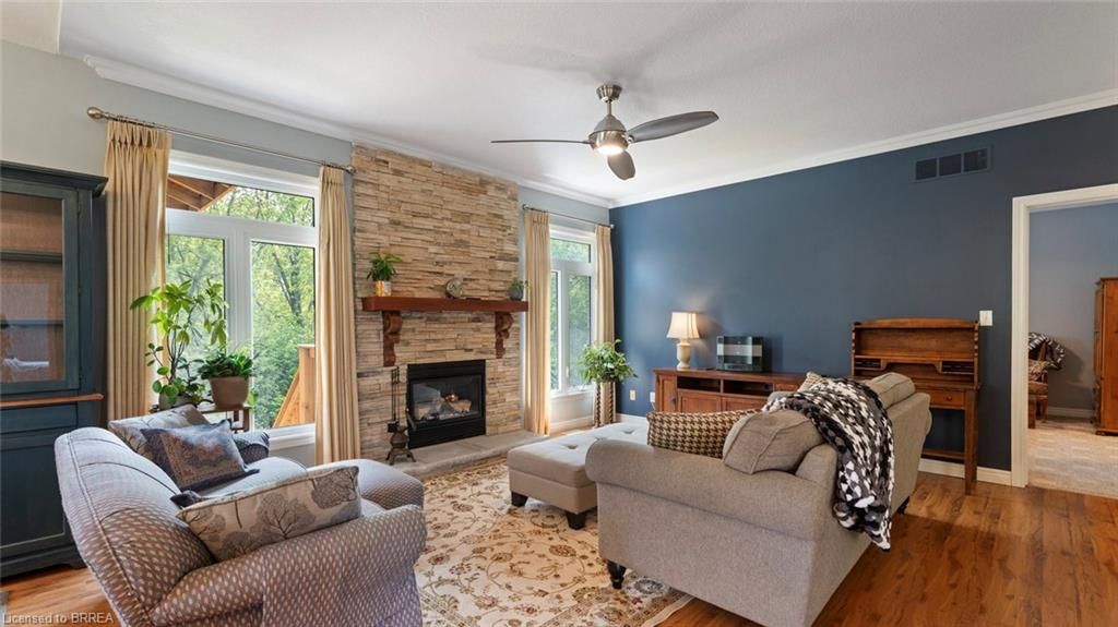 The lifestyle you've been waiting for! Tucked away in "ducks landing" on a picturesque ravine lot, this custom-built brick bungalow offers the perfect balance of privacy, space, and convenience-all just steps from downtown port rowan. With 3 bedrooms and 3 full bathrooms, there's room for everyone. The airy main floor features open-concept living, with a bright kitchen that features a quartz island, ample cupboard space, plenty of work-space, and a cozy dining room with a cathedral ceiling that opens into a spectacular screened-in deck- perfect for outside dining and entertaining complete with a separate bbq area! You'll be impressed by the floor to ceiling stacked stone fireplace in the living room area. Retreat to the spacious primary bedroom with a private ensuite featuring double sinks and two walk-in closets. The second main-floor bedroom is set apart from the primary, and has access to a full 4 piece bath. Main floor laundry and pantry complete this level. The fully finished lower level features a large rec room with fireplace, office nook, third bedroom, three piece bathroom, and a walk-out to the backyard patio with retractable awning. Another room, which was used as a workshop, has a laundry tub and storage cupboards. You'll always have extra space thanks to the large furnace room with plenty of storage and a separate cold cellar. With in-law potential and ample storage, this home will adapt to all of your needs. Outside, soak in the sounds of nature and watch hummingbirds flutter through the trumpet vines and honeysuckle from the gorgeous covered deck. You'll love hosting parties or sipping a coffee while screened in with the ceiling fan keeping you cool. Sit by the bay and enjoy the live summer concert series. The quaint downtown boasts restaurants, a new tim hortons and shops. With marinas, beaches, golf, and simcoe, tillsonburg, and long point nearby-this home has it all. Bonus 20kw stand by back-up generator installed in 2023.