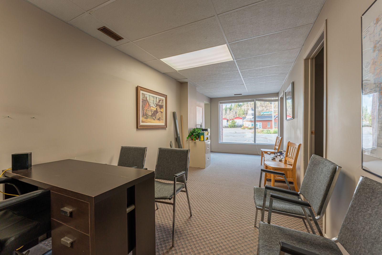 Discover this versatile office unit in minden, ideally located just off highway 35 in a busy, high-traffic area surrounded by other successful businesses. The space features four private offices providing ideal spaces for offices, meetings, or workstations. There is also a spacious open area, perfect for a conference room, seating area, or collaborative workspace. The unit is equipped with a convenient 2-piece bathroom and ample parking for staff and clients. Perfect for businesses seeking a strategic location with functional, flexible office space in a thriving business community.