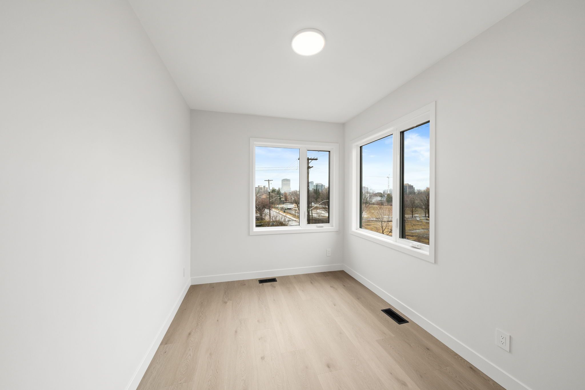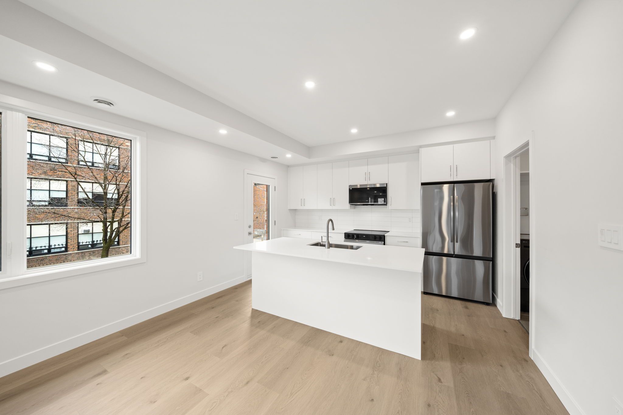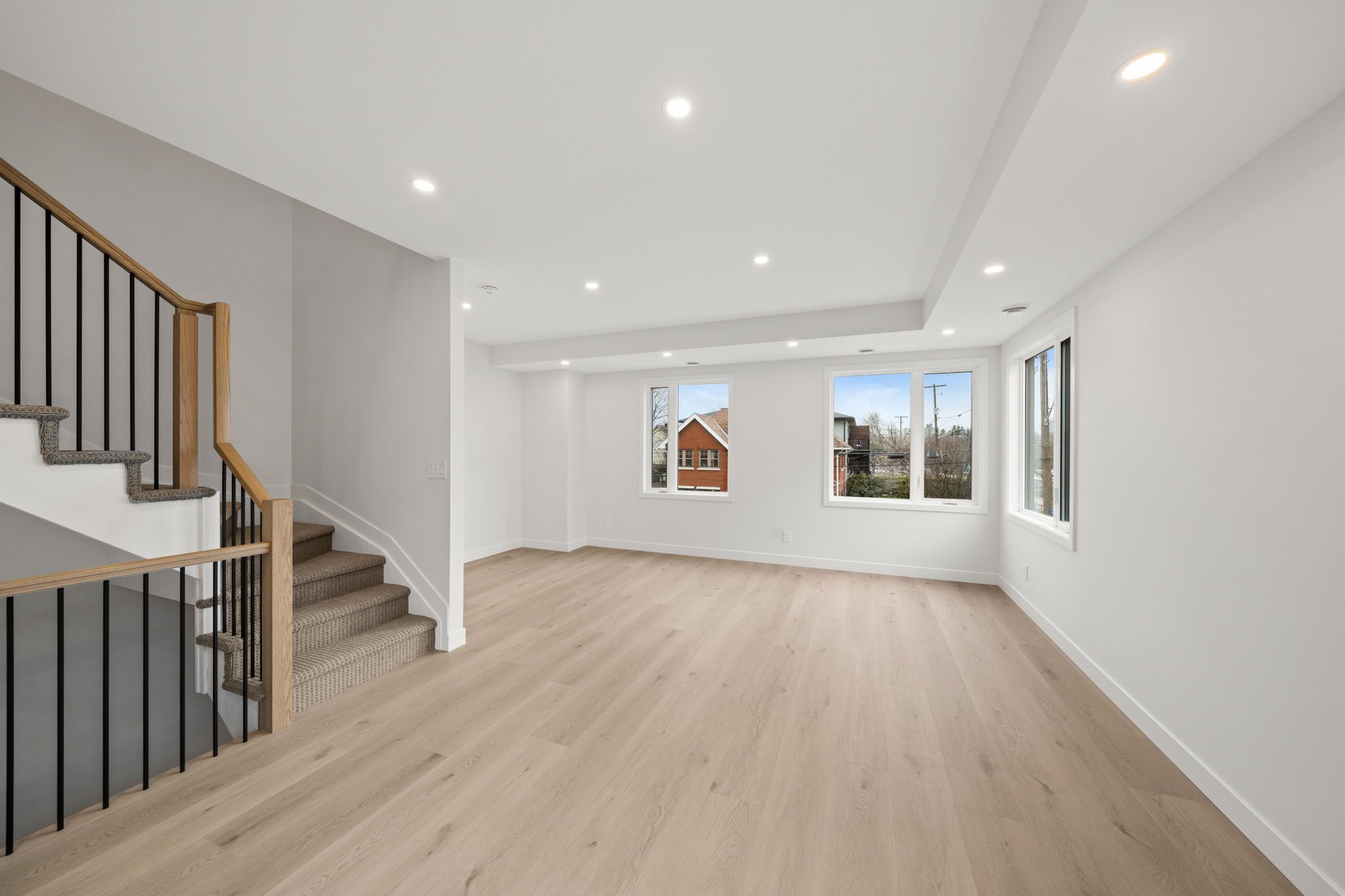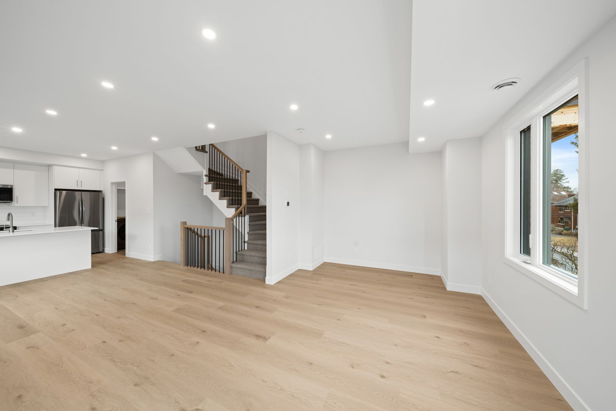 Brand-new executive townhome for rent in the heart of wellington village offering over 2,000 sq. Ft. Of beautifully designed living space across three storeys plus a fully finished basement and attached garage. The main level features a spacious tiled foyer with double closets and inside access to the garage, along with a bright bedroom or home office and a convenient 3-piece bath. The second level boasts an open-concept kitchen, living and dining area flooded with natural light, complete with a large centre island, quartz countertops, stainless steel appliances, an oversized walk-in pantry with laundry, and access to an impressive 5' x 20' private balcony. The third floor offers a generous primary suite with double closets and an ensuite bath, plus two additional bedrooms and a full bathroom. The fully finished basement provides a bright rec room and finished storage space. Ideally located steps to fisher park and elmdale public school, minutes to the shops and restaurants along wellington street west, walking distance to the tunney's pasture o-train station, with quick access via the harmer avenue footbridge to the civic hospital and the experimental farm, and easy highway 417 access for seamless commuting-an exceptional opportunity to enjoy modern living in one of ottawa's most sought-after neighbourhoods.