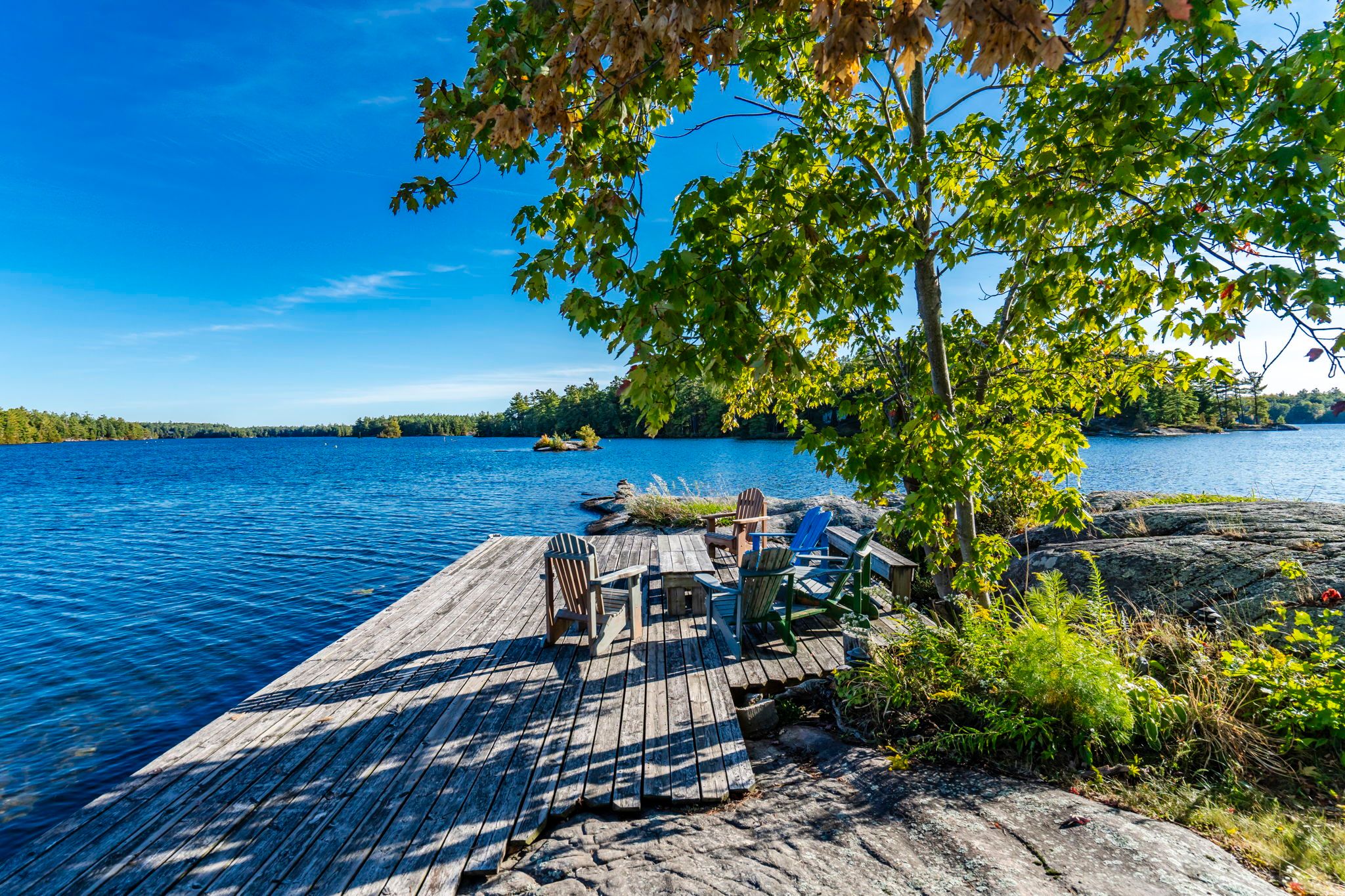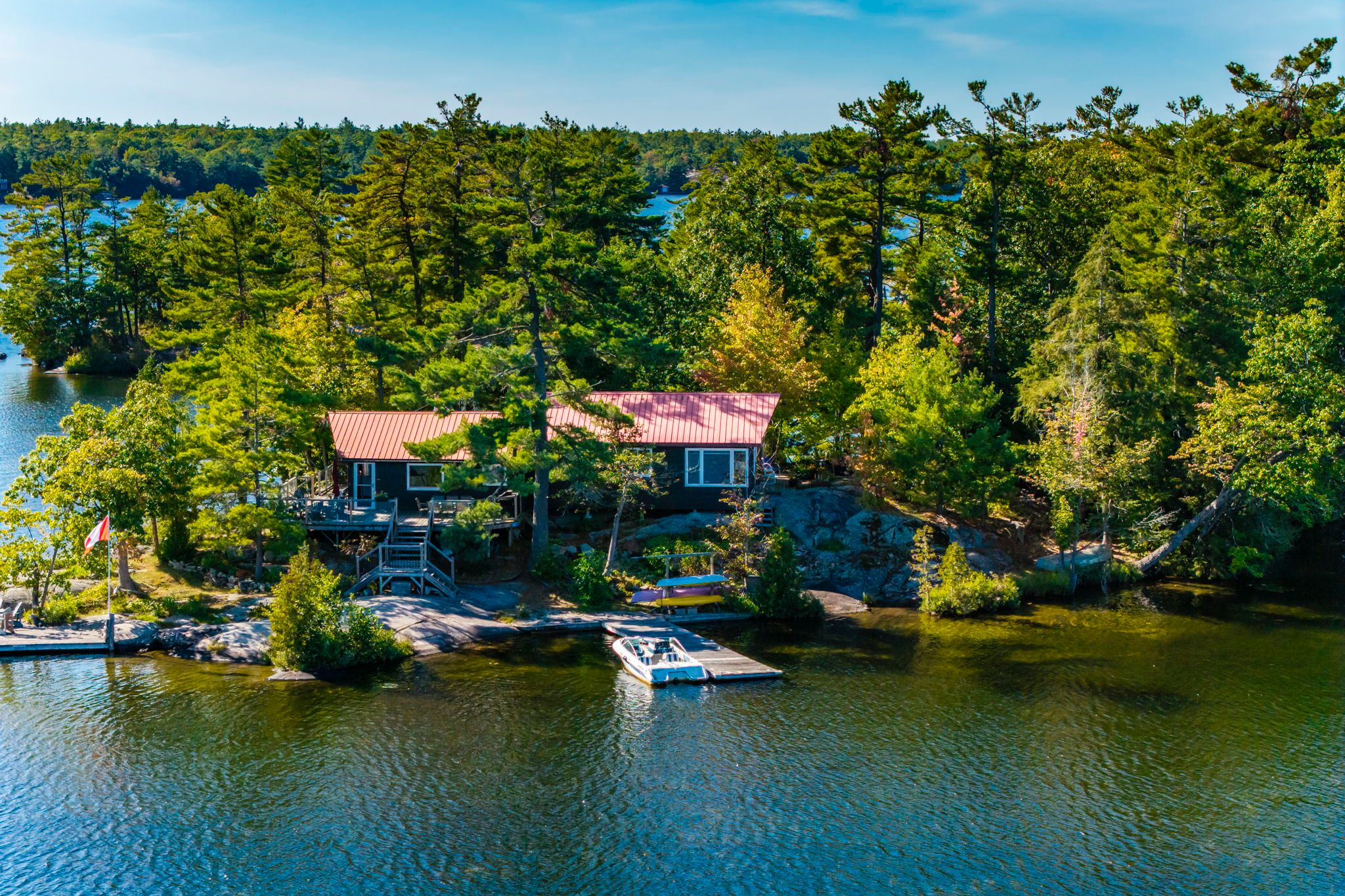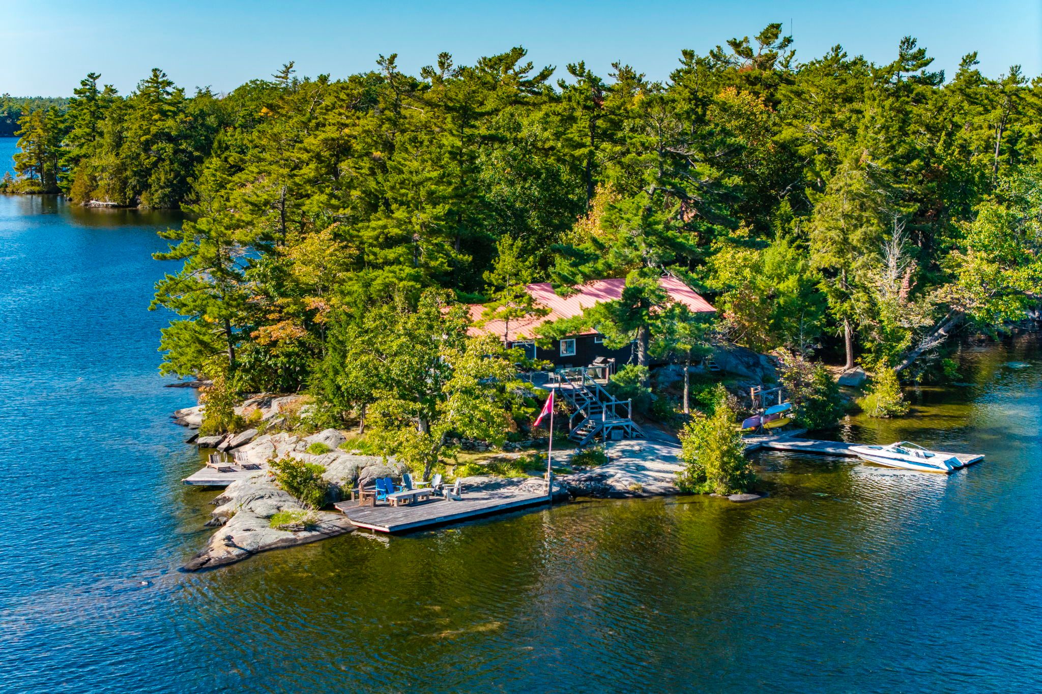 • Private island retreat with nearly 1,500 feet of serene shoreline.