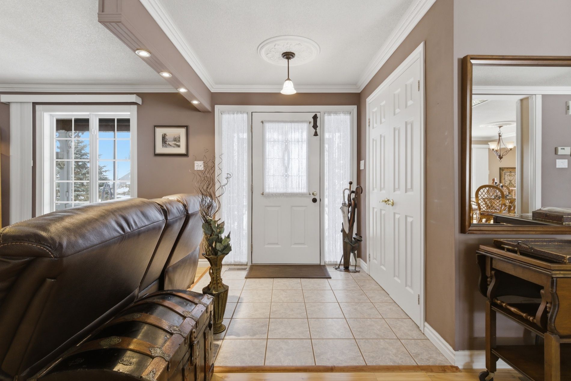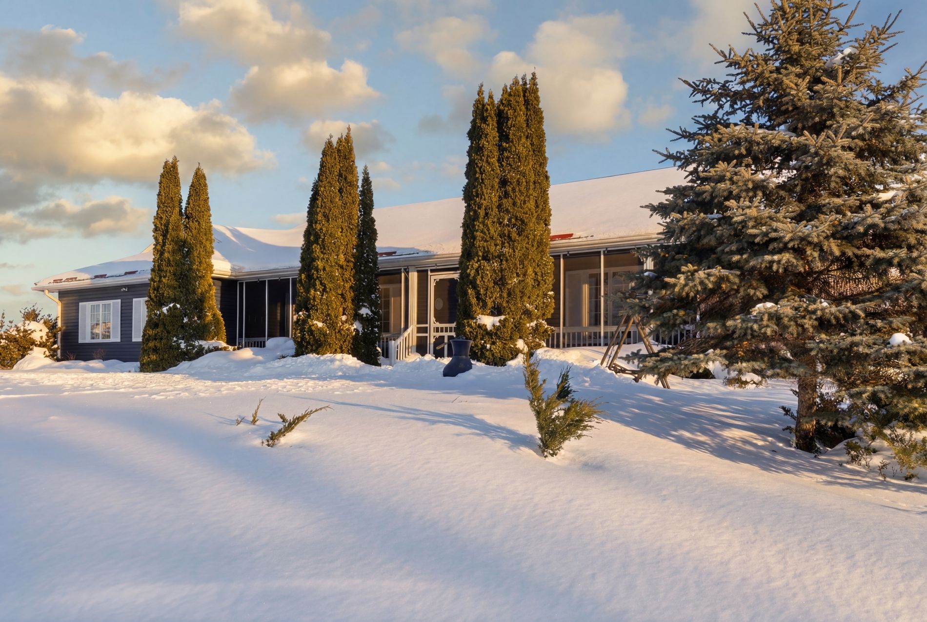 Welcome to this beautifully upgraded home nestled in an established residential estate subdivision, offering the perfect blend of refined comfort and peaceful country living. Bright and tastefully decorated, this open-concept bungalow is loaded with premium amenities and thoughtful design throughout. The main floor features two spacious bedrooms, two full bathrooms, and a convenient laundry/mudroom. A walk-in pantry and large eat-in kitchen with a stovetop island and built-in appliances make entertaining effortless. The open living area is warm and inviting with a stunning built-in fireplace, creating the ideal space to relax and unwind. The lower level is equipped with in-floor heating, a high-efficiency furnace, and an on-demand water heater, ensuring year-round comfort and energy efficiency. Car enthusiasts and hobbyists will appreciate the finished oversized double garage, as well as the impressive two-section shop complete with roughed-in in-floor heating and a cozy wood stove - perfect for projects or extra storage. Outside, enjoy a fully landscaped, low-maintenance mature yard surrounded by privacy hedges. Entertain in style with an enclosed gazebo ready for a hot tub, a dedicated grill gazebo with central gas bbq hookup, and multiple outdoor living spaces including three stone patios, a large crushed-stone firepit area, and full-length decks at both the front and back - including a screened-in front porch. Additional highlights include raised vegetable garden boxes, stunning walkways with interlock, flagstone, slab and wood finishes, and an extra-wide paved driveway approximately 180 feet long, beautifully accented by four lamp posts. Located close to pike lake golf course, with hiking, snowshoeing, and snowmobiling trails right at your doorstep, this property offers the best of country lifestyle with modern convenience - including fibre optic internet. A truly exceptional home in an unbeatable setting.