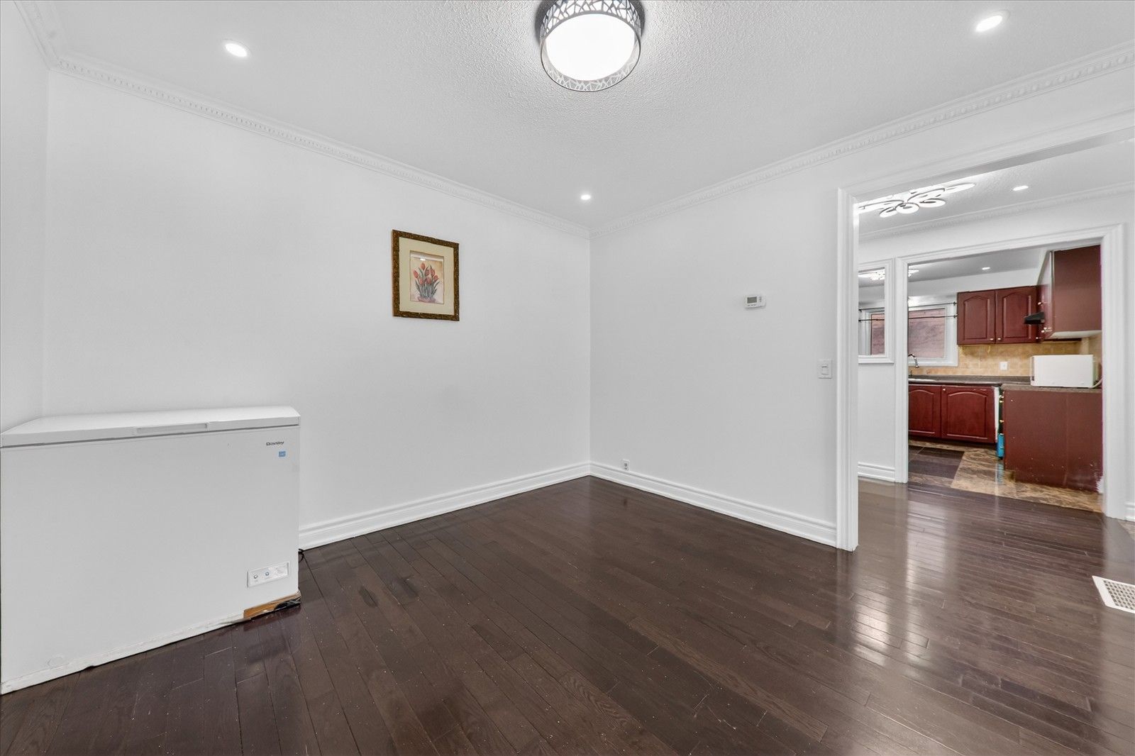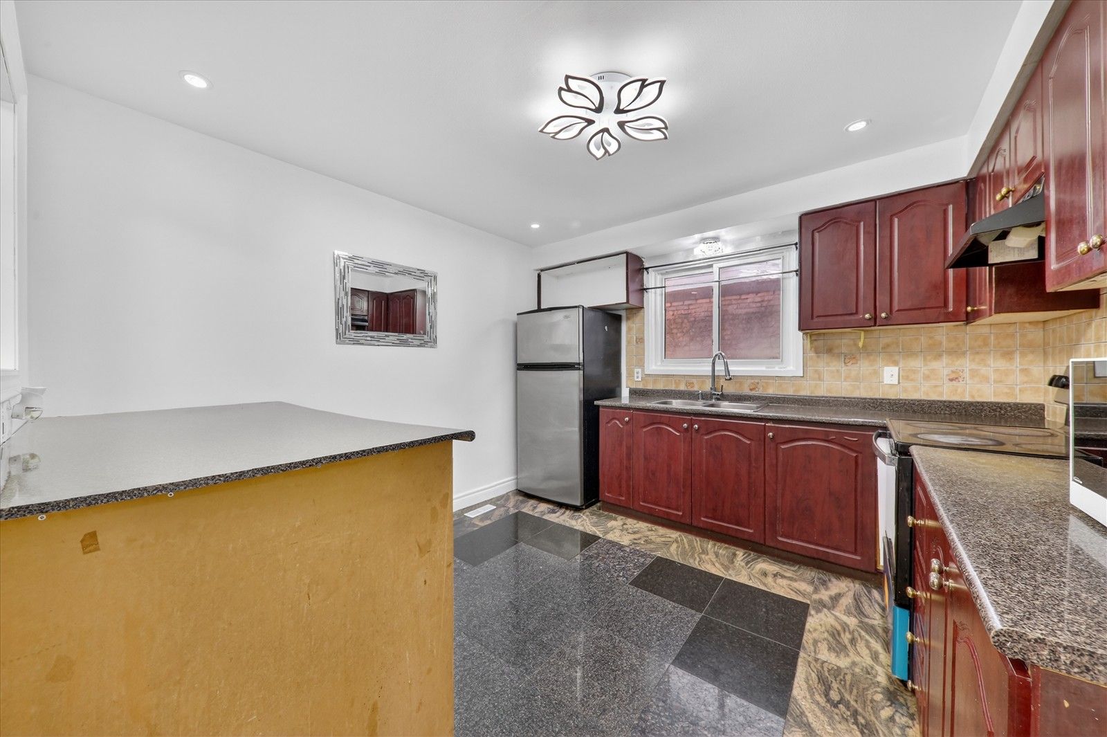 Gorgeous detached home with a separate entrance basement apartment, nestled in a quiet, family-friendly neighbourhood an excellent opportunity for families, professionals, first-time homebuyers, and investors seeking a peaceful residential setting with easy access to city amenities. Step inside to a bright, open-concept living and dining area featuring hardwood flooring, large windows, and pot lights that create a warm and inviting atmosphere. The cozy, functional kitchen offers granite tile flooring, ample cabinetry, and a pantry for added storage. Upstairs, you'll find three spacious bedrooms with hardwood flooring, including a primary bedroom with an aesthetically pleasing mirrored closet. The two additional bedrooms are generously sized, filled with natural light, and include closets and windows. Walk-out basement apartment with separate front and back entrances, two bedrooms, laminate flooring, vinyl kitchen flooring, and ceramic-tiled washroom perfect for extended family or potential rental income. Steps to 24-hour ttc, places of worship, shopping, schools including alexander stirling ps, restaurants, medical offices, highway 401, hospitals, and parks. Everything you need is truly within reach.