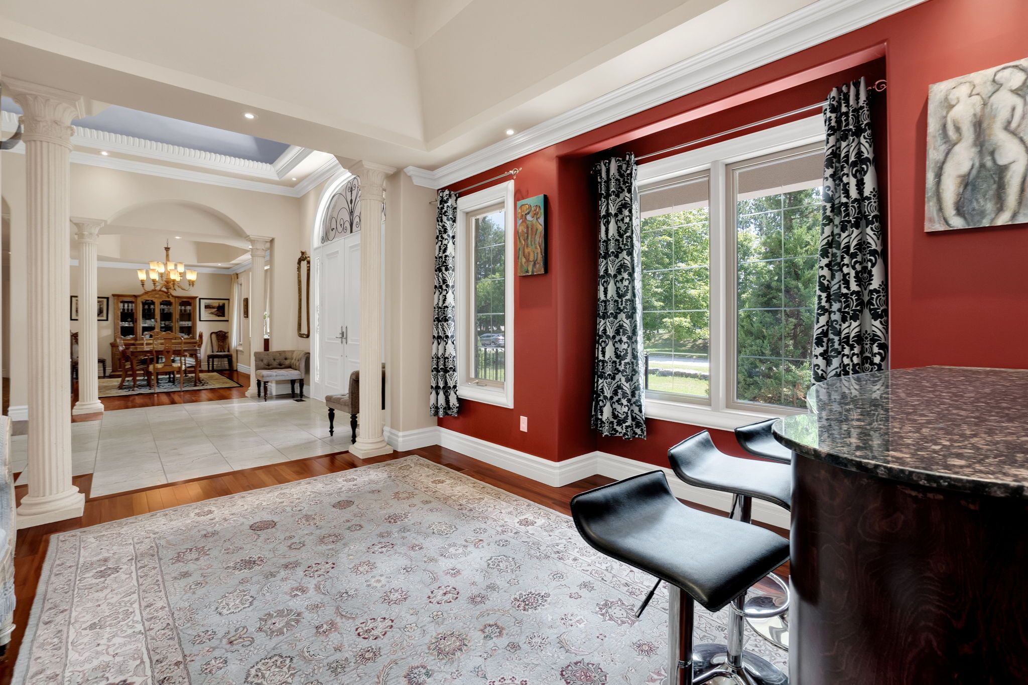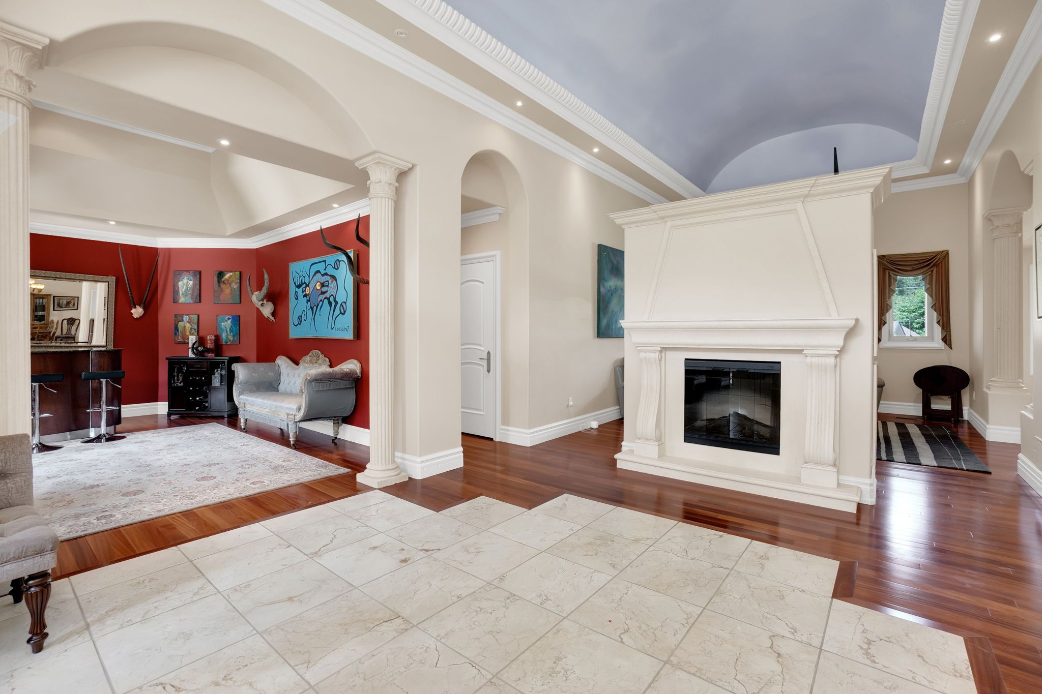 • Expansive 10,000 sq. ft. custom home with high ceilings and multiple fireplaces.