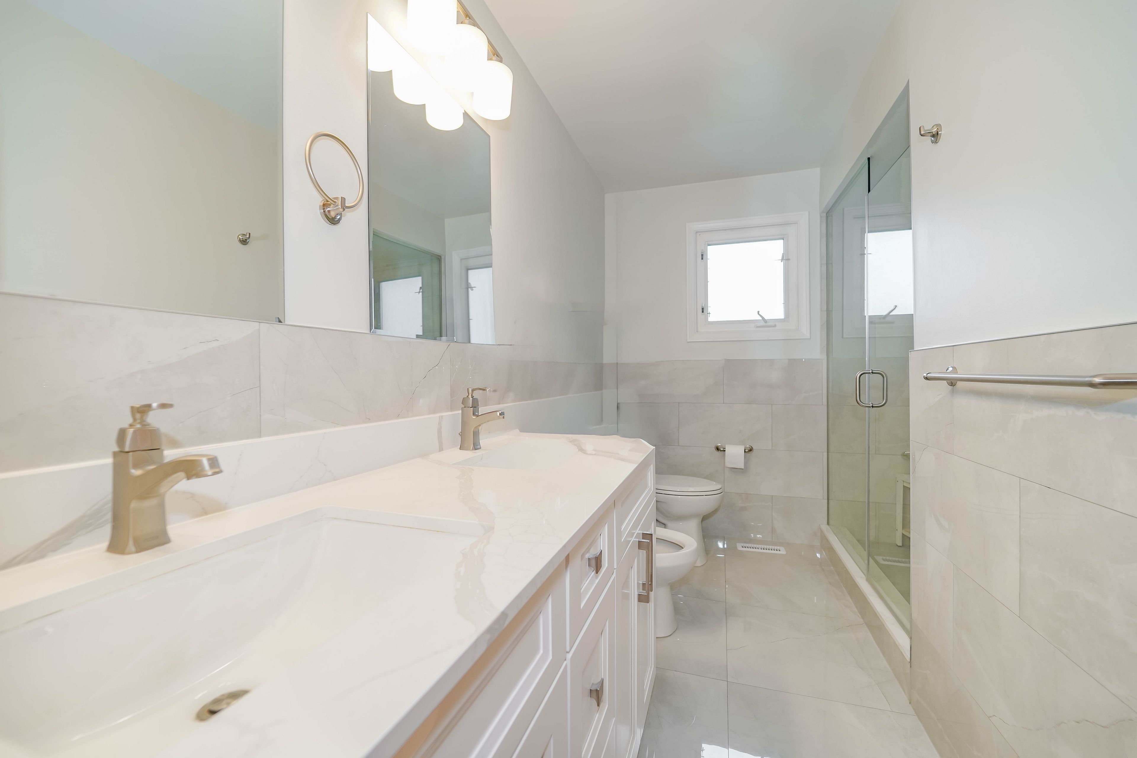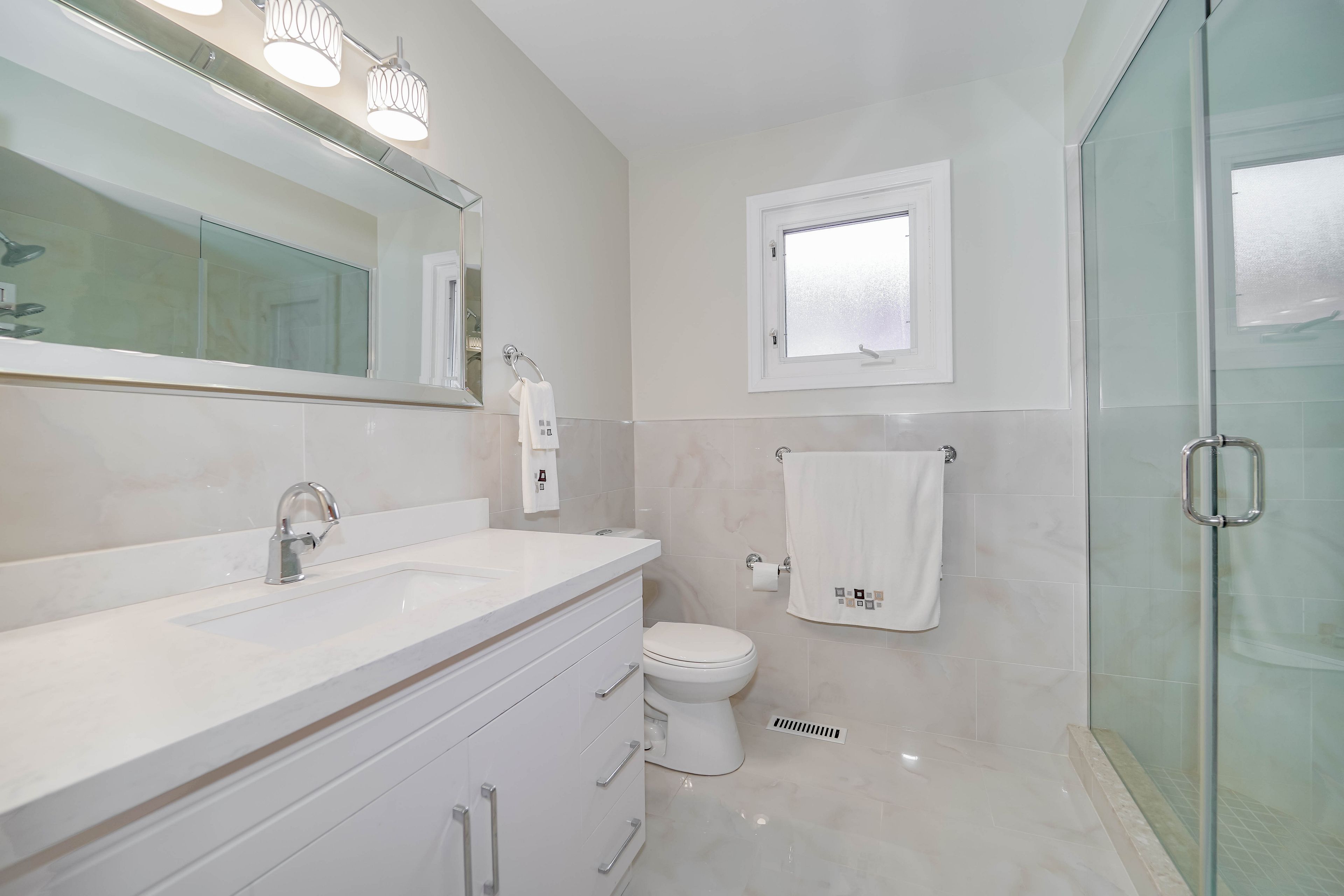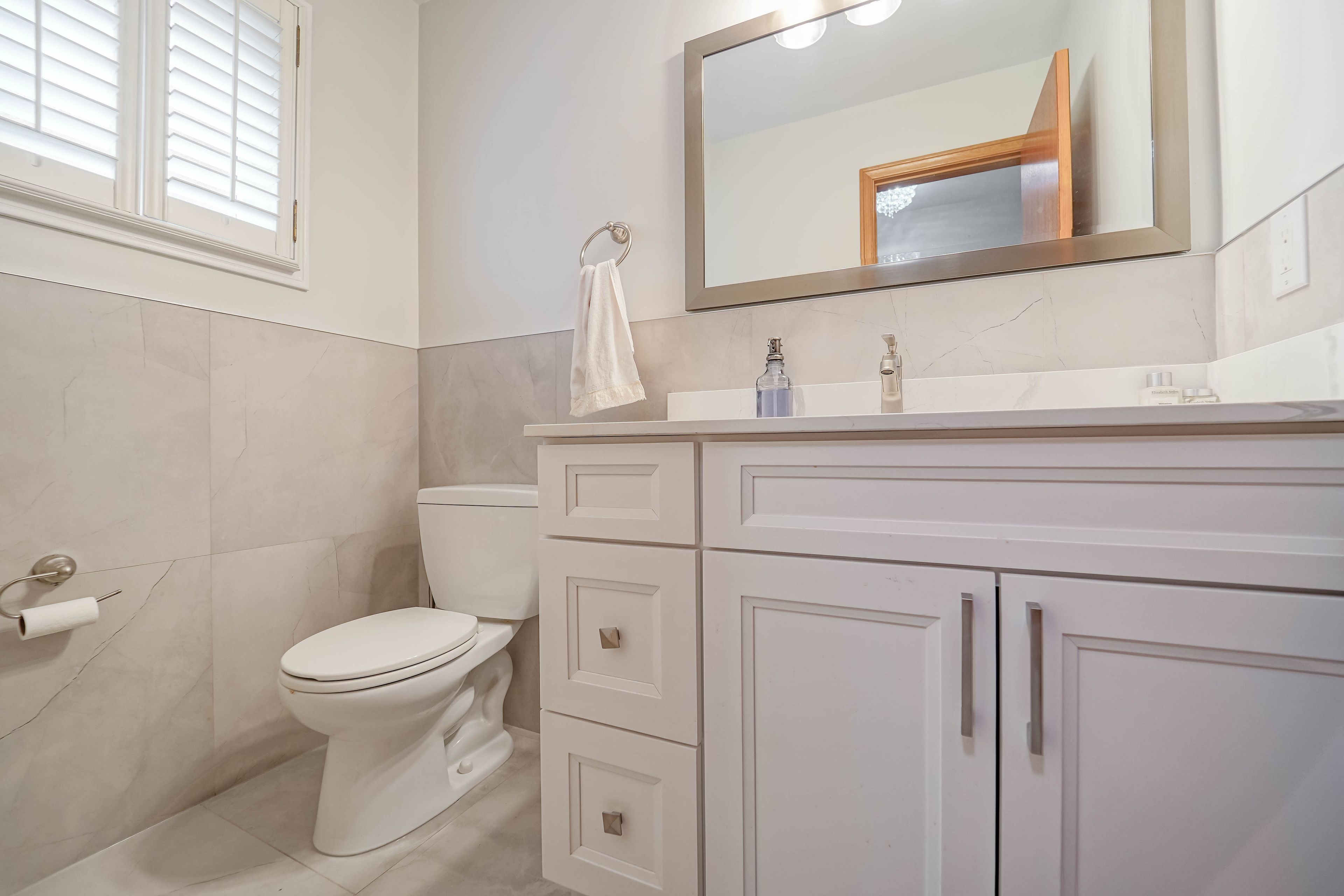 • Renovated bathrooms and elegant tile flooring for a fresh interior feel.