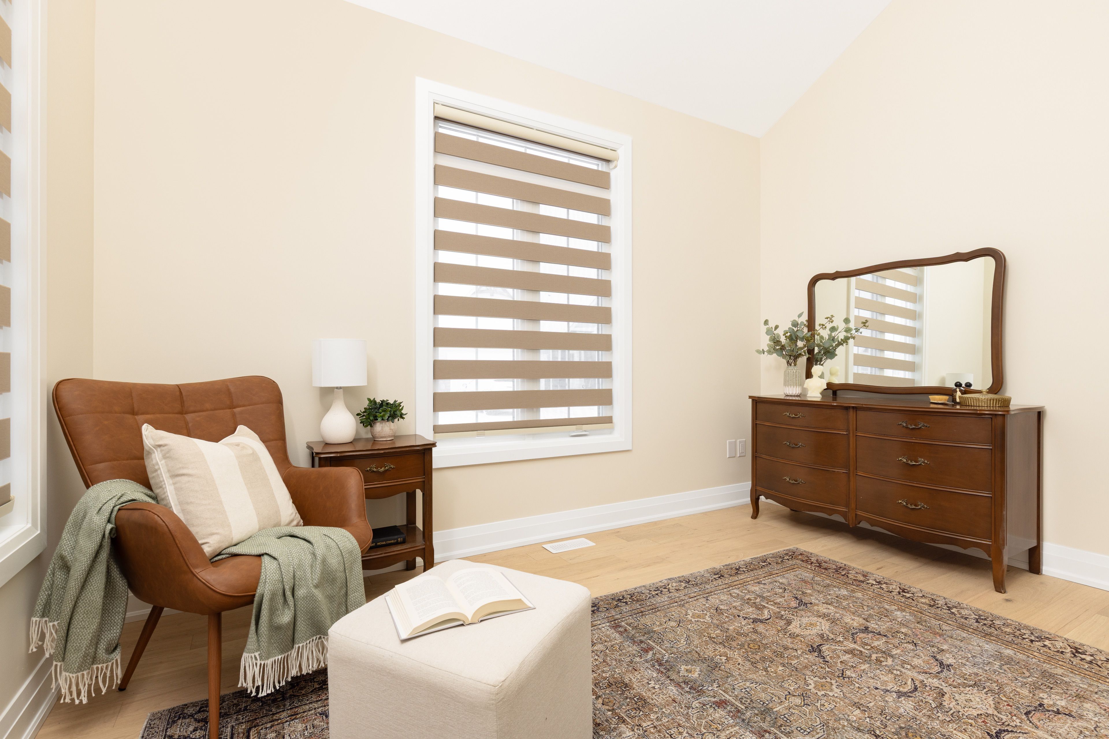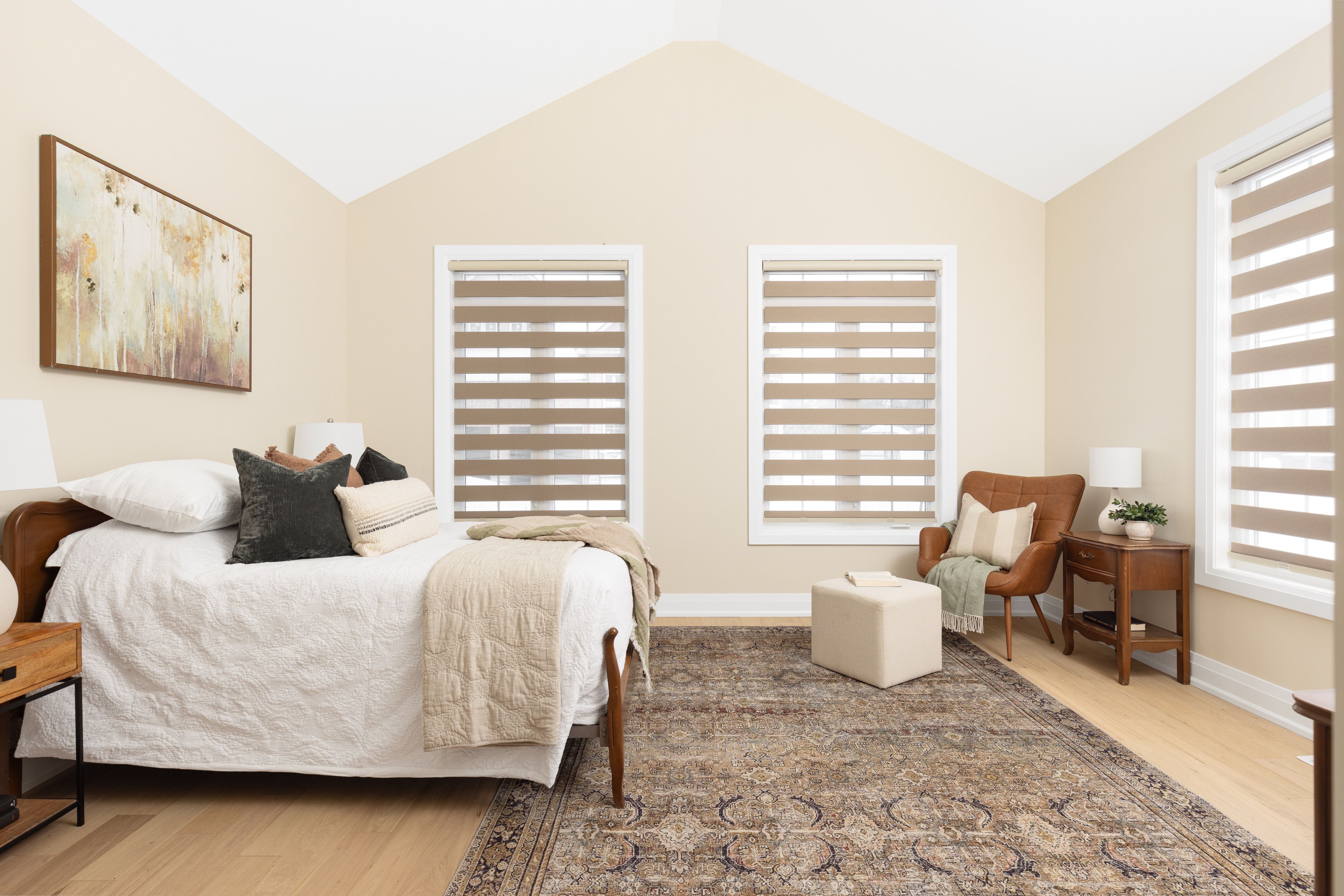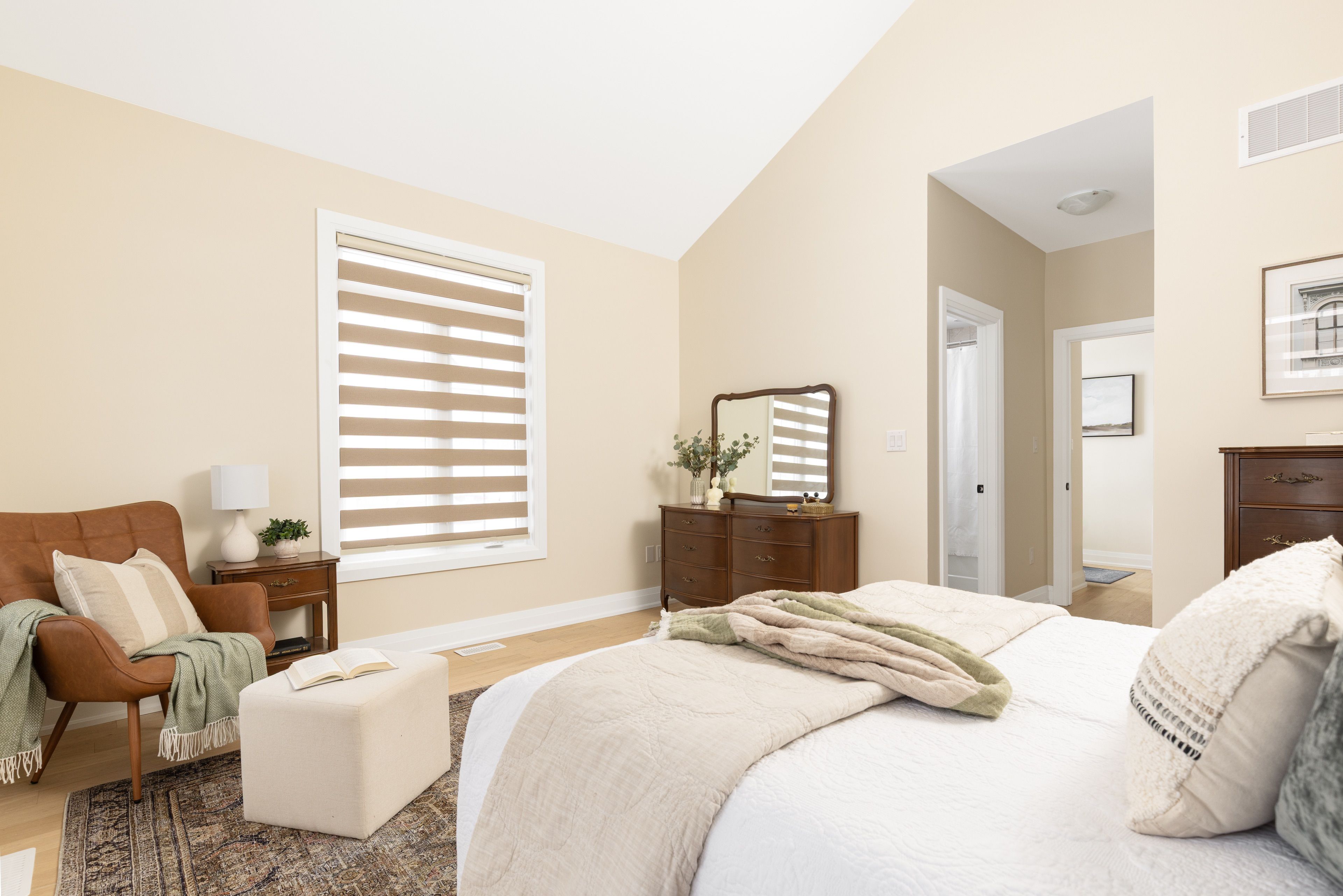 • Private primary suite featuring a vaulted ceiling and walk-in closet.