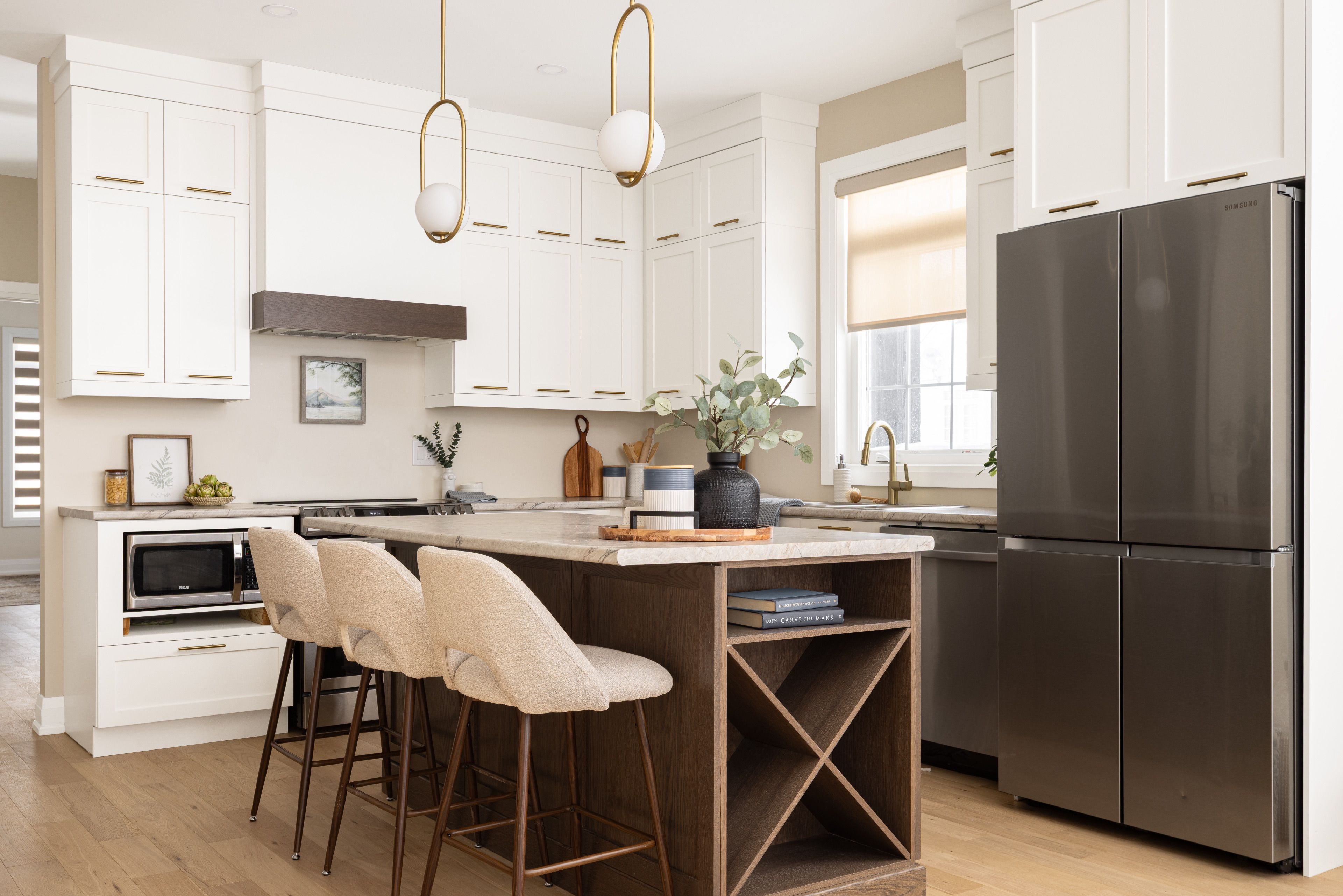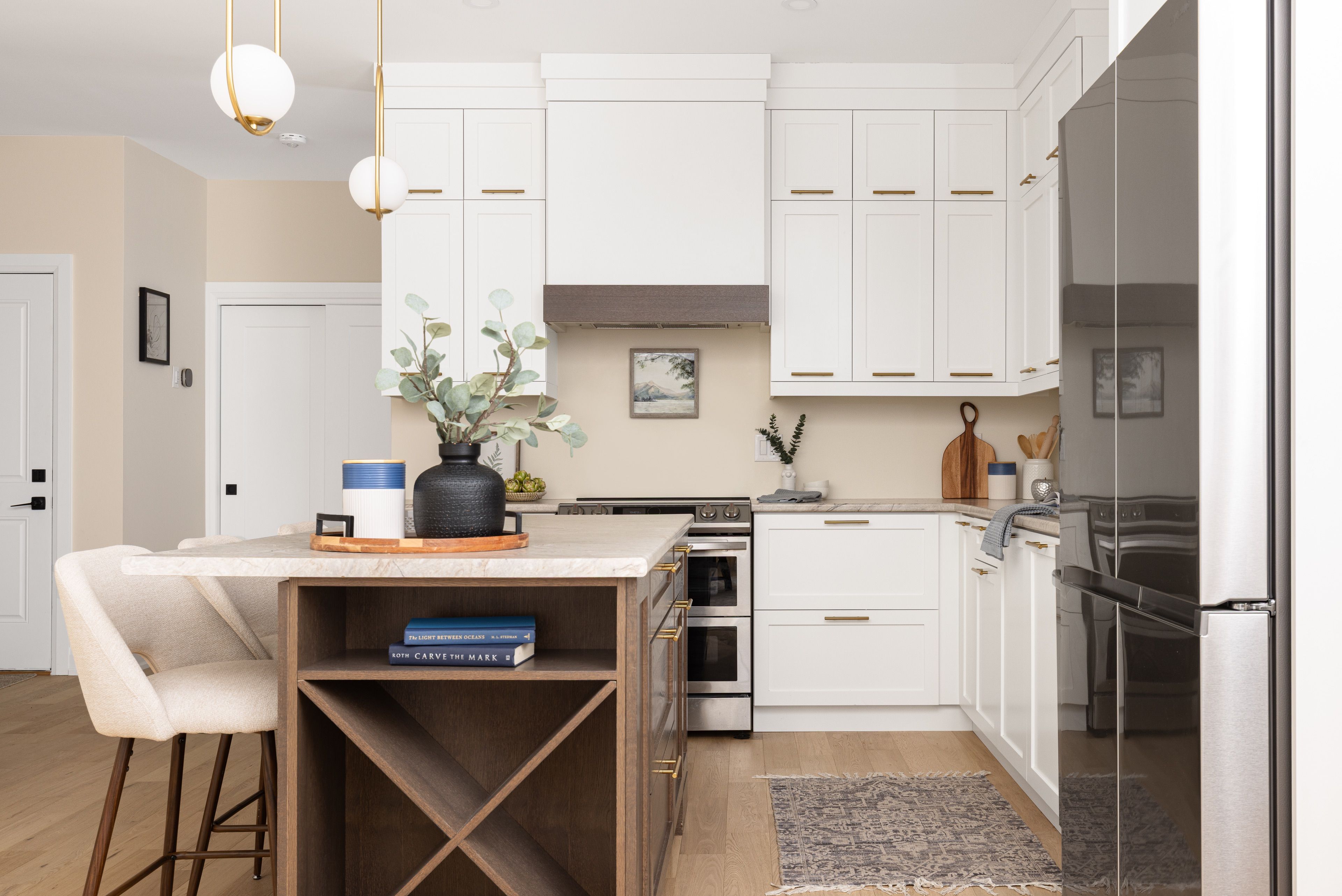 • Stylish kitchen with upgraded cabinetry, stainless steel appliances, and a gathering island.