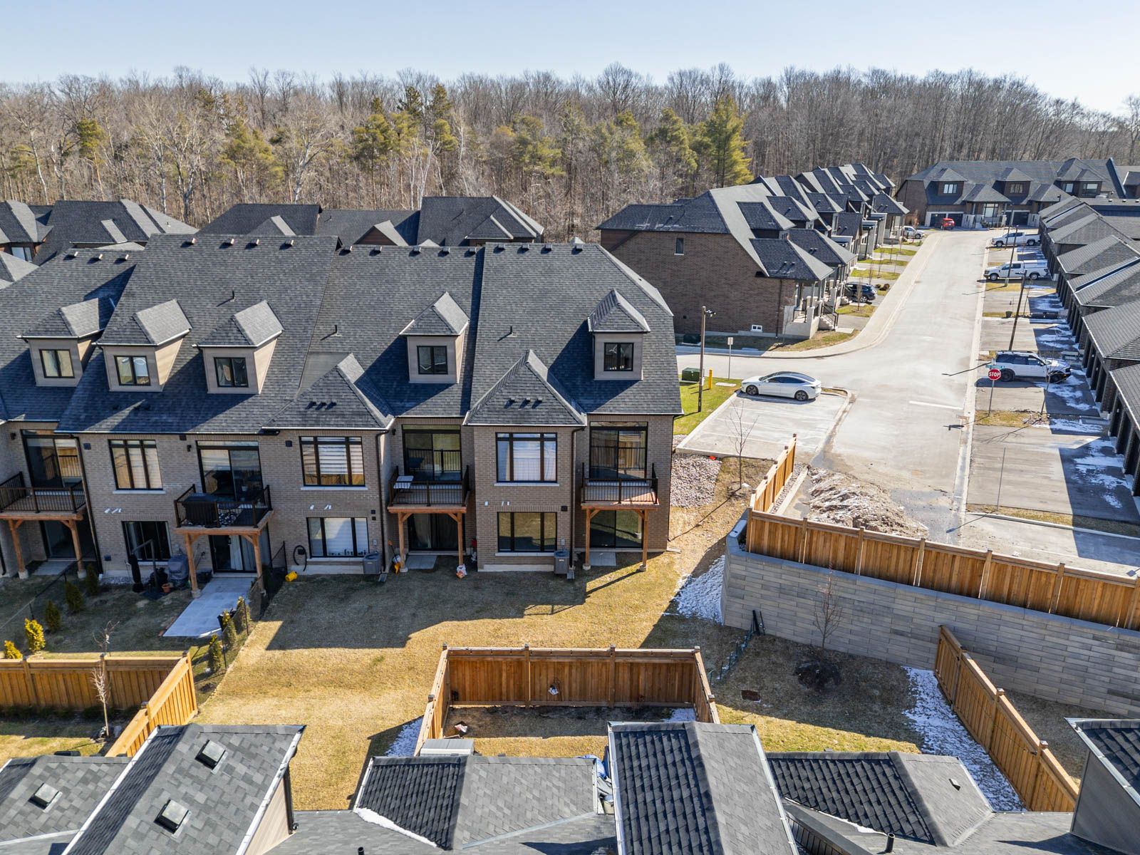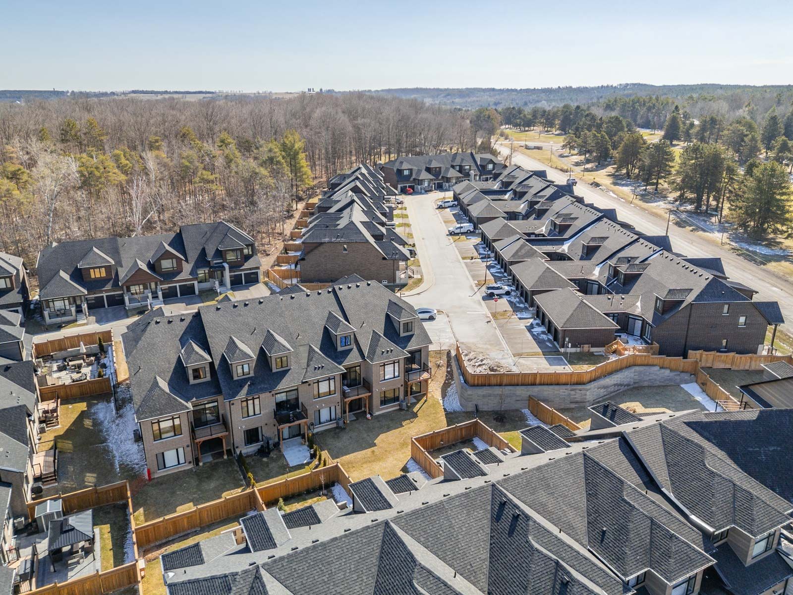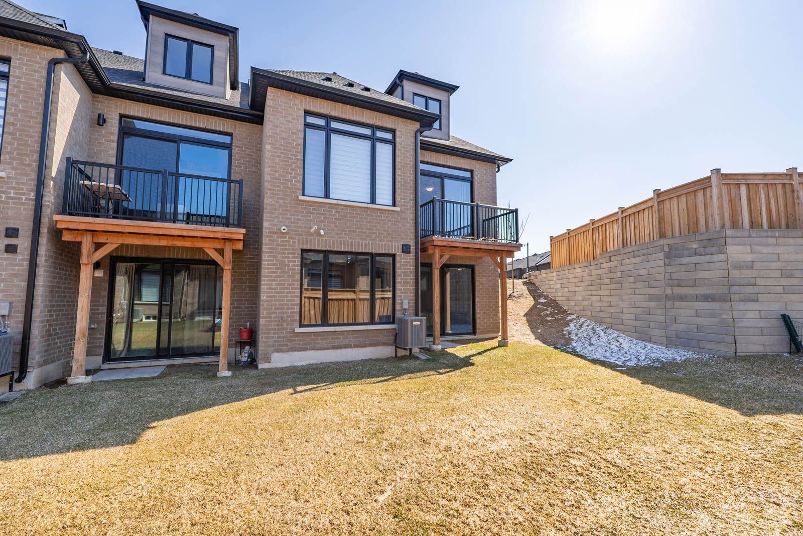 Attention new home buyers! Look no further! This is a newly built freehold townhome in uxbridge, offering approximately 1,840 sq. Ft. Of thoughtfully designed living space that blends modern comfort with exceptional versatility. This 2-storey home features 3 bedrooms and 3 bathrooms, highlighted by a highly desirable main-floor primary suite complete with a walk-in closet and a luxurious 4-piece ensuite showcasing a double "his and hers" vanity-perfect for accommodating families, guests, or multi-generational living. The open-concept main level is finished with hardwood flooring, pot lights, and a contemporary kitchen equipped with stainless steel appliances, quartz countertops, and a centre island, flowing seamlessly into the dining and living areas. The living room extends outdoors with a walkout to a spacious private balcony, ideal for relaxing or entertaining. Convenience is elevated with a dedicated laundry room offering direct access to the attached garage. Upstairs, a generous common area provides flexible use as a family room, recreation space, or home office, alongside 2 bedrooms each with shared ensuite access. The walk-out basement remains unfinished, presenting exceptional development potential to create additional living space, an in-law suite, or income-generating rental unit. Set on a deep lot with landscaped surroundings and ample parking, this home is surrounded by endless greenspaces including testa park, veterans memorial park, elgin park, brookdale tract, and barton trail, with numerous recreational amenities nearby such as foxbridge golf club, wooden sticks golf club, uxbridge youth centre, uxbridge pool, uxbridge curling club, and uxbridge athletic field. Conveniently located just steps to uxbridge secondary school and close to main street, you'll enjoy easy access to everyday essentials including shops, restaurants, bars, uxbridge music hall, and uxbridge hospital-delivering an exceptional lifestyle opportunity in a thriving community.