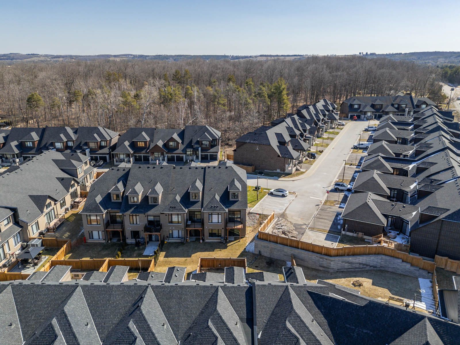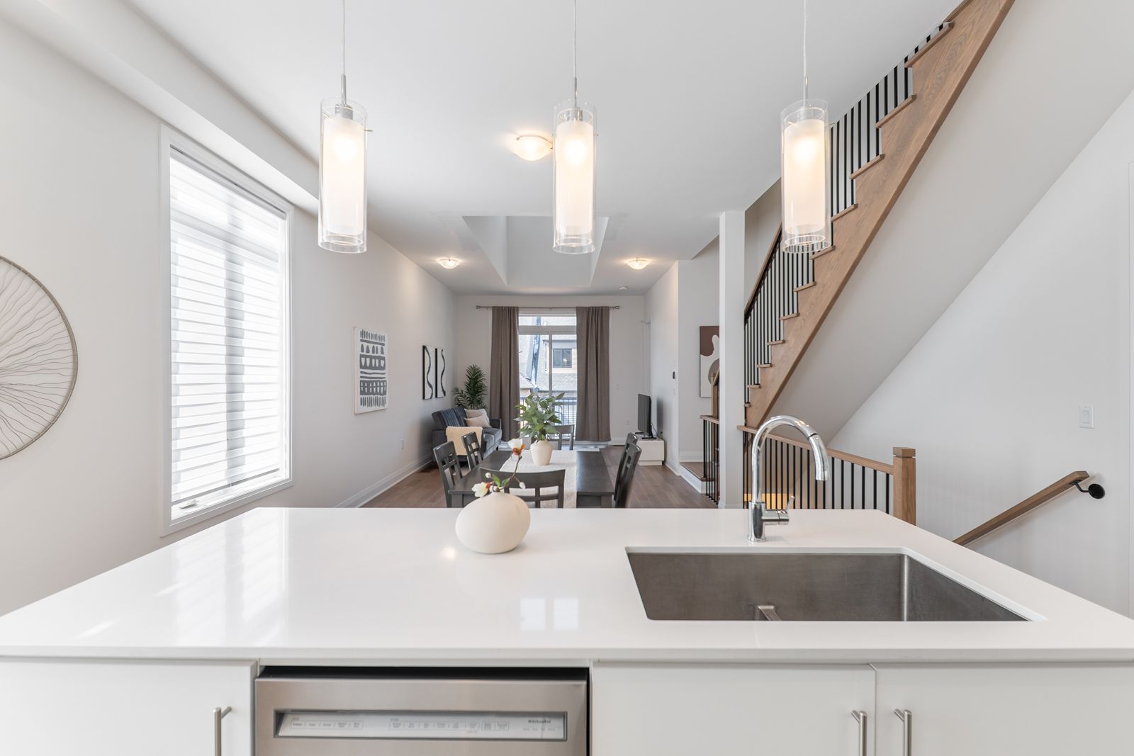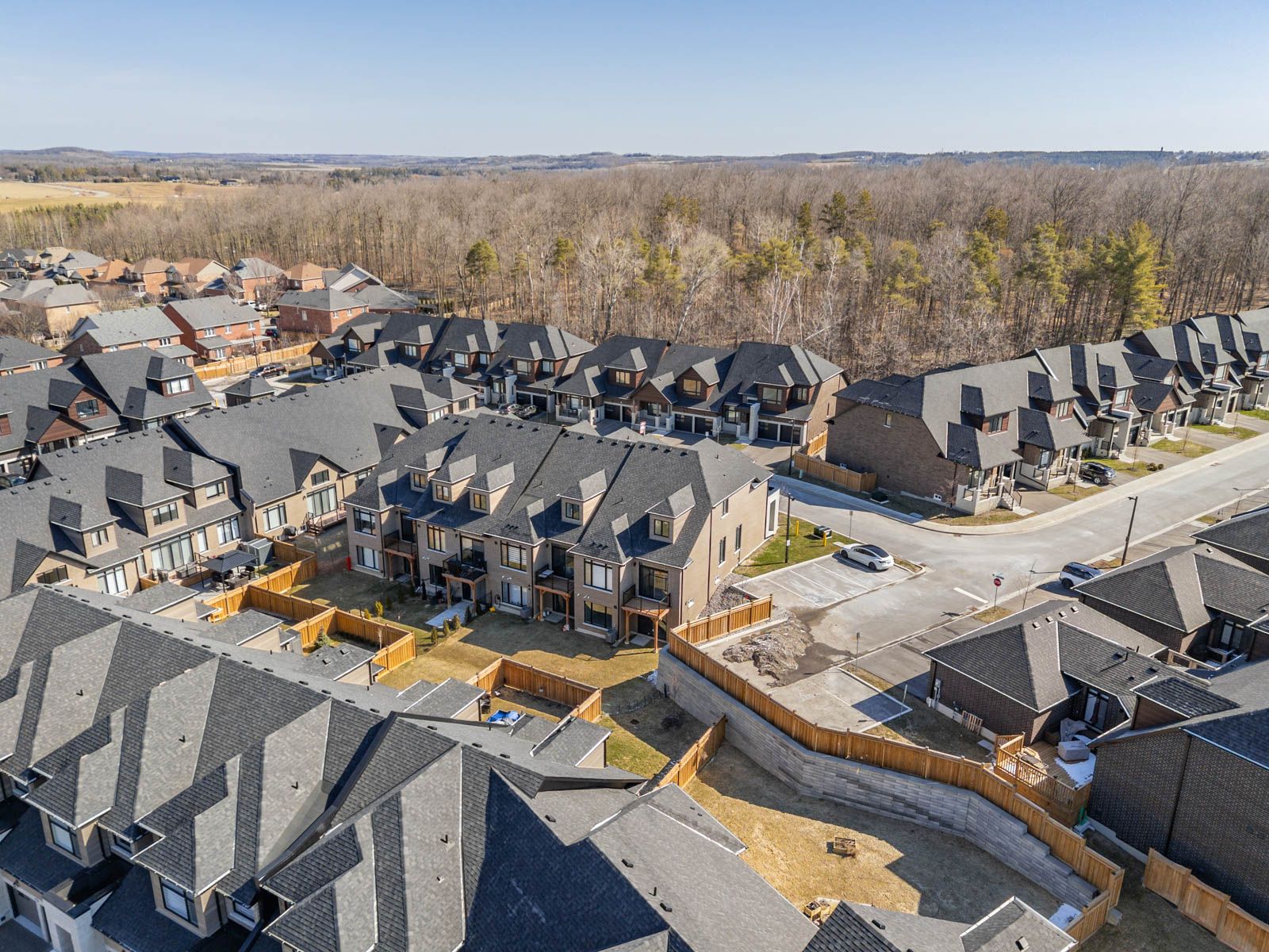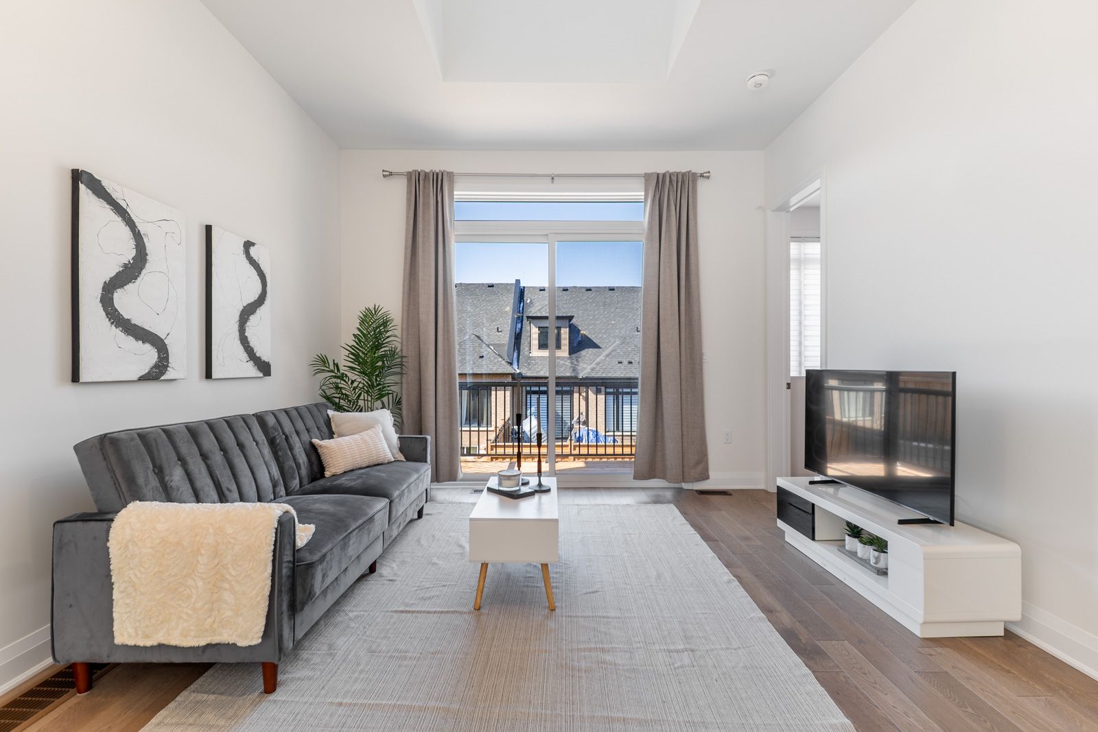 Attention new home buyers! Look no further! This is a newly built freehold townhome in uxbridge, offering approximately 1,840 sq. Ft. Of thoughtfully designed living space that blends modern comfort with exceptional versatility. This 2-storey home features 3 bedrooms and 3 bathrooms, highlighted by a highly desirable main-floor primary suite complete with a walk-in closet and a luxurious 4-piece ensuite showcasing a double "his and hers" vanity-perfect for accommodating families, guests, or multi-generational living. The open-concept main level is finished with hardwood flooring, pot lights, and a contemporary kitchen equipped with stainless steel appliances, quartz countertops, and a centre island, flowing seamlessly into the dining and living areas. The living room extends outdoors with a walkout to a spacious private balcony, ideal for relaxing or entertaining. Convenience is elevated with a dedicated laundry room offering direct access to the attached garage. Upstairs, a generous common area provides flexible use as a family room, recreation space, or home office, alongside 2 bedrooms each with shared ensuite access. The walk-out basement remains unfinished, presenting exceptional development potential to create additional living space, an in-law suite, or income-generating rental unit. Set on a deep lot with landscaped surroundings and ample parking, this home is surrounded by endless greenspaces including testa park, veterans memorial park, elgin park, brookdale tract, and barton trail, with numerous recreational amenities nearby such as foxbridge golf club, wooden sticks golf club, uxbridge youth centre, uxbridge pool, uxbridge curling club, and uxbridge athletic field. Conveniently located just steps to uxbridge secondary school and close to main street, you'll enjoy easy access to everyday essentials including shops, restaurants, bars, uxbridge music hall, and uxbridge hospital-delivering an exceptional lifestyle opportunity in a thriving community.